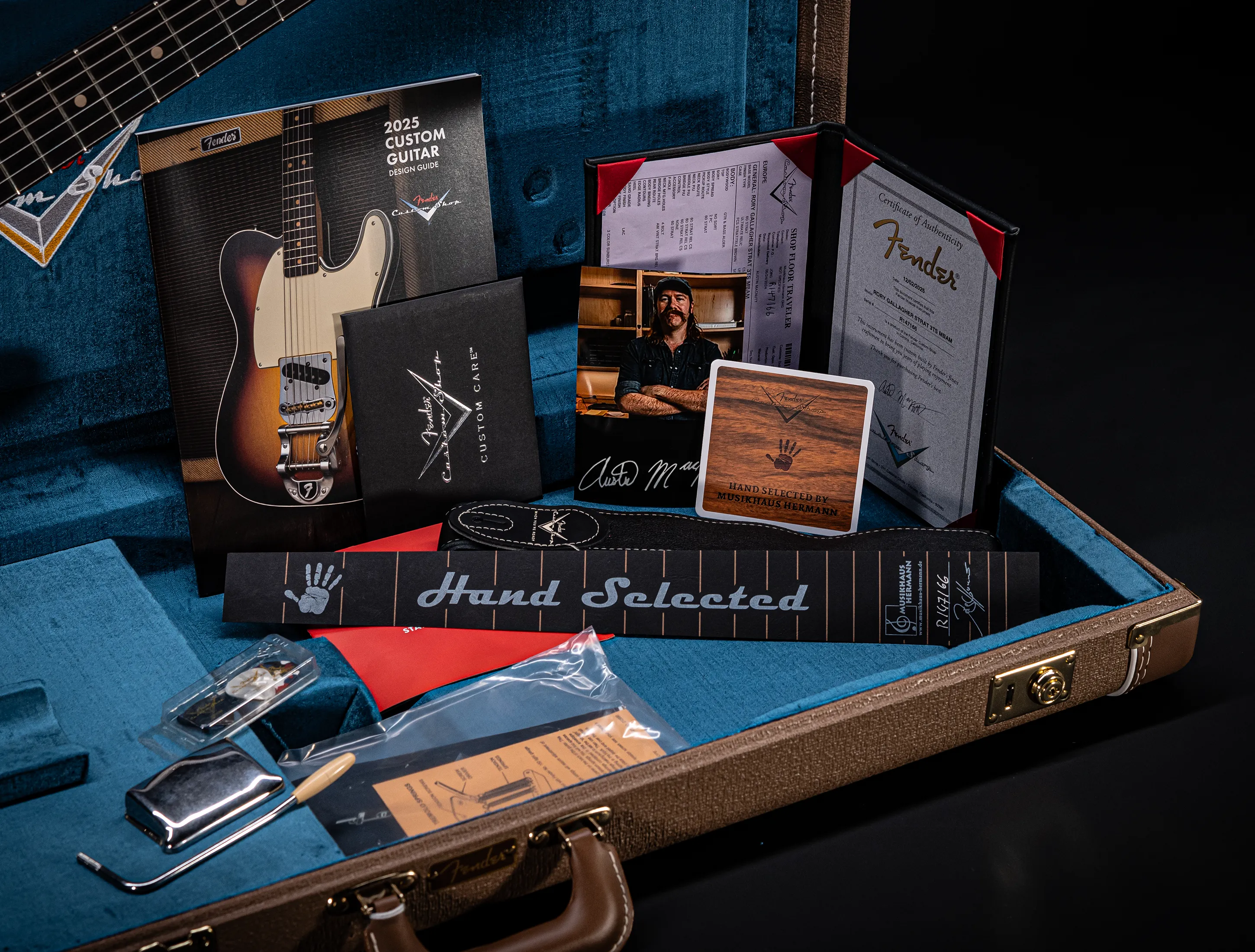 • Custom-Shop Zertifikat im gebundenem Booklet mit originalem Shop-Floor-Traveler