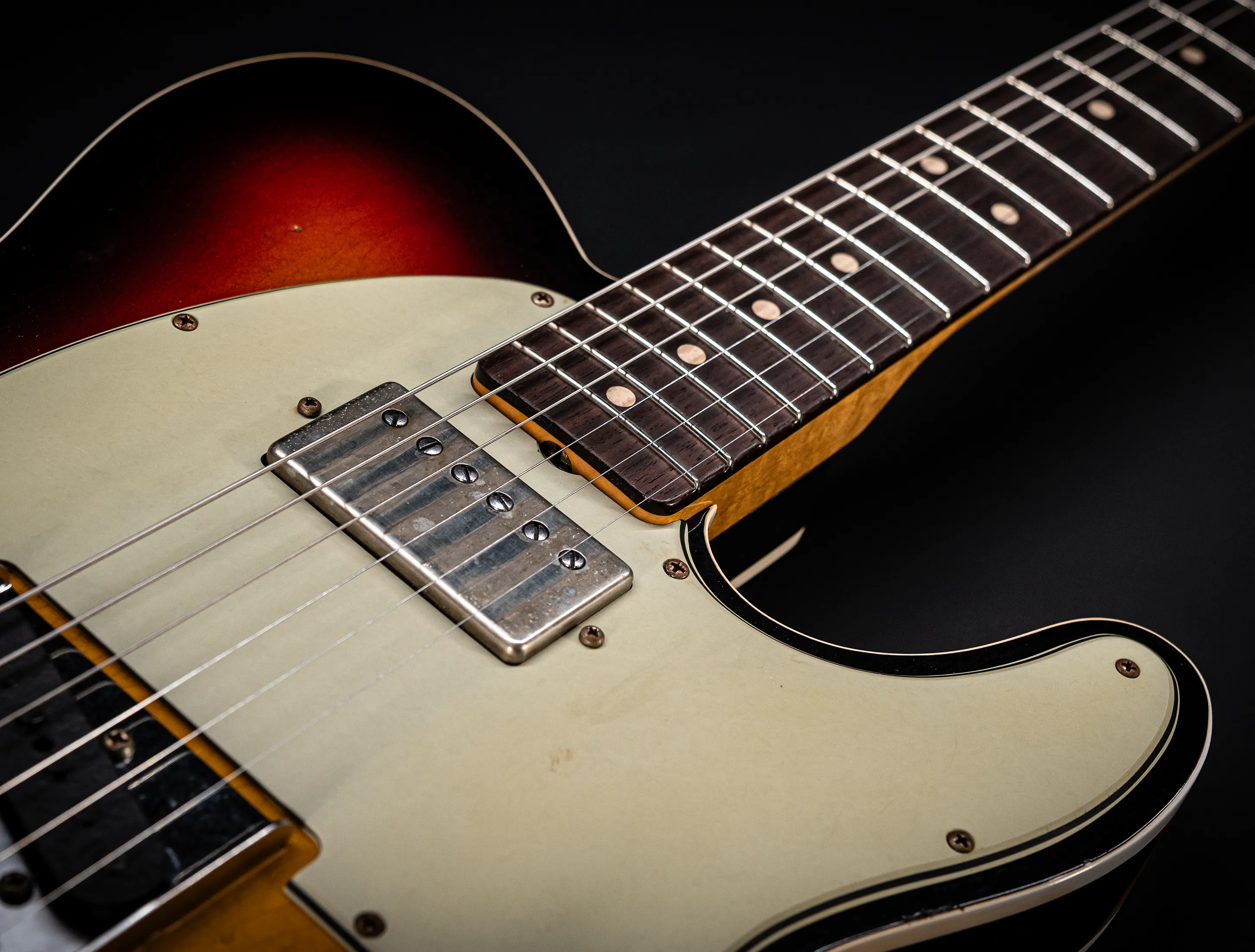 Jörg Hermann hat in enger Zusammenarbeit bei seinem Besuch im Fender Custom Shop mit Senior Masterbuilder Dale Wilson diese wirklich coole Version einer 63er Humbucker Tele Custom entworfen. Der Gedanke war auch bei dieser Gitarre aus der **MBD** Serie - eine optisch coole Gitarre (und das ist absolut gelungen) im Zusammenspiel mit den "inneren Werten" zu kombinieren. So wurde bewusst auf das Custom Shop Upgrade „Sort Body Wood“ wert gelegt, um Ihnen in jeder Hinsicht ein Premium Instrument auf Masterbuilt Niveau zu präsentieren.