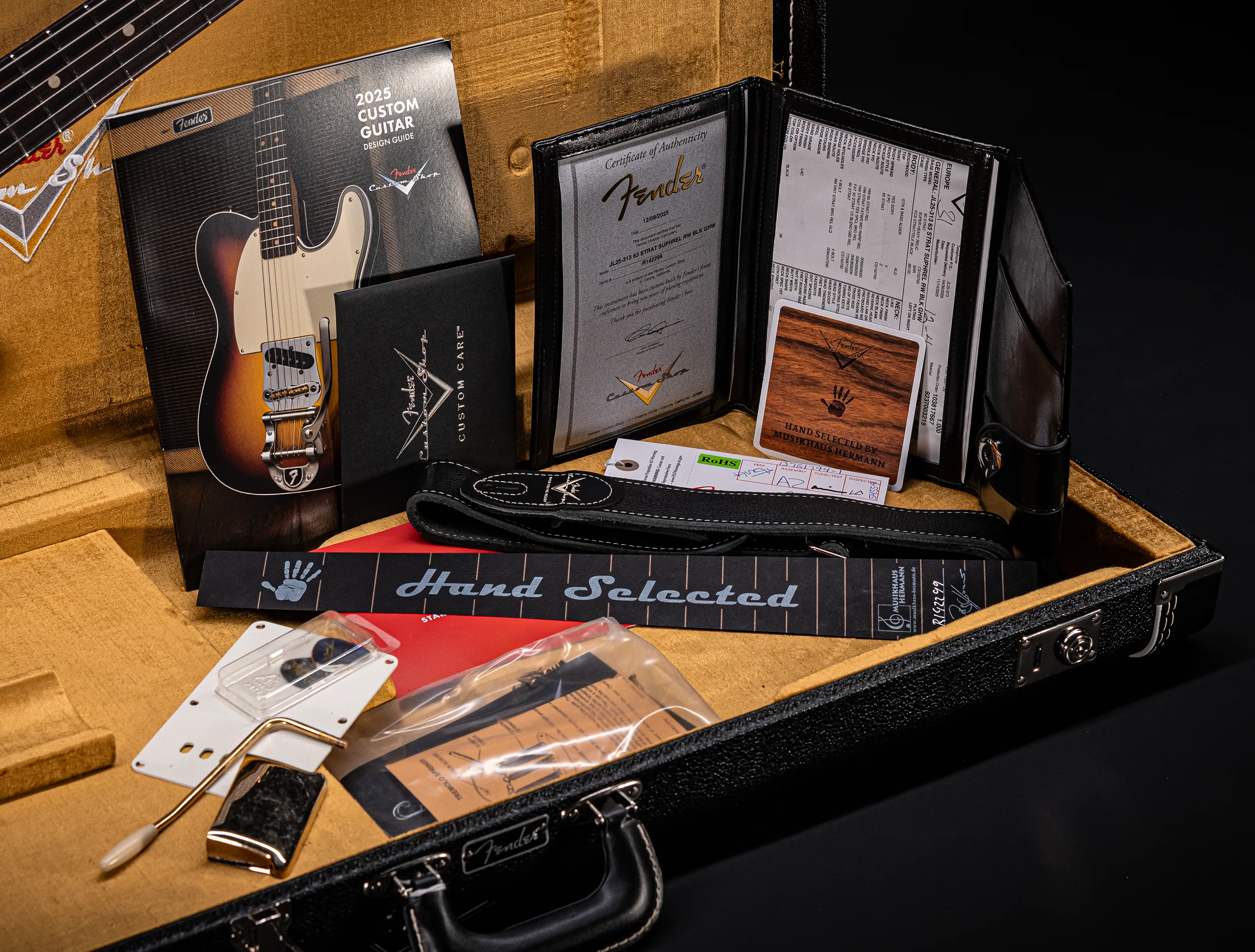 - Custom-Shop Zertifikat im gebundenem Booklet mit originalem Shop-Floor-Traveler