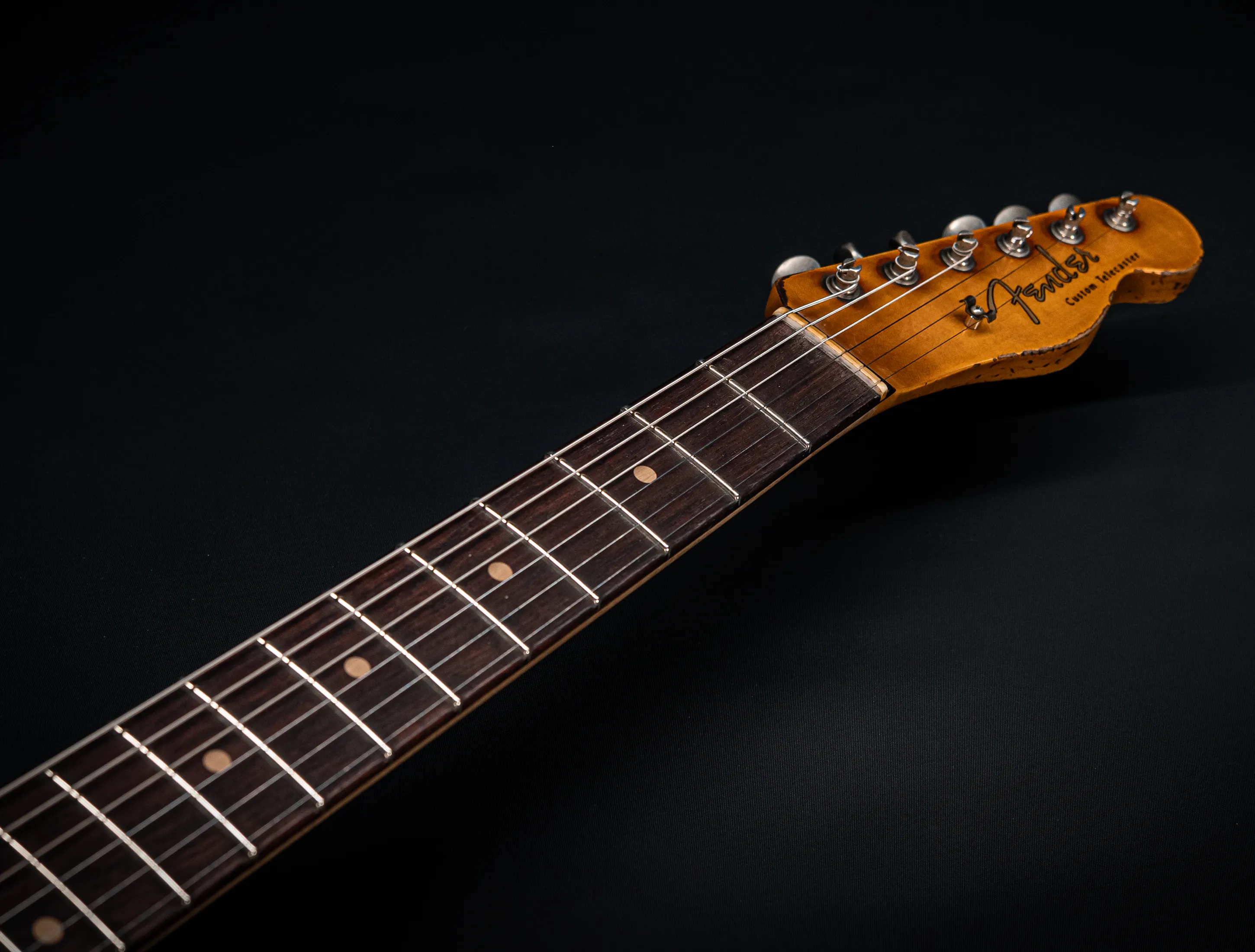Jörg Hermann hat in enger Zusammenarbeit mit dem ehemalig legendären Masterbuilder Vincent van Trigt (damals vor Ort in der Custom Shop Factory von Fender) ein wahrliches Meisterstück einer Telecaster entworfen und natürlich ist diese wirklich besondere Version einer 62er Tele Custom in der typischen Vince van Trigt bevorzugten Super Heavy Relic Aging Ausführung und zum anderen mit einem komfortablen 9,5" Griffbrettradius ausgestattet. Der Gedanke war auch bei dieser Gitarre aus der neuen **MBD II** Serie; Eine optisch coole Gitarre (und das ist perfekt gelungen) im Zusammenspiel mit den "inneren Werten" zu kombinieren. So wurde bewusst auf das Custom Shop Upgrade „Sort for lightweight Body Wood“ wert gelegt, um Ihnen in jeder Hinsicht ein Premium Instrument auf Masterbuilt Niveau zu präsentieren.