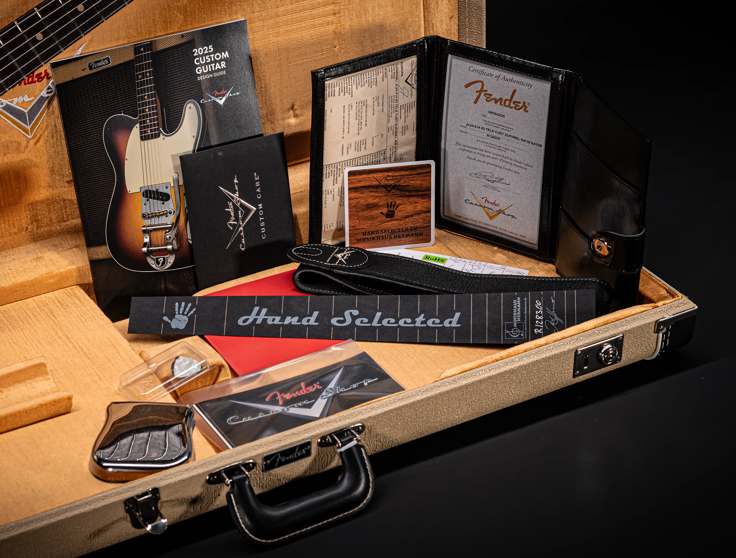 - Zubehör-Kit (Custom-Shop Gitarrengurt, Brückenabdeckung "Ashtray", Pflegehinweise & Plectren)