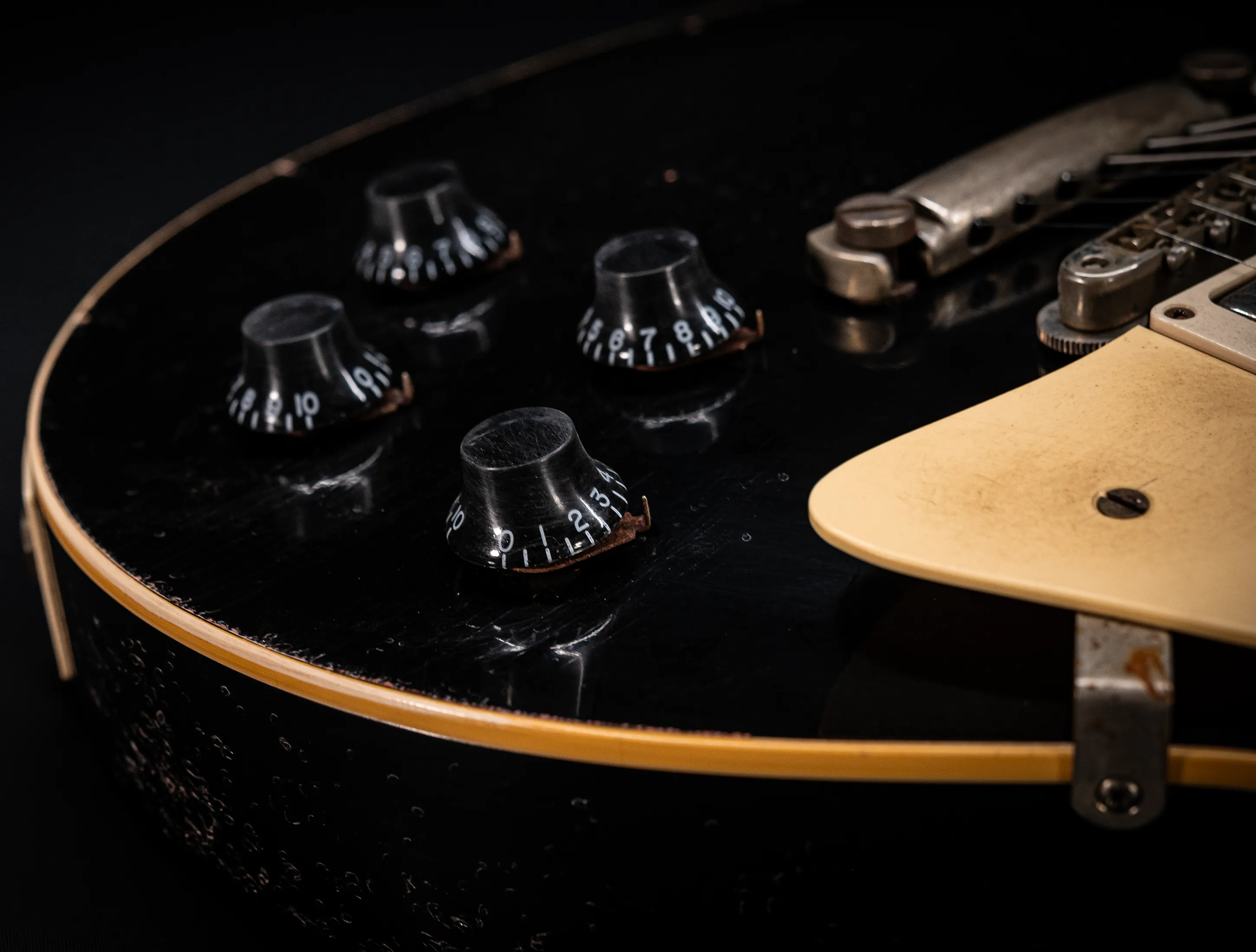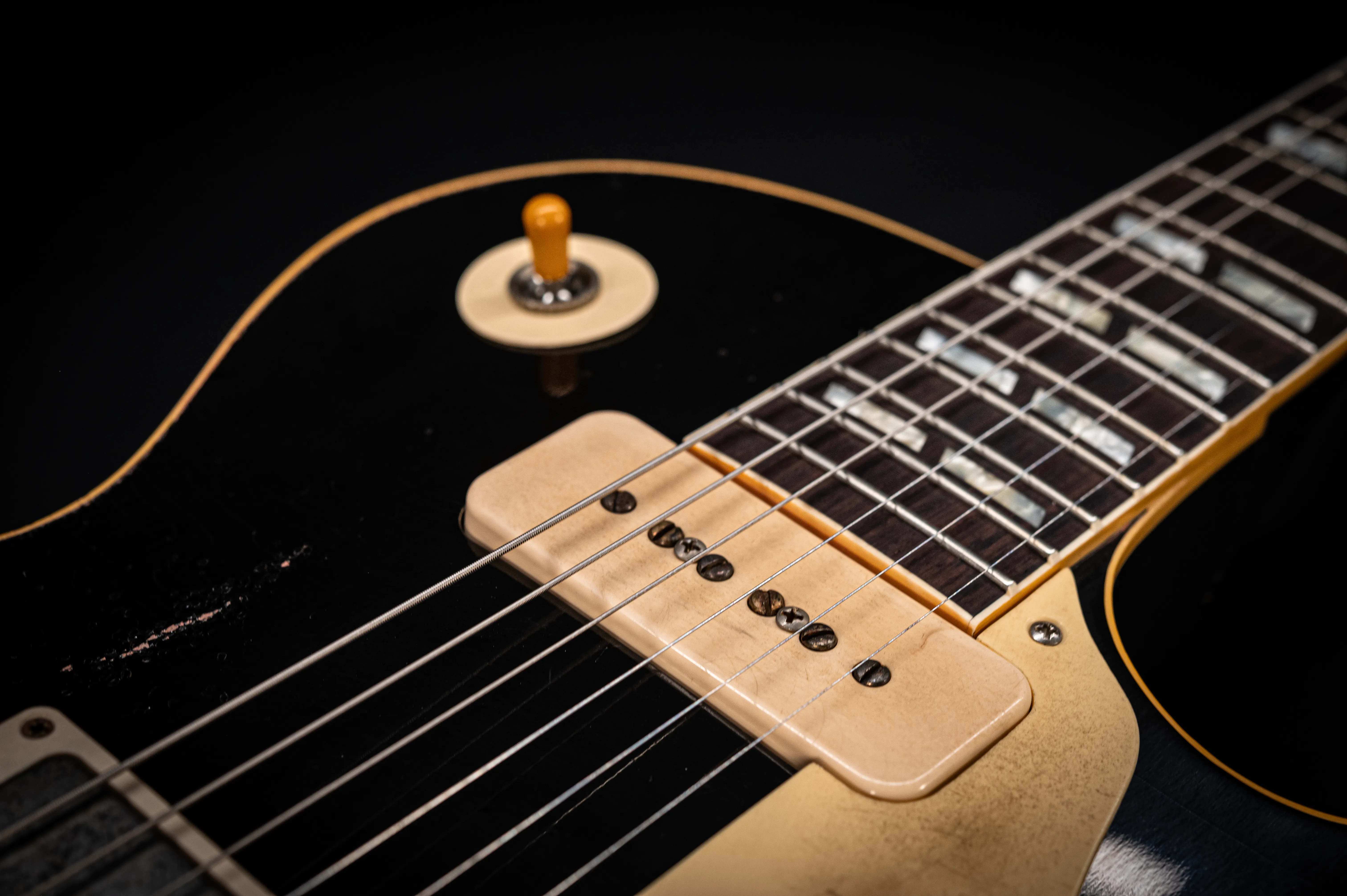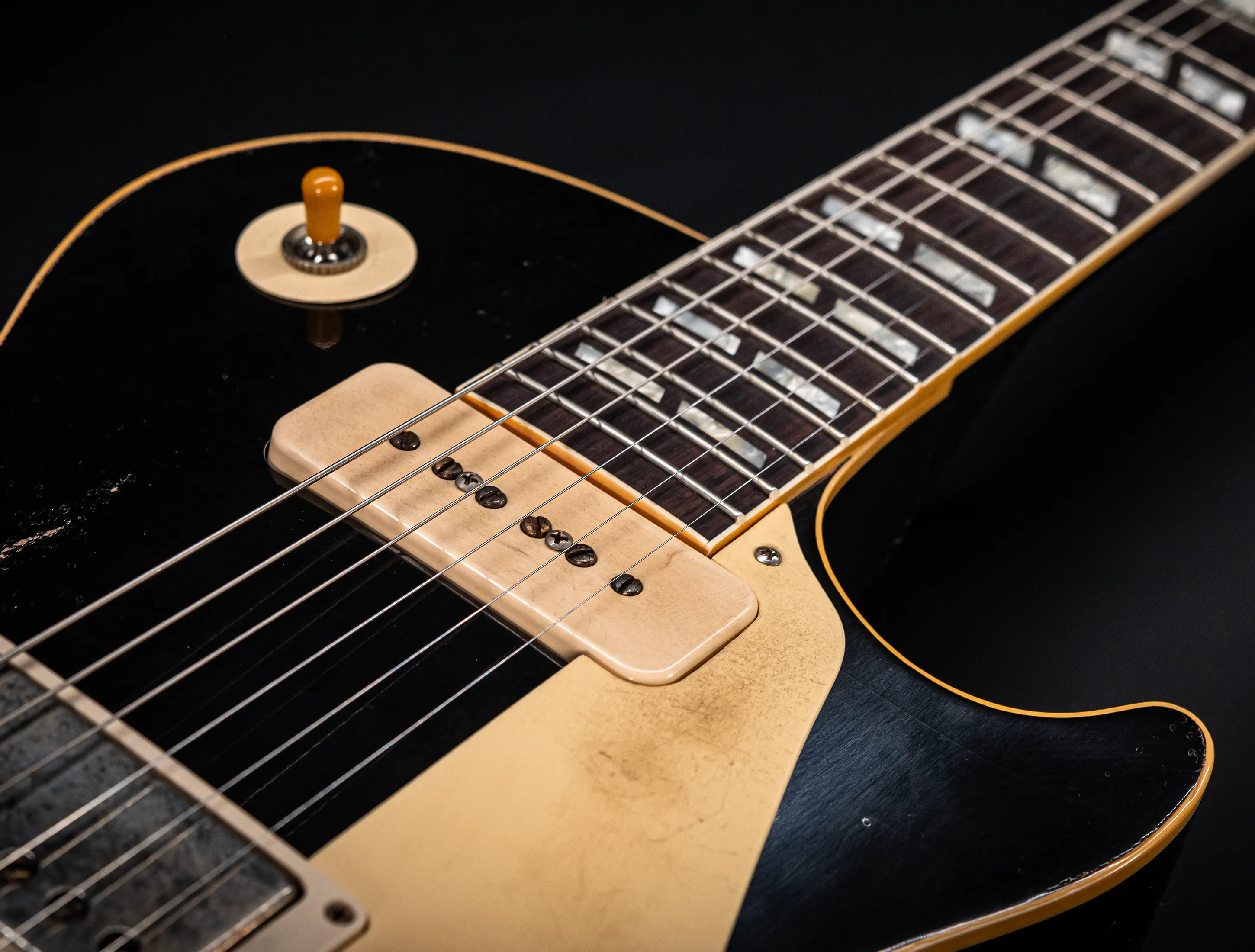 Die Farbe "Factory Black", die dazu passende Murphy LAB Authentic Heavy Aged Behandlung lassen diese Les Paul zu einem ganz besonderen Highlight werden. Und natürlich dürfen hier die besonderen Tonabnehmer nicht fehlen, darum wurden für diese Gitarre der Custom Historic P-90 Soapbar am Hals und der Custombucker AL3 15,5" unpotted  an der Bridge verbaut -