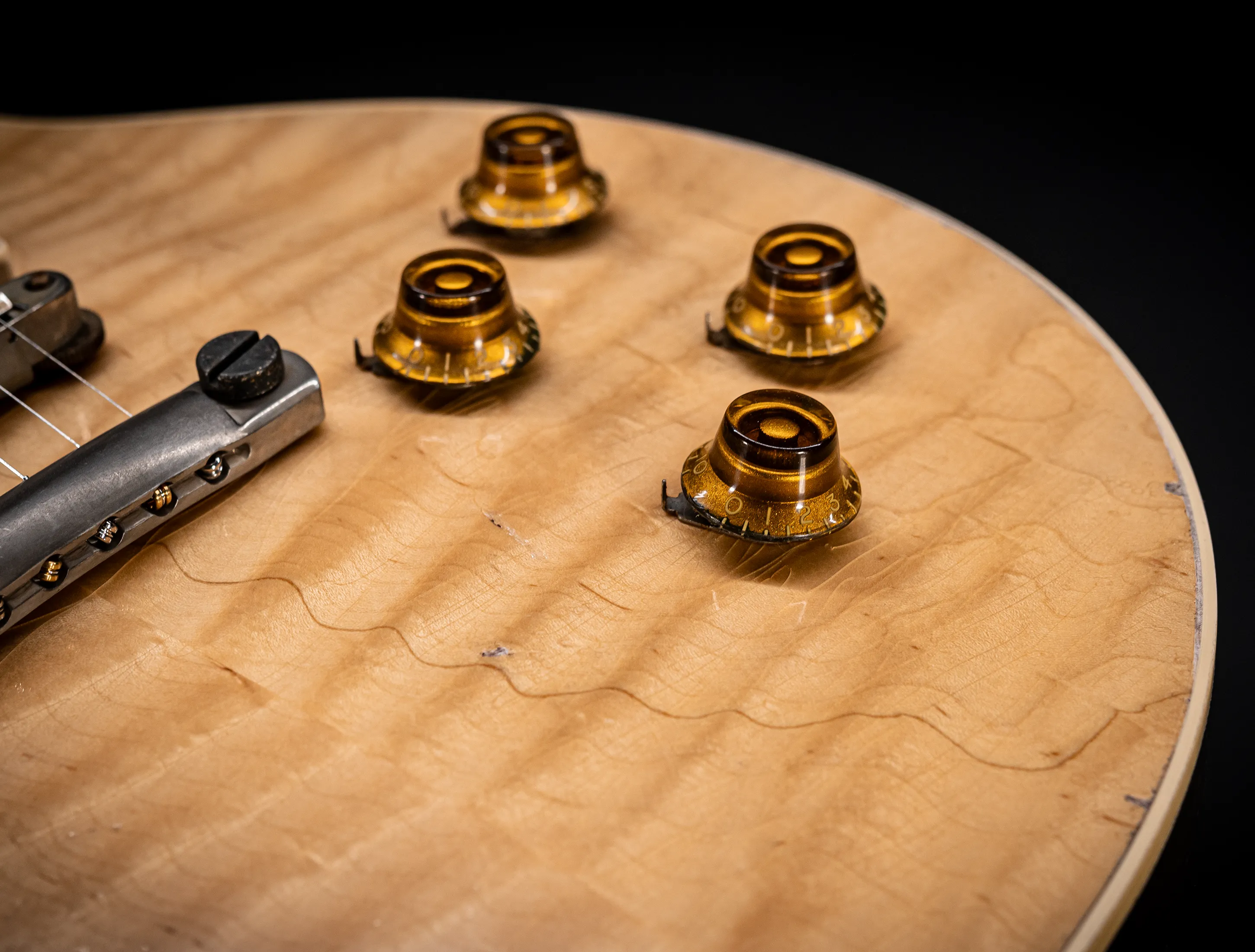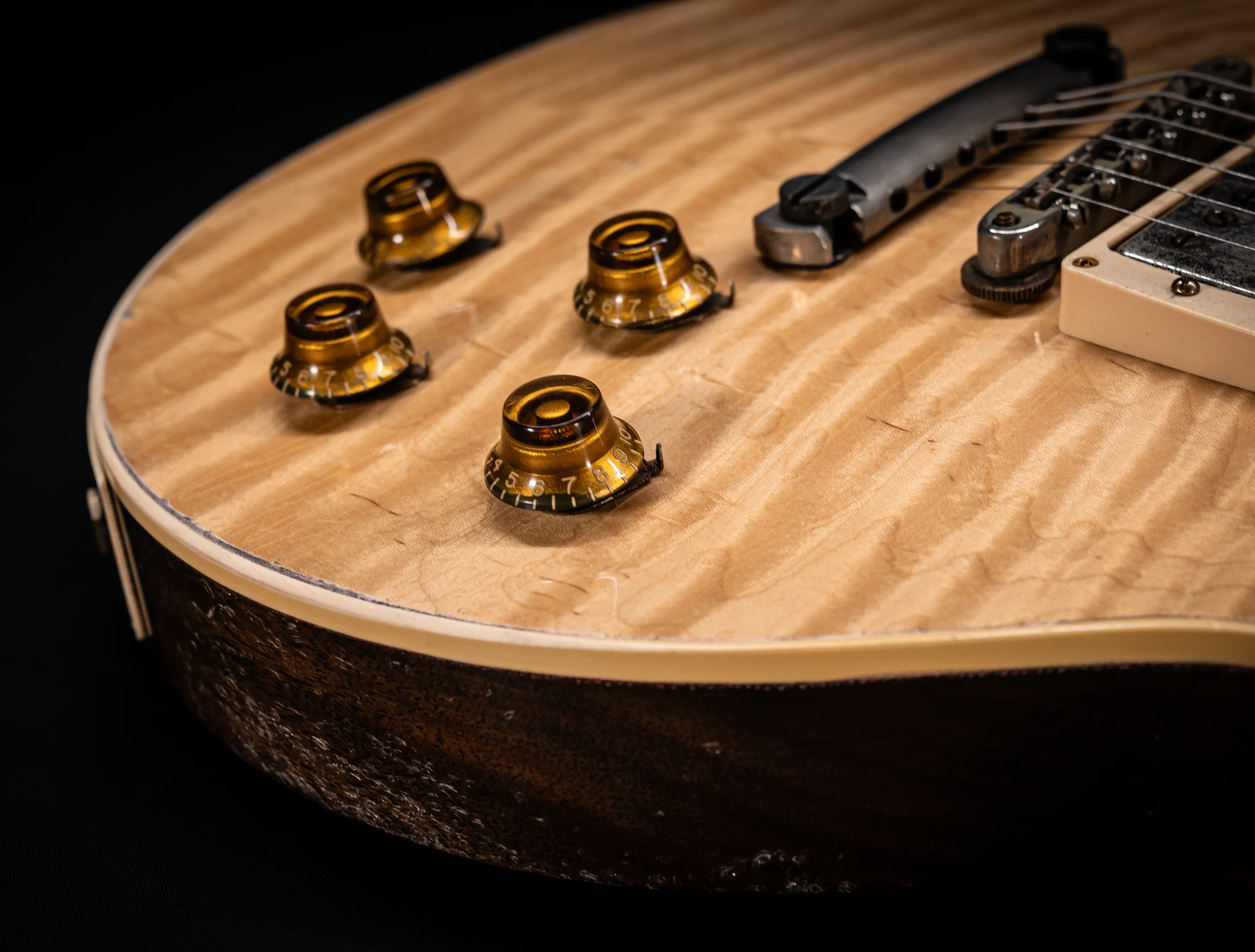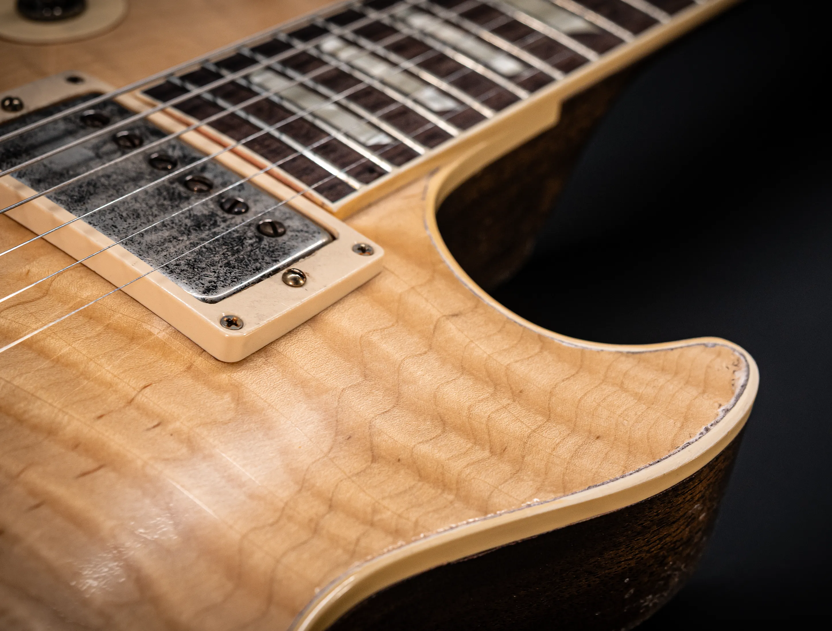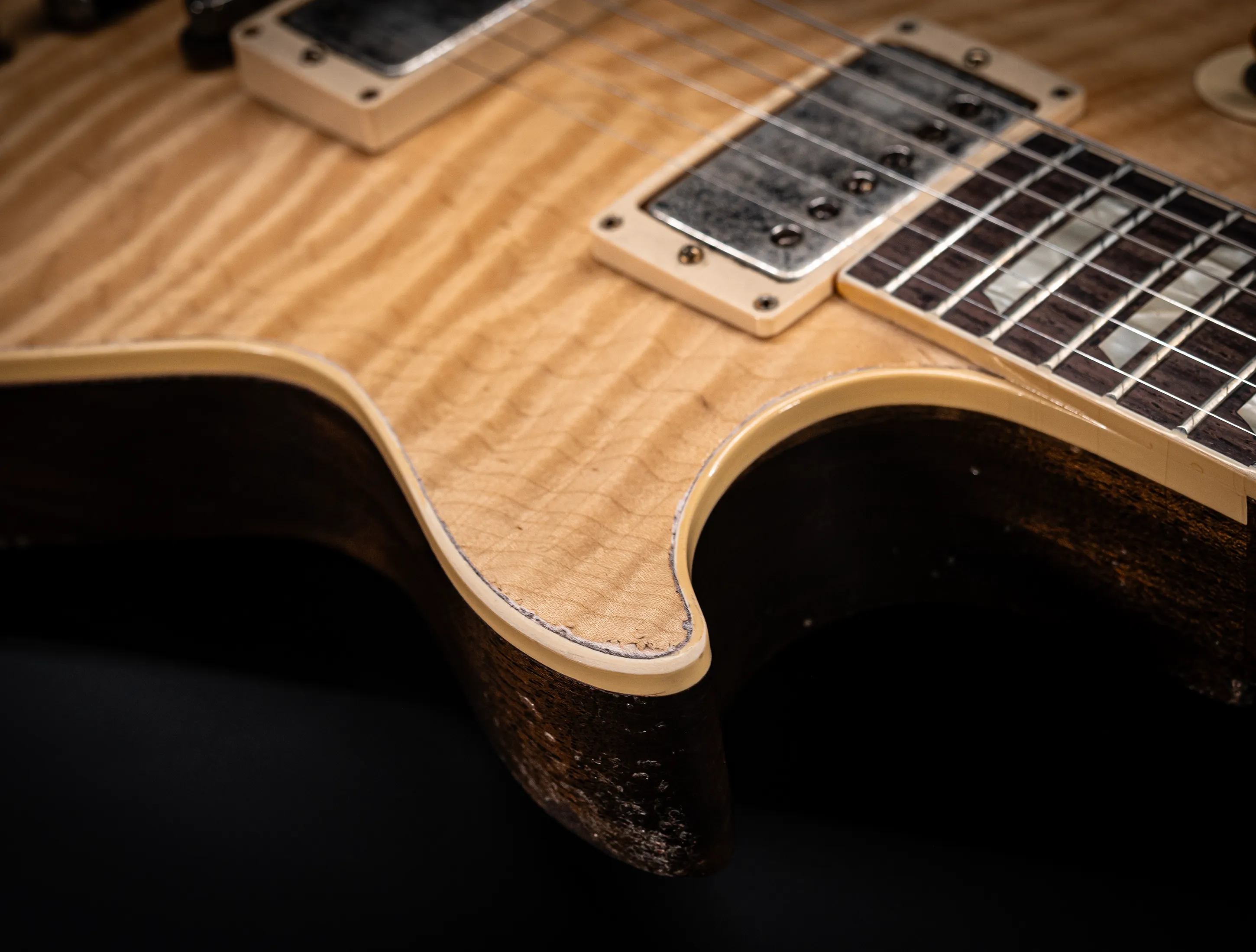 - Decke: 2tlg. auf Gewicht und Schwingung selektierte premium R9 extra Flame Ahorn Decke, personal Selektion im Custom Shop Werk Nashville