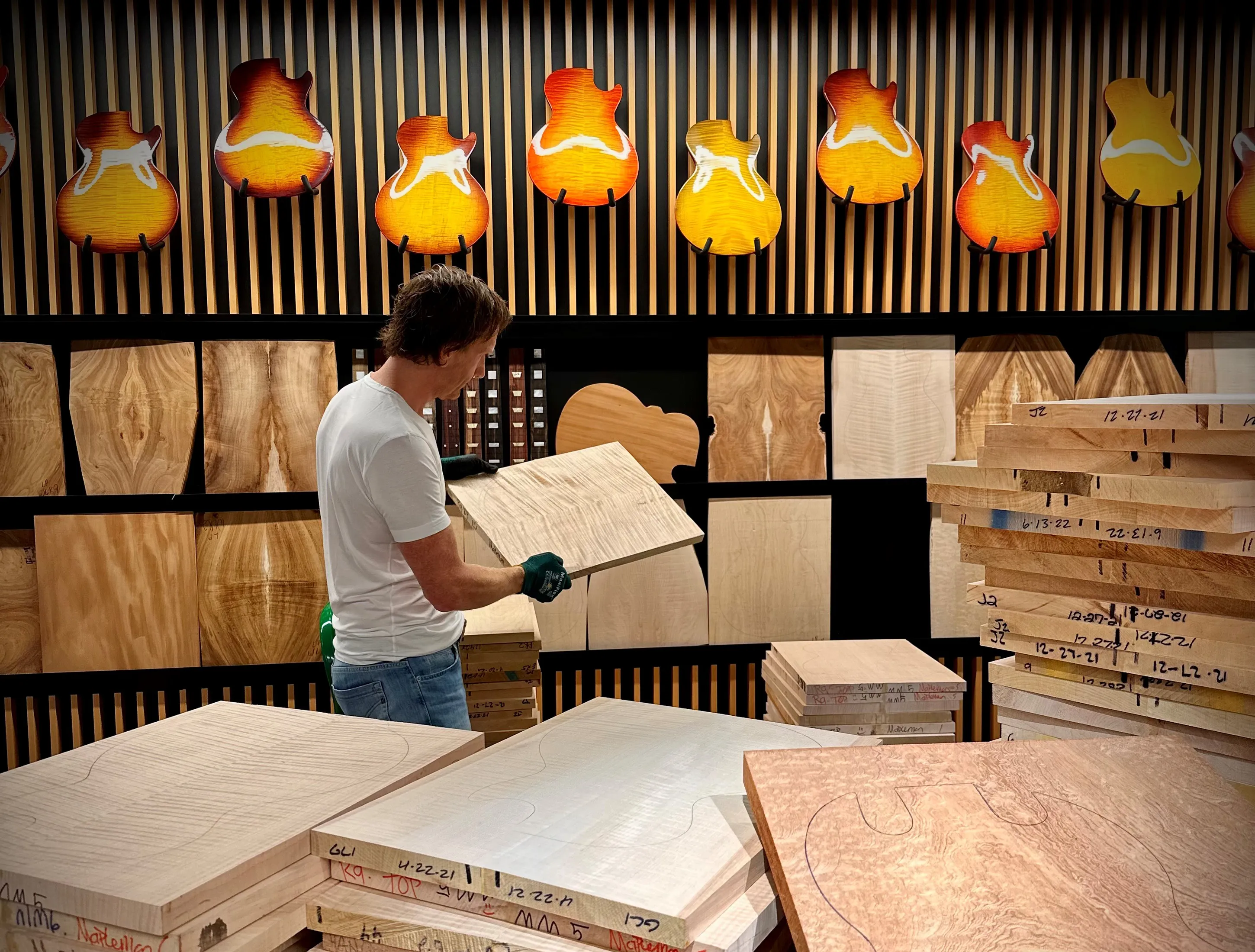 ..... achten Sie auf das Gewicht der Gitarre. Nicht gechambert, nicht gewichtsreduziert, nicht bearbeitet! Unsere Holzselektion hat voll und ganz gegriffen. Wow!