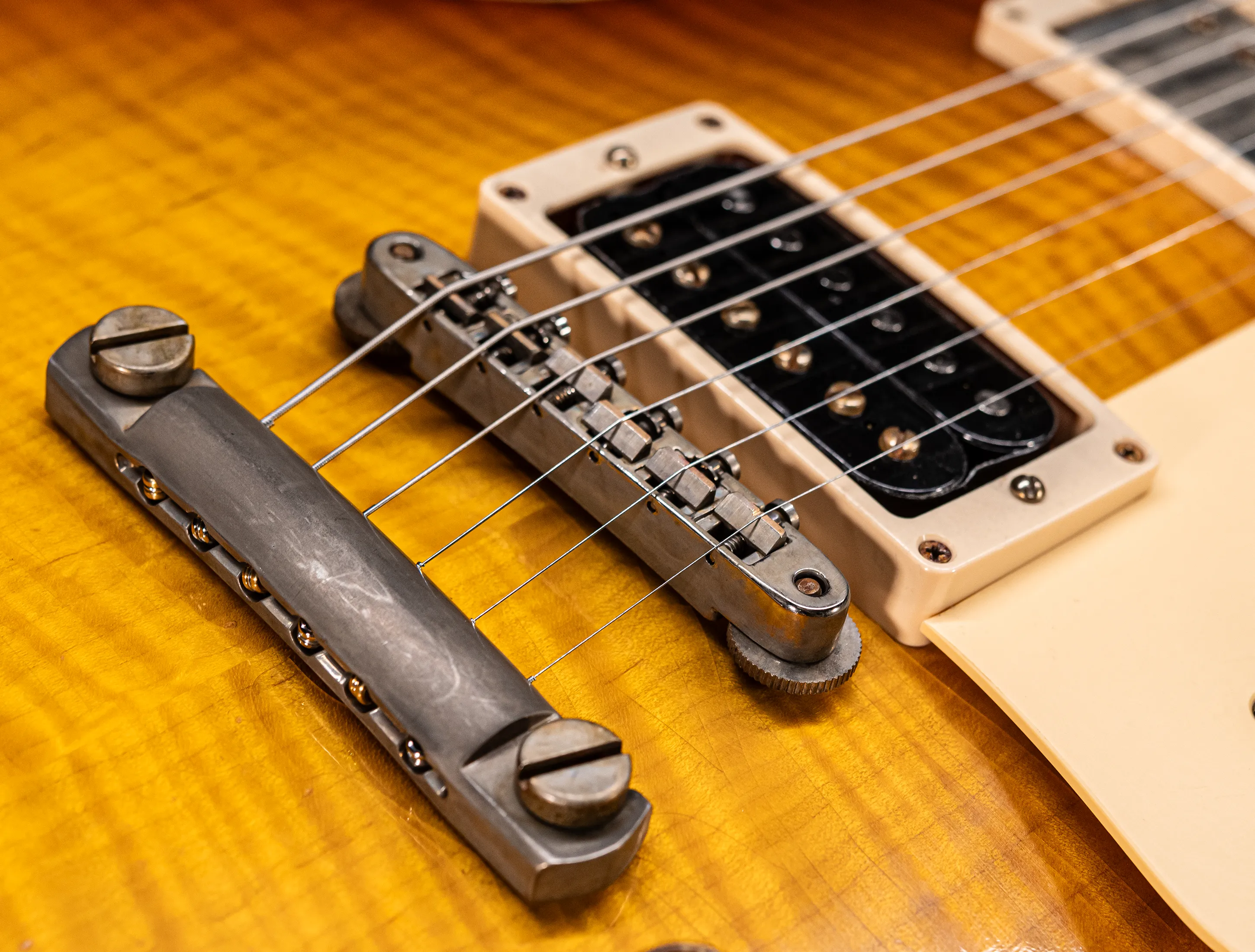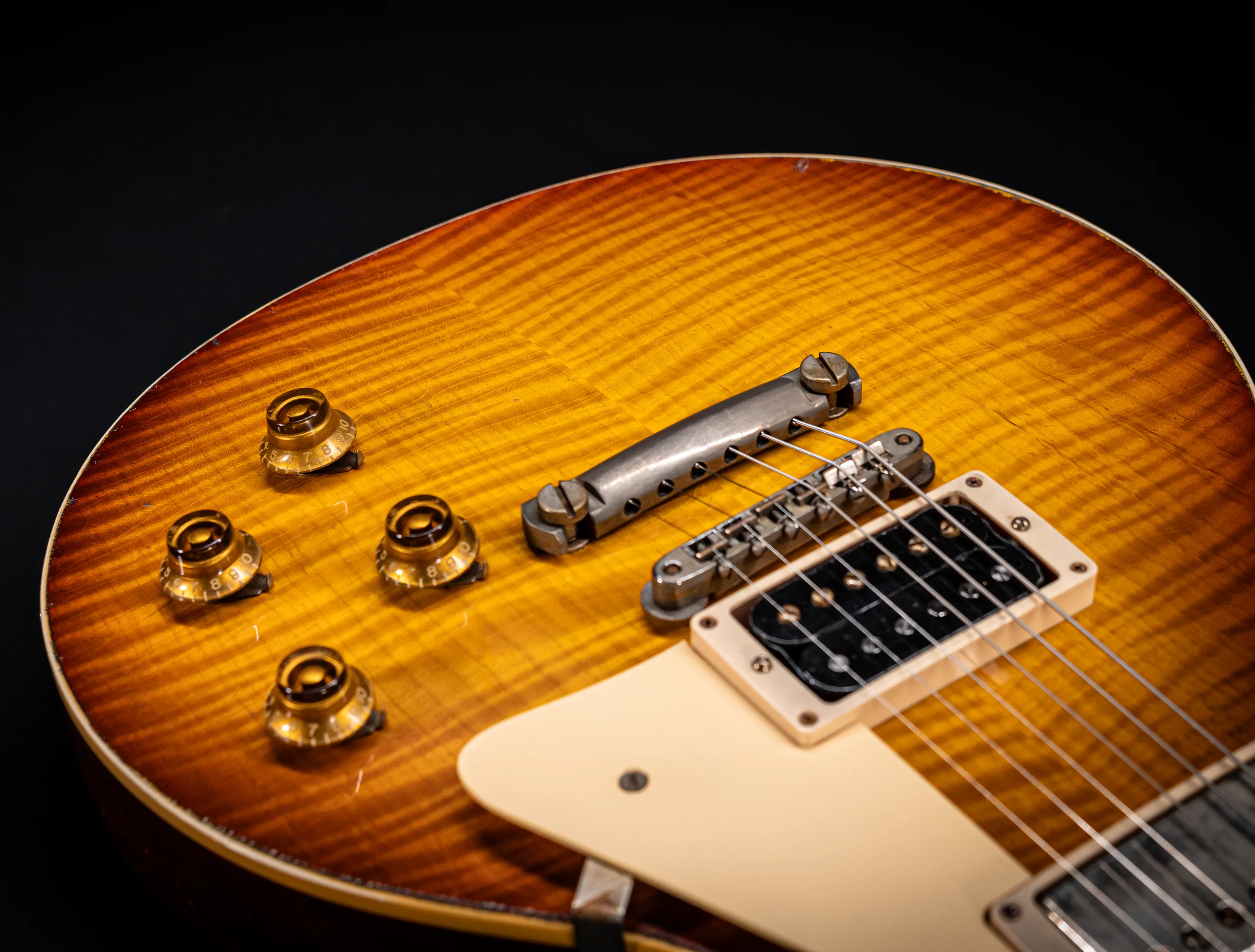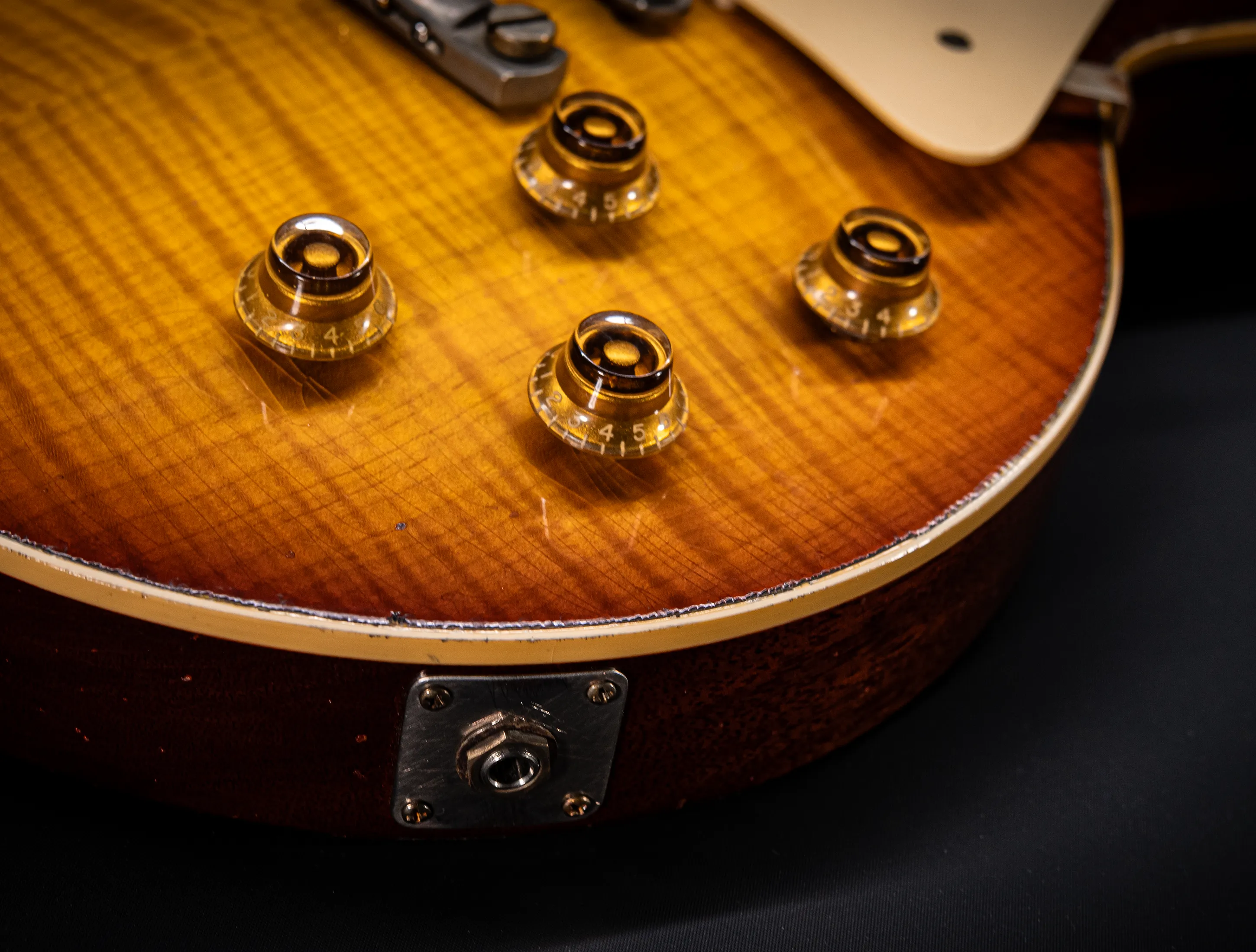 Die Sonderfarbe "Antique Enhance WDF Burst", die dazu passende, von Jörg Hermann und Tom Murphy handselektierte 59er Flame-Maple Decke sowie die passende Murphy LAB Authentic Light Aged Behandlung lassen diese Les Paul zu einem einzigartigen Highlight werden. Und natürlich dürfen hier die passenden Tonabnehmer nicht fehlen, darum wurden für diese Gitarre selbstverständlich die Custombuckers Unpotted "Exposed" PickUps 4-conductor - to Series/Parallel verbaut - was für eine Ansage !!!
