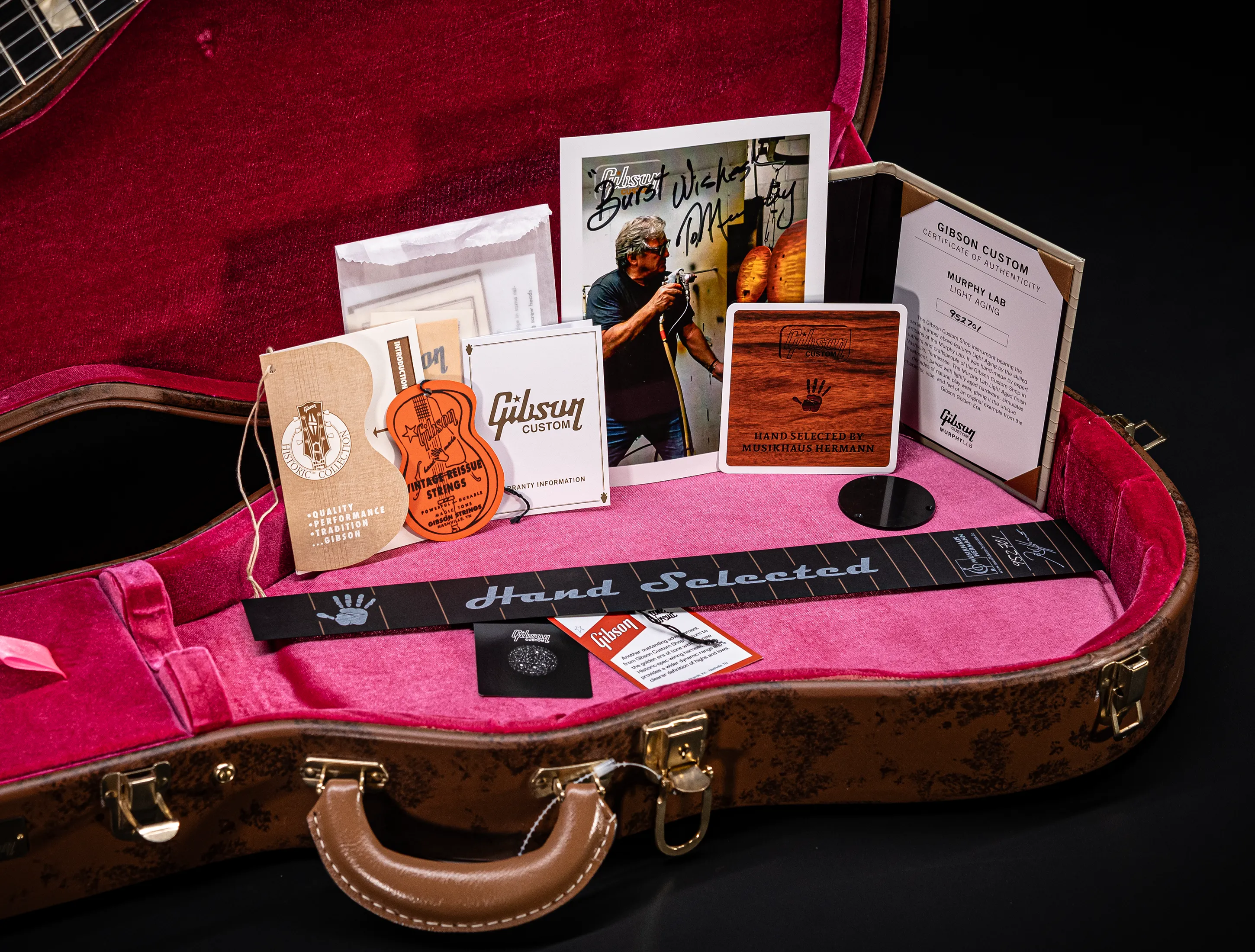Wenn man sich auf eine Sache verlassen kann, dann auf das unschlagbare "BESONDERE" einer Gibson MHH-Upgrade "Hermann Spec" Special Edition. Nicht anders als auch hier, bei unserer aktuellen "InPage" Two 1959 Standard in der wunderschön Custom-Farbe: Antique Enhance WDF Burst.