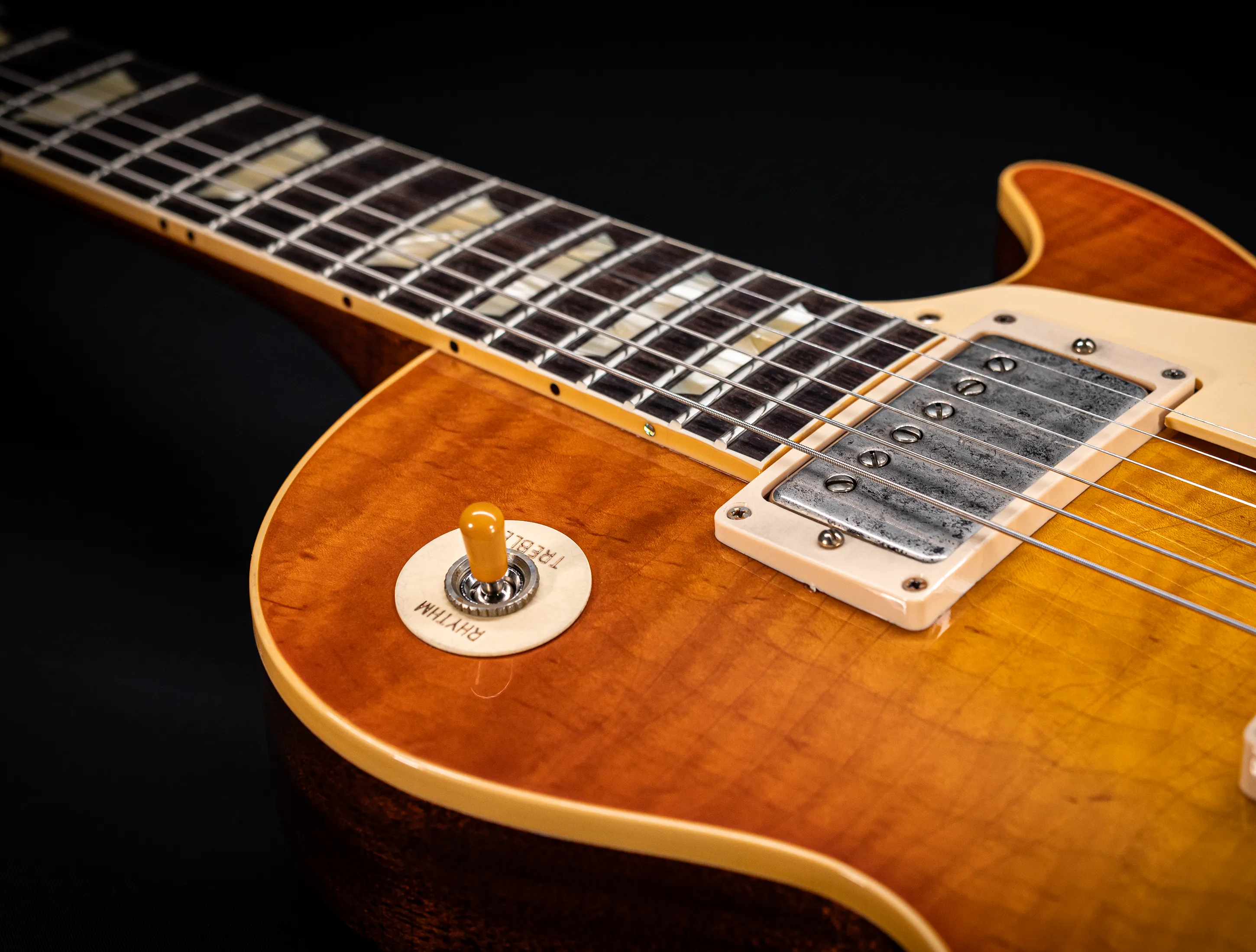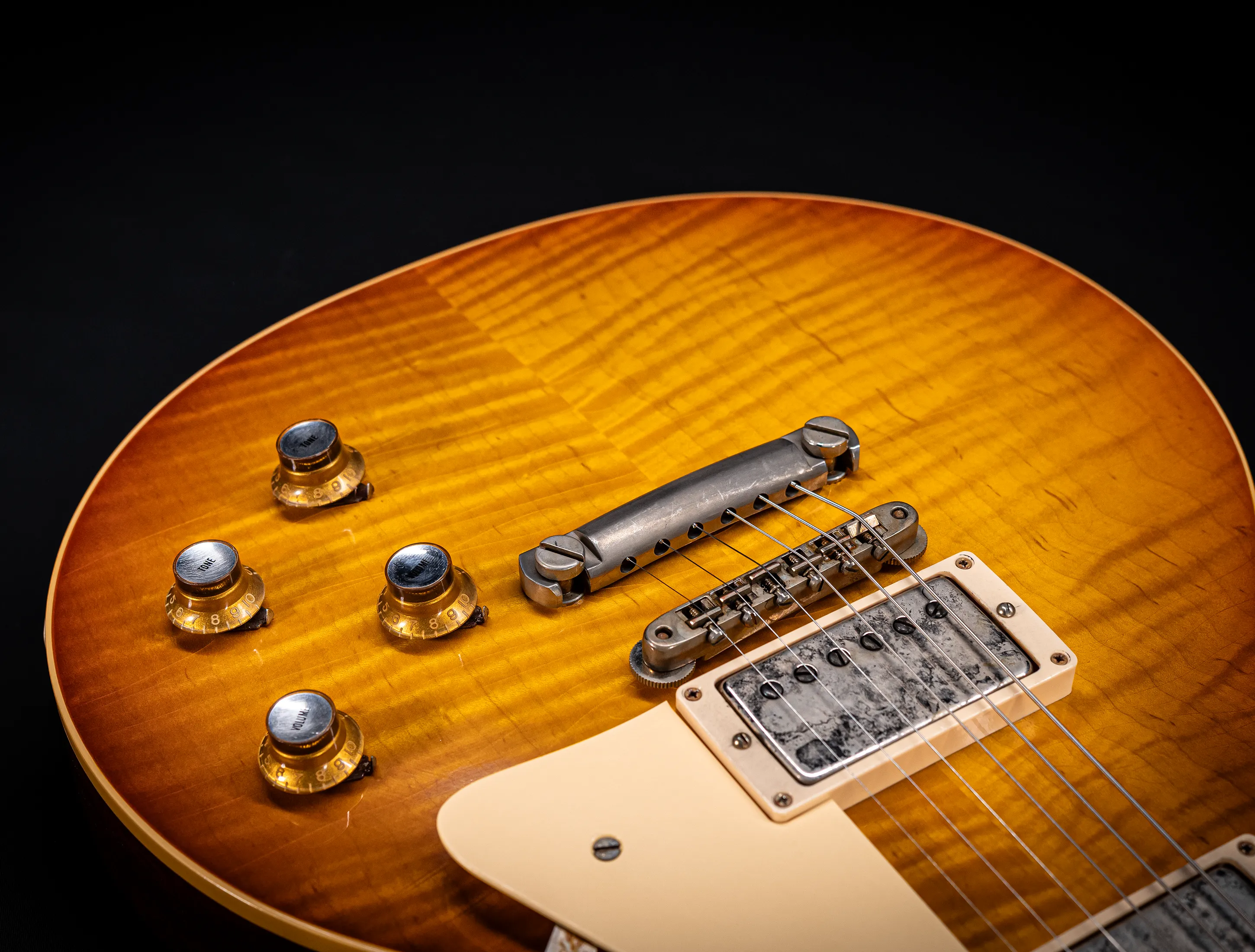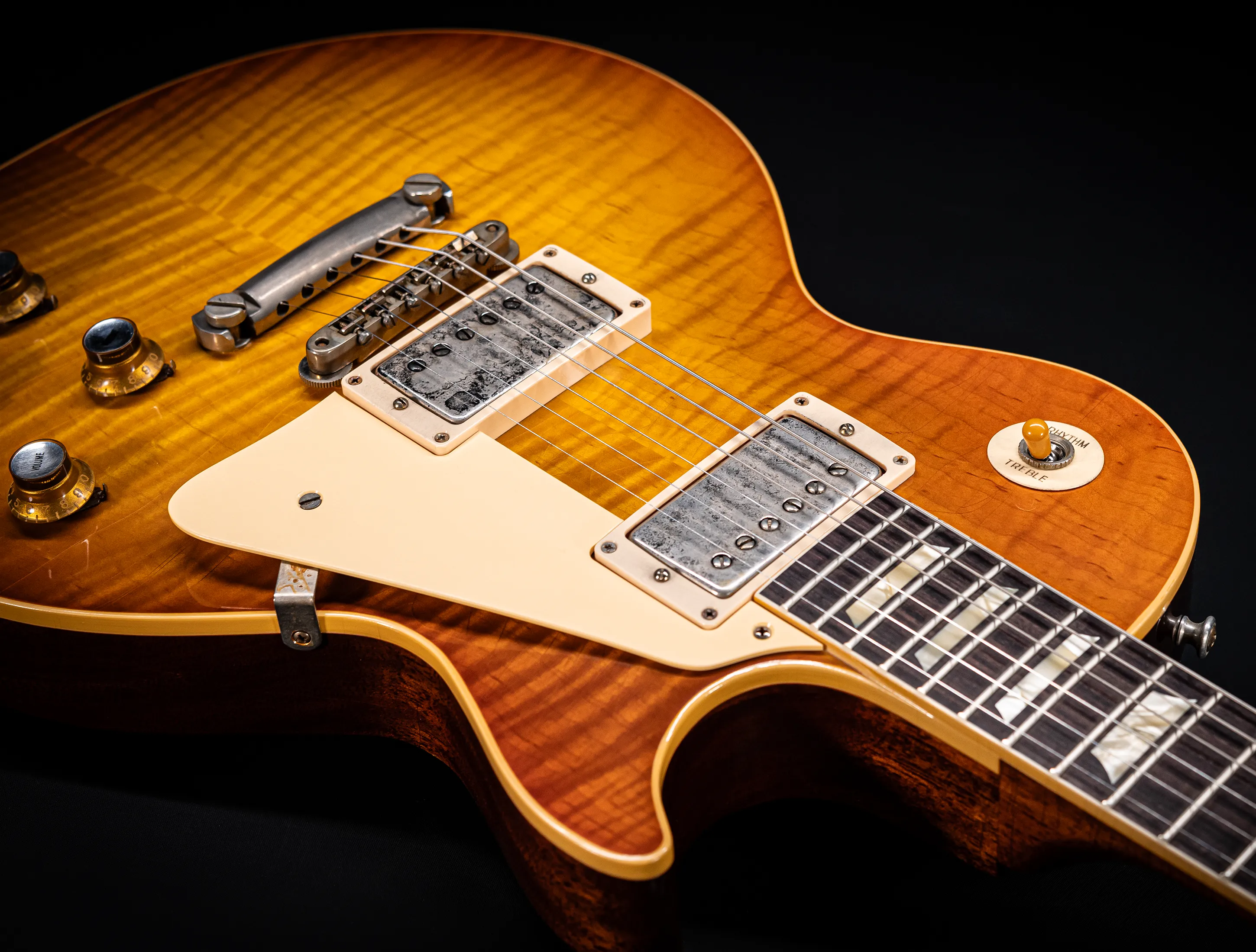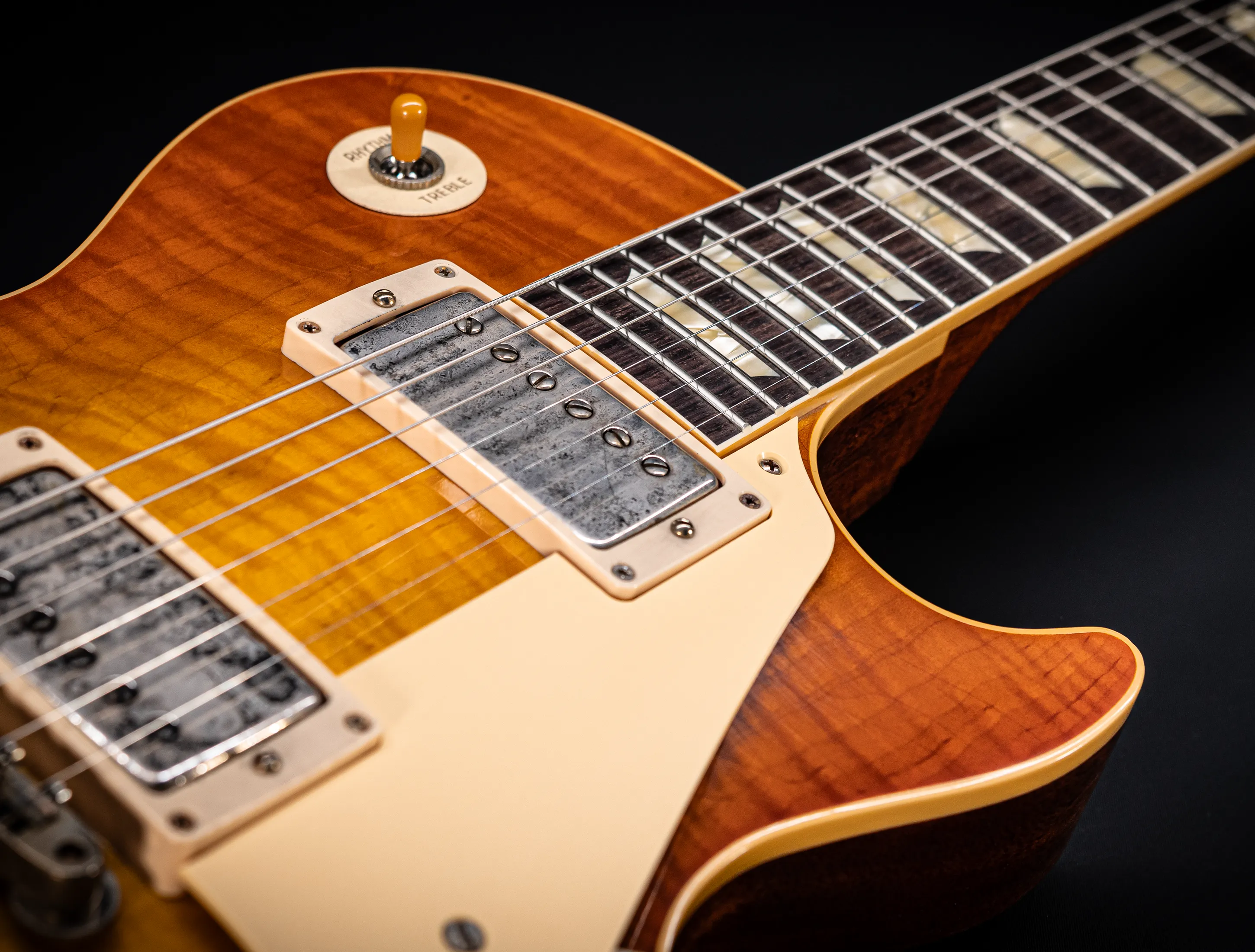 Inspiriert von einer Legende, haben wir diese exklusive Gitarre im Custom-Shop Nashville fertigen lassen. Die Farbe "Antique Faded Cherry Burst", die dazu passende, von Jörg Hermann und Tom Murphy handselektierte R0 Maple Decke und die dazu passende Murphy LAB Authentic Ultra Light Aged Behandlung lassen diese Les Paul zu einem ganz besonderen Highlight werden. Und natürlich dürfen hier die passenden Tonabnehmer nicht fehlen, darum wurden für diese Gitarre selbstverständlich der Murphy Spec underwound Neck Custombucker Aged AL3 15.5" UNPOTTED verbaut - was für eine Ansage !!!