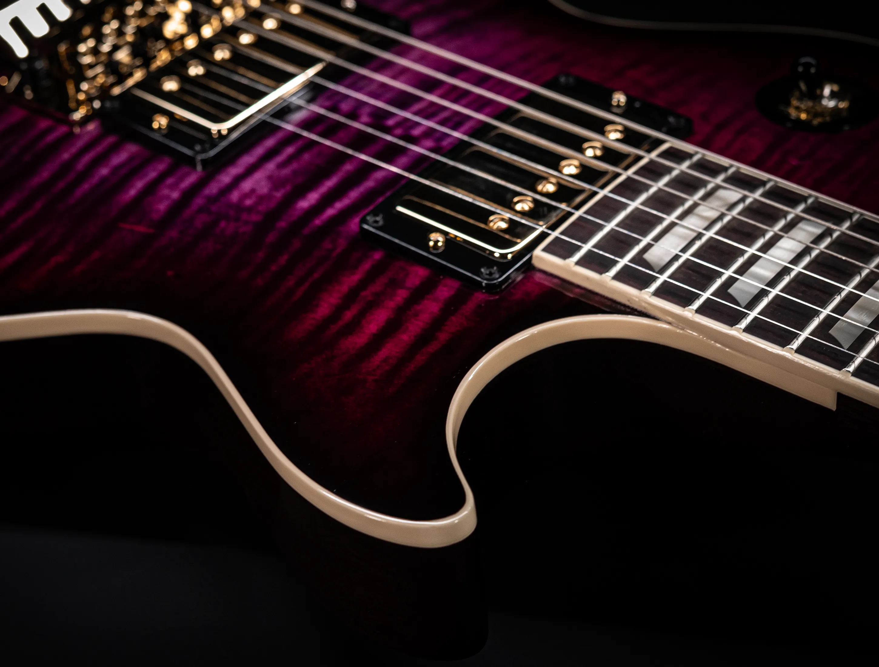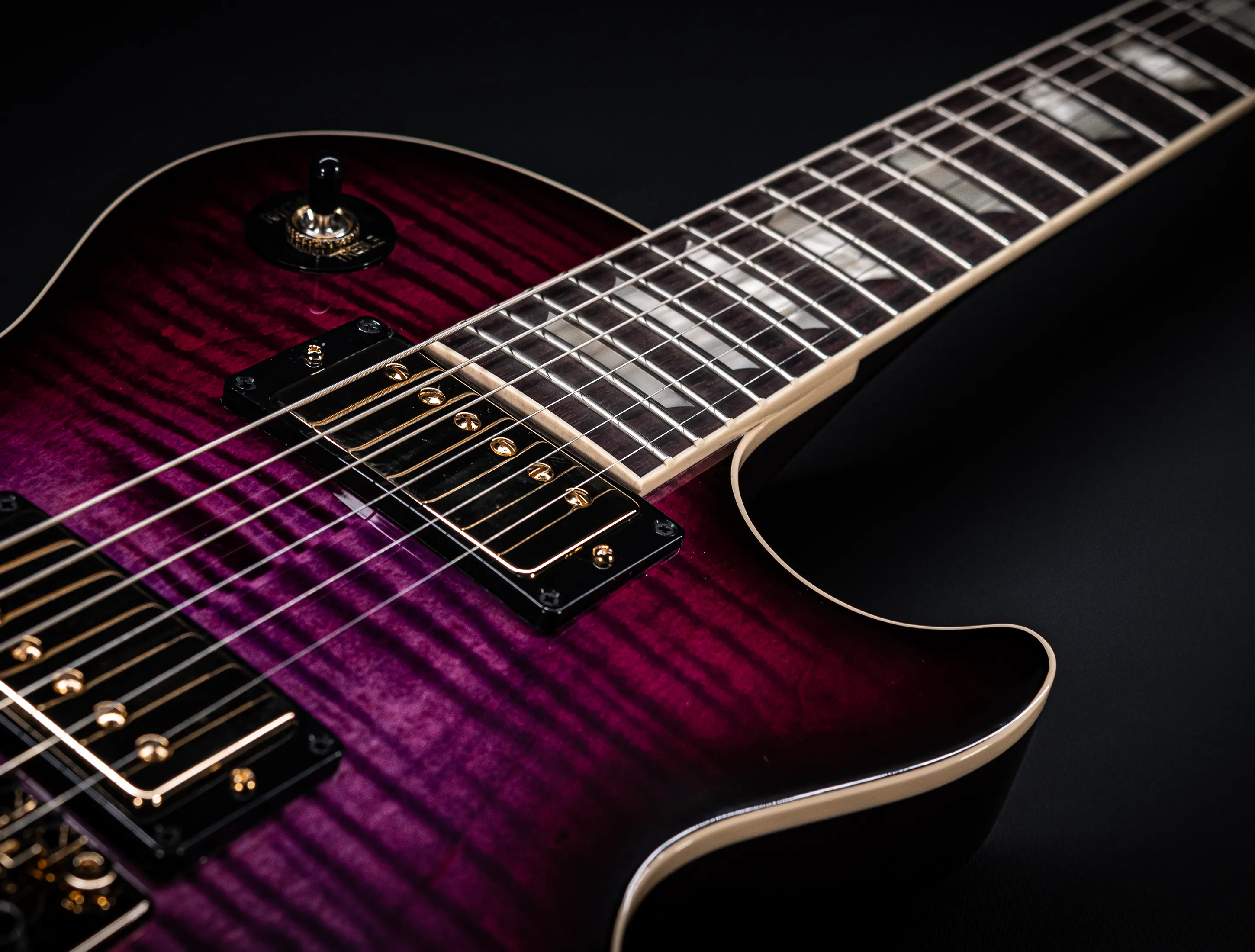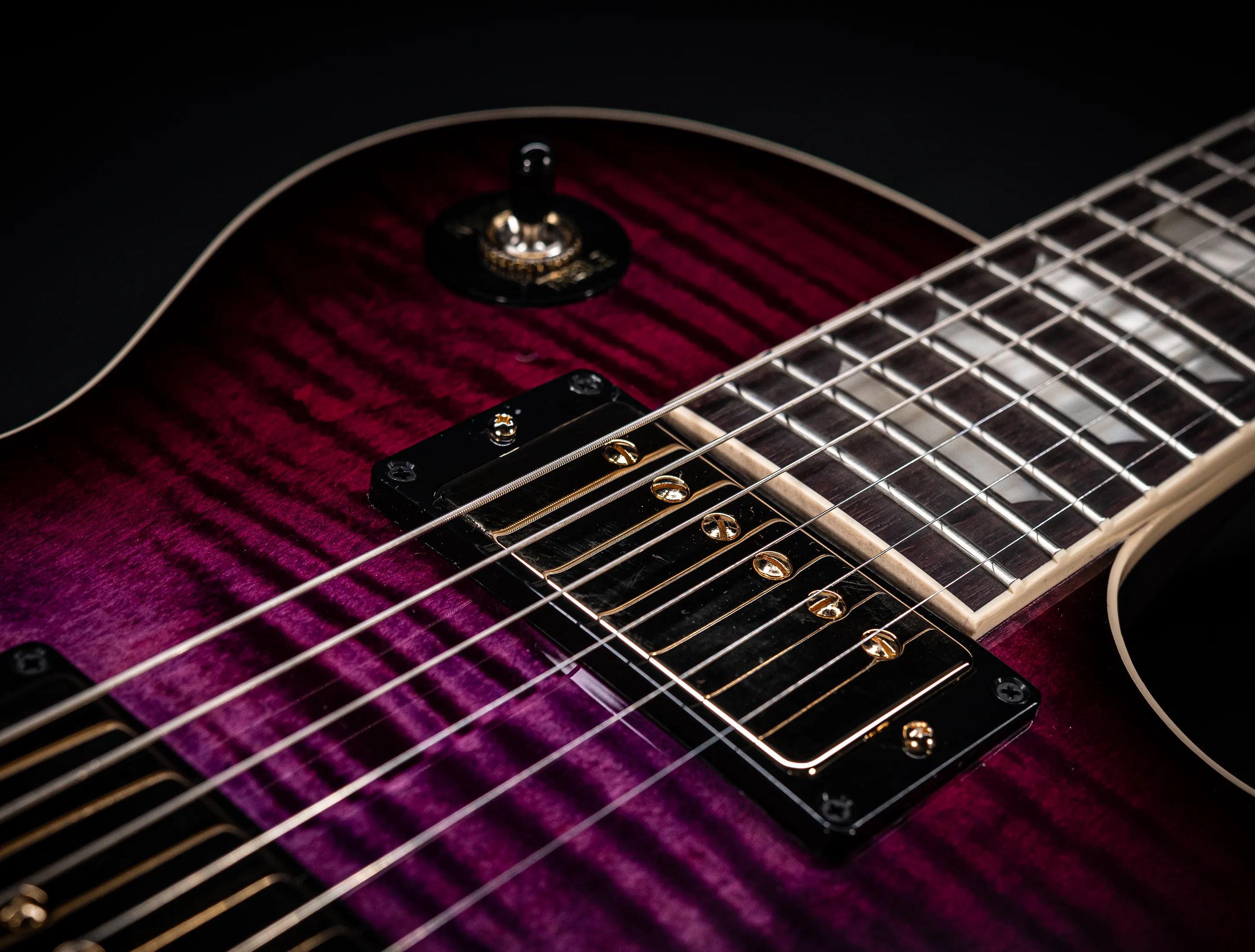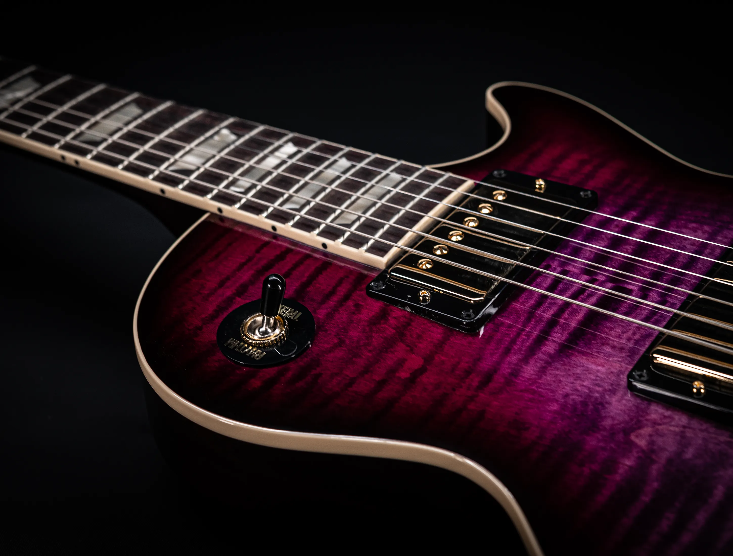 In der Custom Version ist die Les Paul Axcess ein Instrument, welches man unbedingt näher betrachten sollte, denn die Konfiguration ist wie die Farbe auffallend und einzigartig.
