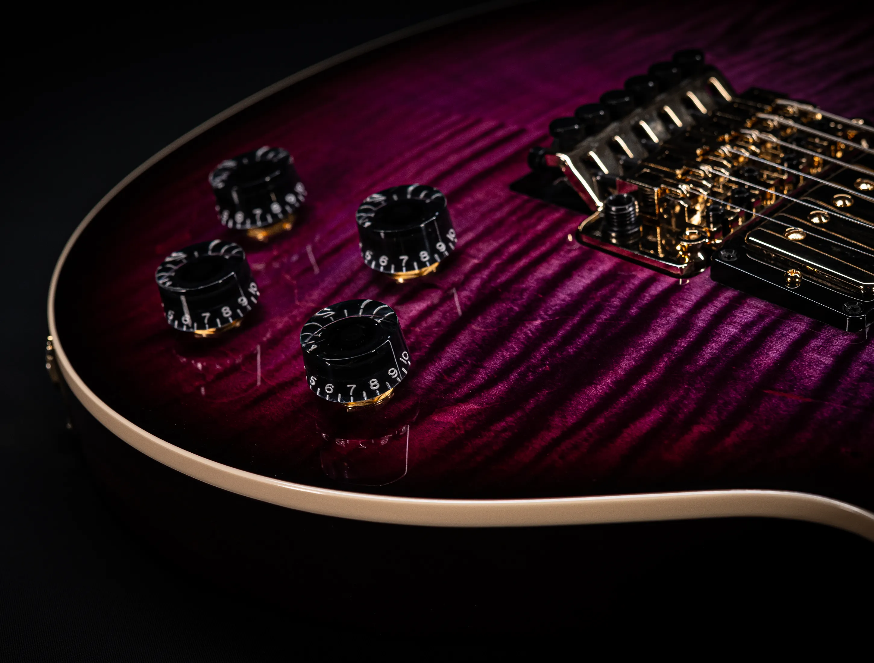 - Decke: 2tlg. selektierte Flame Ahorn Decke, personal Selektion im Custom Shop Werk Nashville