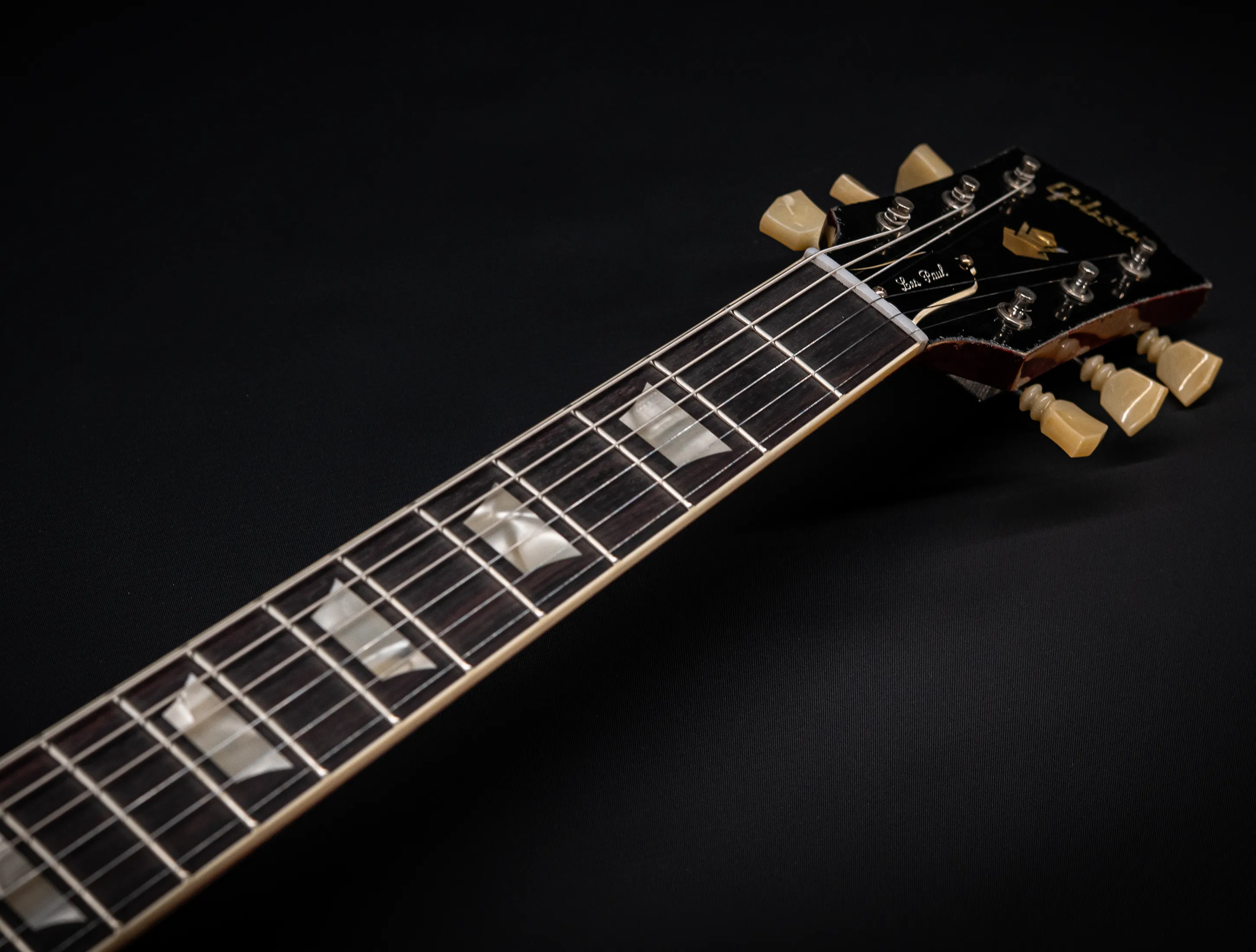 Bereits ohne Verstärker angespielt spürt man sofort den trockenen, holzigen Charakter einer sehr guten, lange gespielten Vintage-Gitarre. Schnelle Ansprache, großartige Resonanz, fantastisches Sustain - knurrige Bässe, drahtige Mitten, strahlende Höhen. Am Verstärker zeigt sich das wahre Potenzial der Gitarre – die Pickups sind alten PAFs nachempfunden und bilden die Komplexität der Originale perfekt ab! Der Halspickup, ist bei cleanen Ampeinstellungen warm, transparent, dreidimensional und in den Bässen nie undifferenziert oder matschig. Mit höheren Gain-Einstellungen am Amp lassen sich alle klassischen Sounds von Jimmy Page, Angus Young, Eric Clapton über Billy Gibbons bis zu Gary Moore abdecken. Der Stegpickup bietet – Fette, knallige Bässe und bissige schrille Höhen. Die Mitten sind je nach Anschlagintensität und Gaineinstellung am Verstärker von zurückhaltend bis plakativ darstellbar! Herauszuheben ist auch die perfekte Balance beider Pickups zueinander, und die Mittelstellung mit beiden Pickups aktiviert bietet je nach Volume- und Toneeinstellungen eine unglaubliche Palette an Soundfarben, ein Instrument mit Charakter und Vokalität! Wow!