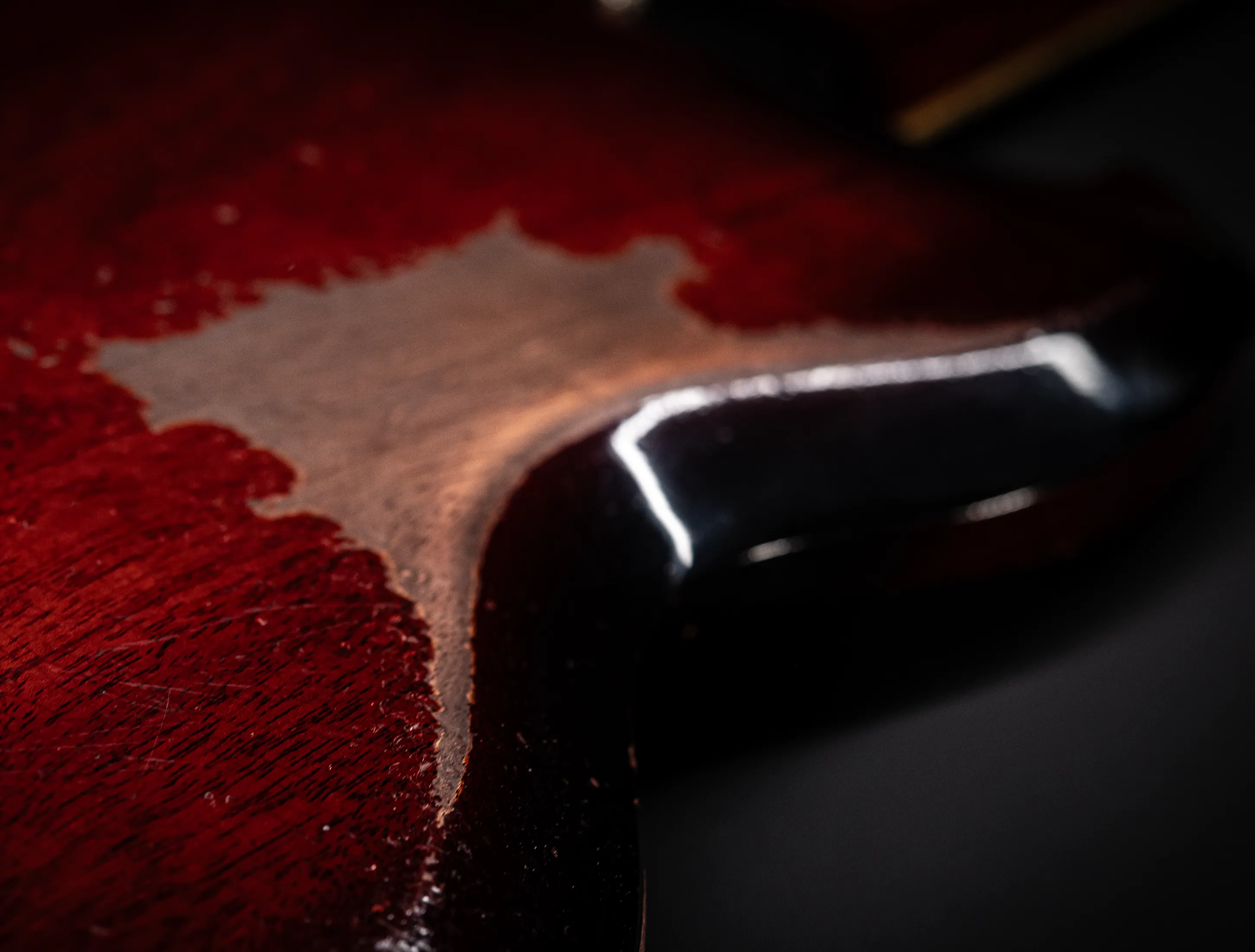 Fühlen Sie die Leidenschaft des Murphy Lab, das künstlerische Flair und die Liebe zum Detail. Es ist schwer in Worte zu fassen, was für eine Anmut dieses Instrument hat. Das LAB Authentic Aging durchdringt quasi jede Pore der Gitarre und die daraus resultierende Optik und Haptik ist unglaublich. Man spürt quasi das Mojo der Gitarre. Denn der verwendete Lack ist eine Entwicklung von Tom Murphy persönlich, nach jahrelangem Suchen nach der perfekten Rezeptur einer authentischen Gitarre "wie damals" ist es Tom Murphy gelungen, diese DNA zu "entschlüssel". Mehr Freiheit zum Atmen, ultra dünn und schlichtweg authentisch. Bereits trocken anspielt merkt man die Resonanz, das Sustain und das Schwingen des ganzen Körpers