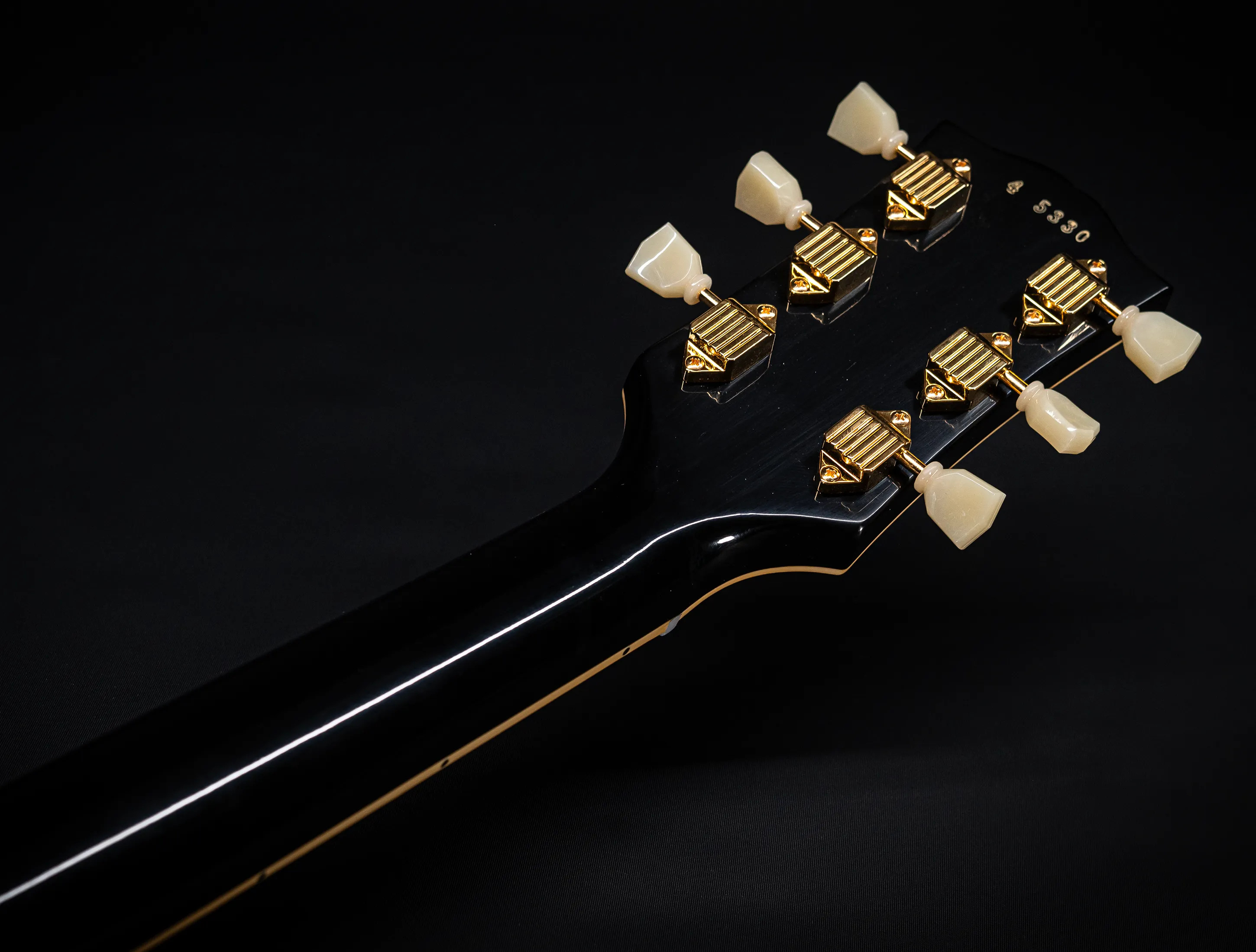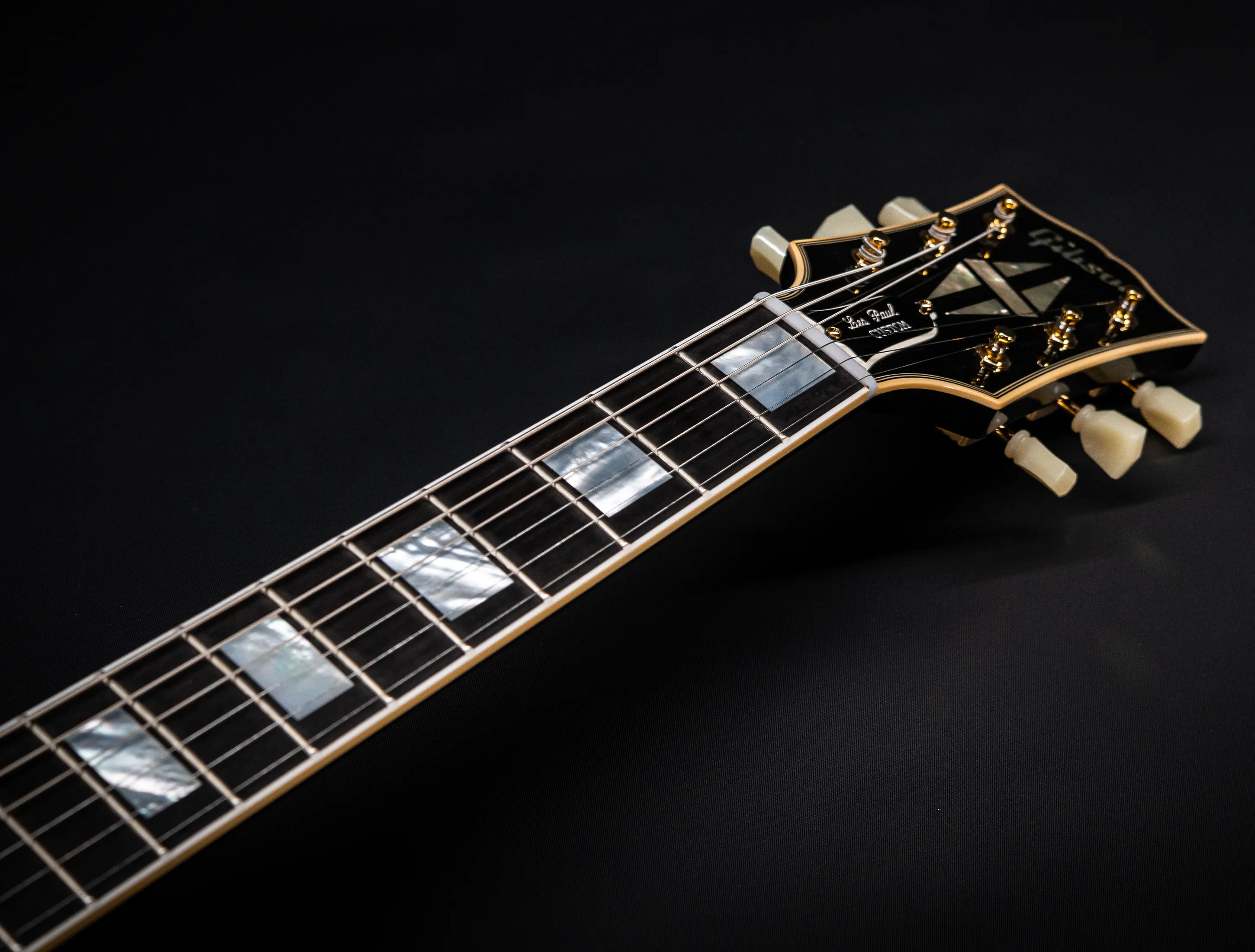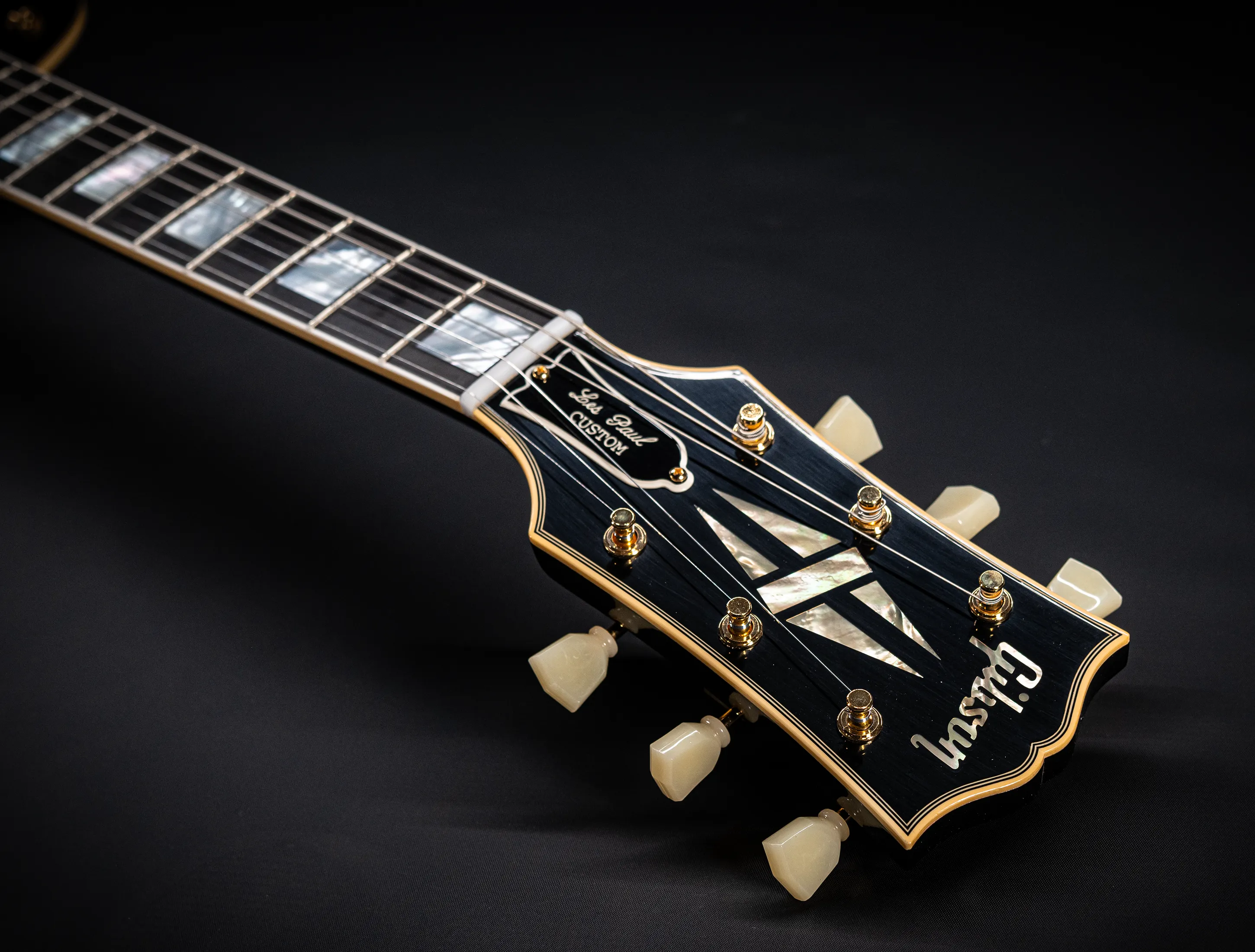 - Halsstababdeckung: schwarz/weisse Gibson Historic Glocke mit "Les Paul Custom" Aufdruck