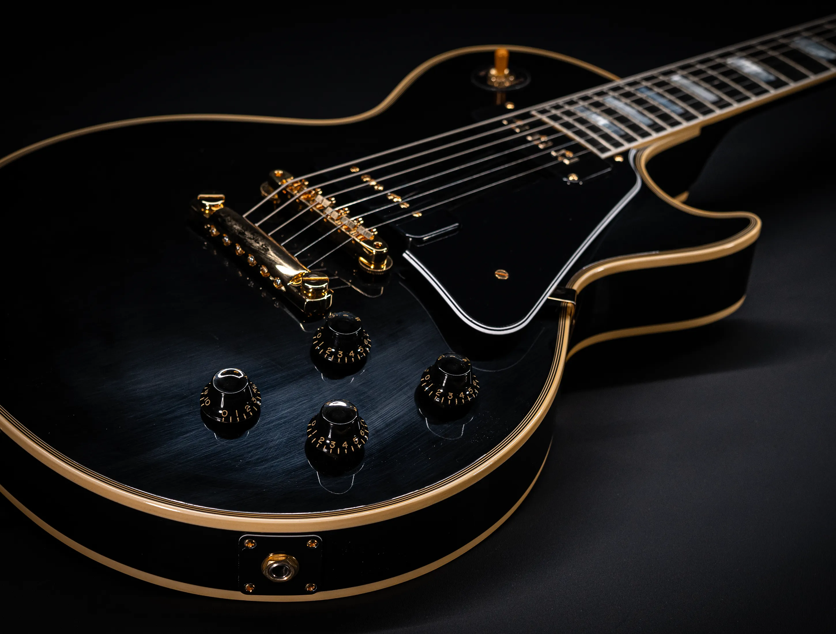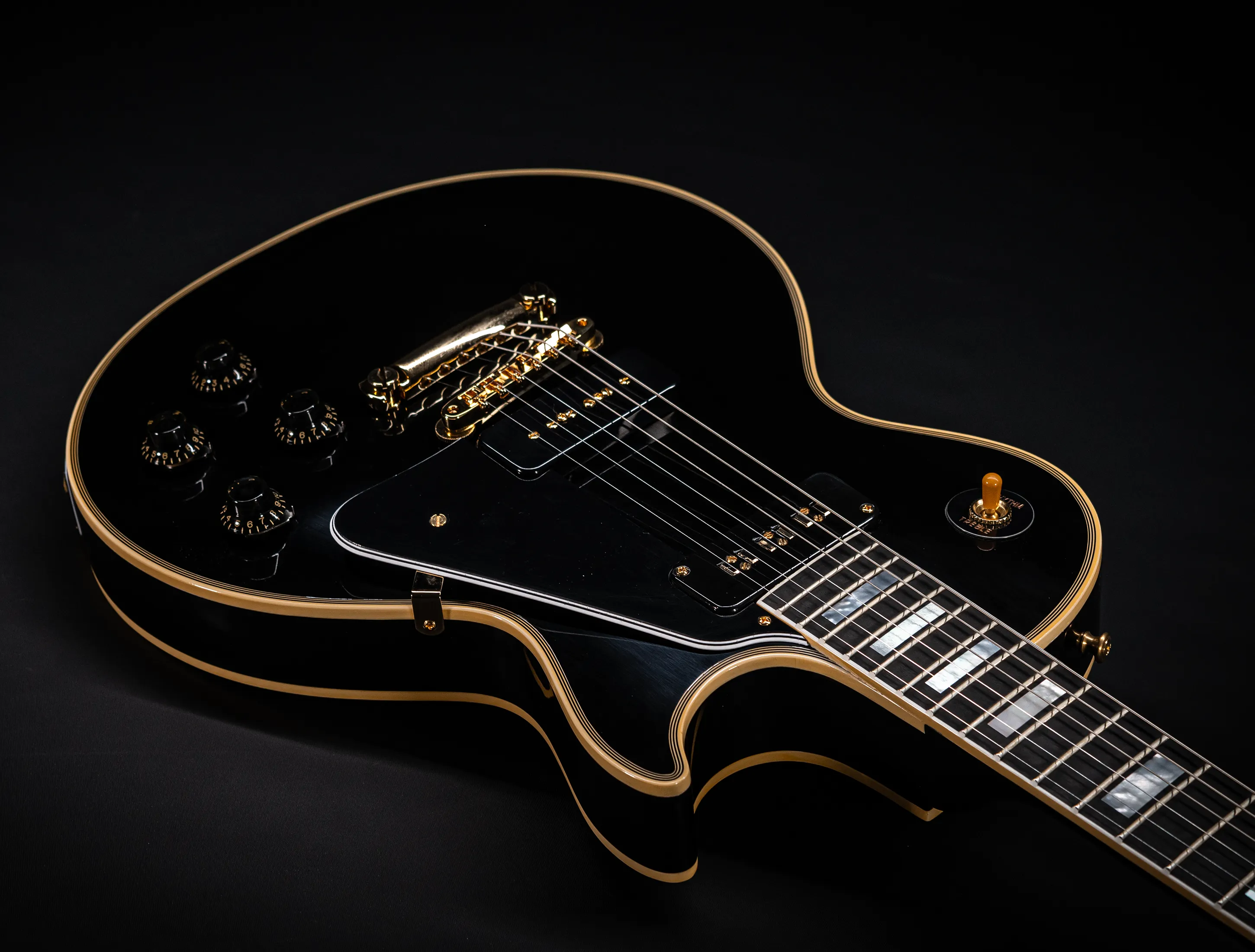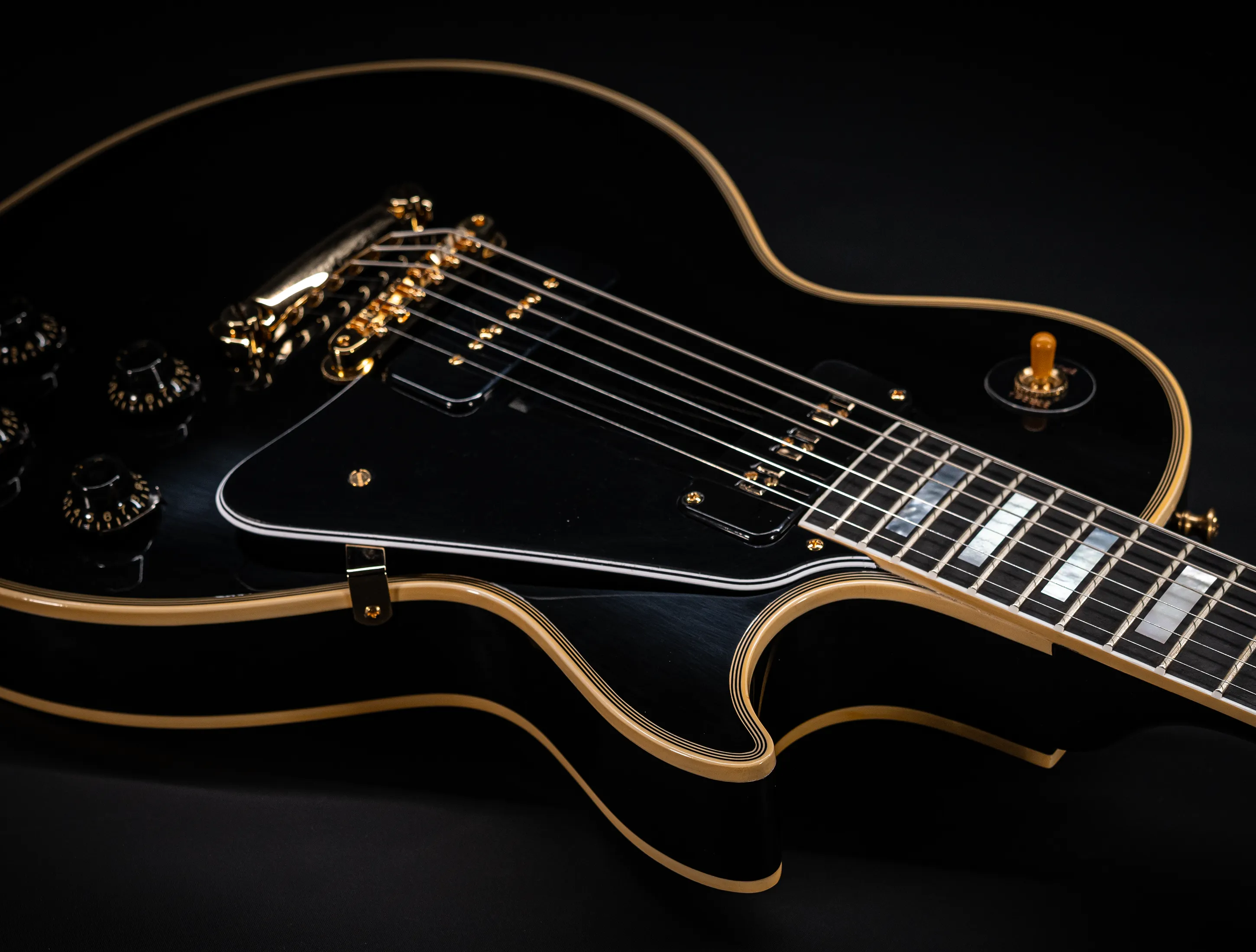 - Halsstababdeckung: schwarz/weisse Gibson Historic Glocke mit "Les Paul Custom" Aufdruck