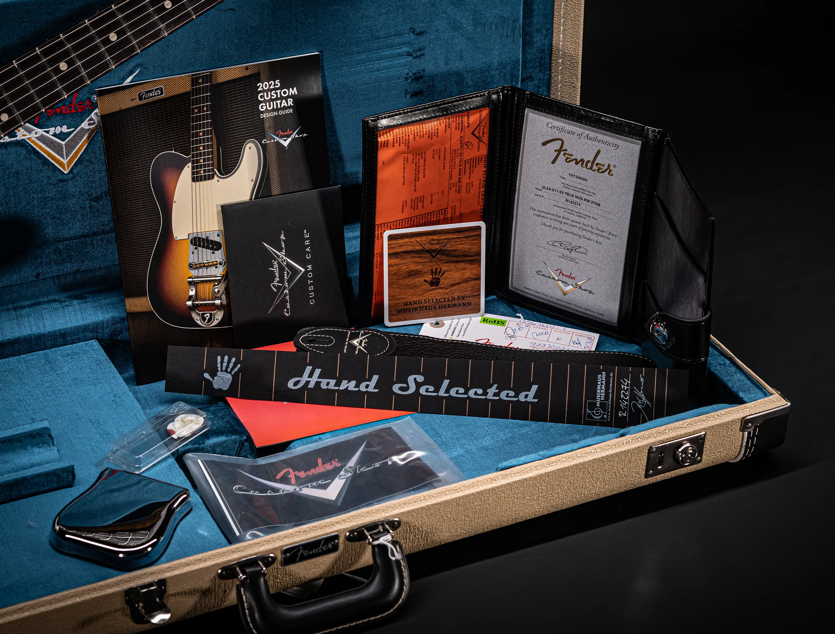 - Zubehör-Kit (Custom-Shop Gitarrengurt, Brückenabdeckung "Ashtray", Pflegehinweise)