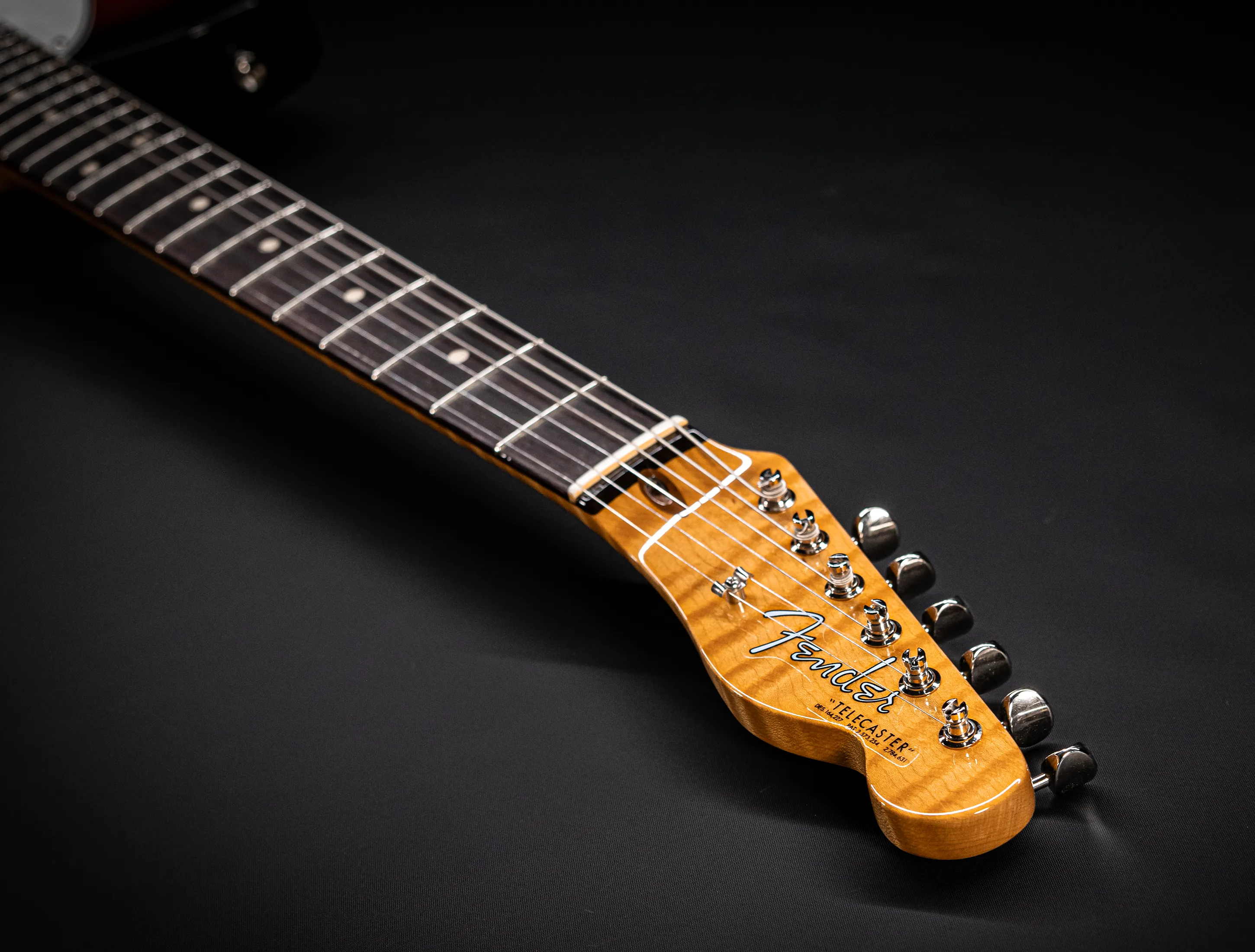 Das "glänzende" Highlight aus unserer Zusammenarbeit mit unseren Freunden vom Fender Custom Shop ist die MBD Edition 63er Timeless NOS flame Neck Tele. Eine exklusive, limitierte Auflage für unser Musikhaus welche als Team-Built Modell hergestellt wird, jedoch komplett bei unserem Besuch im Fender Custom Shop in Zusammenarbeit mit Senior Masterbuilder Dale Wilson und Jörg Hermann entwickelt wurde.