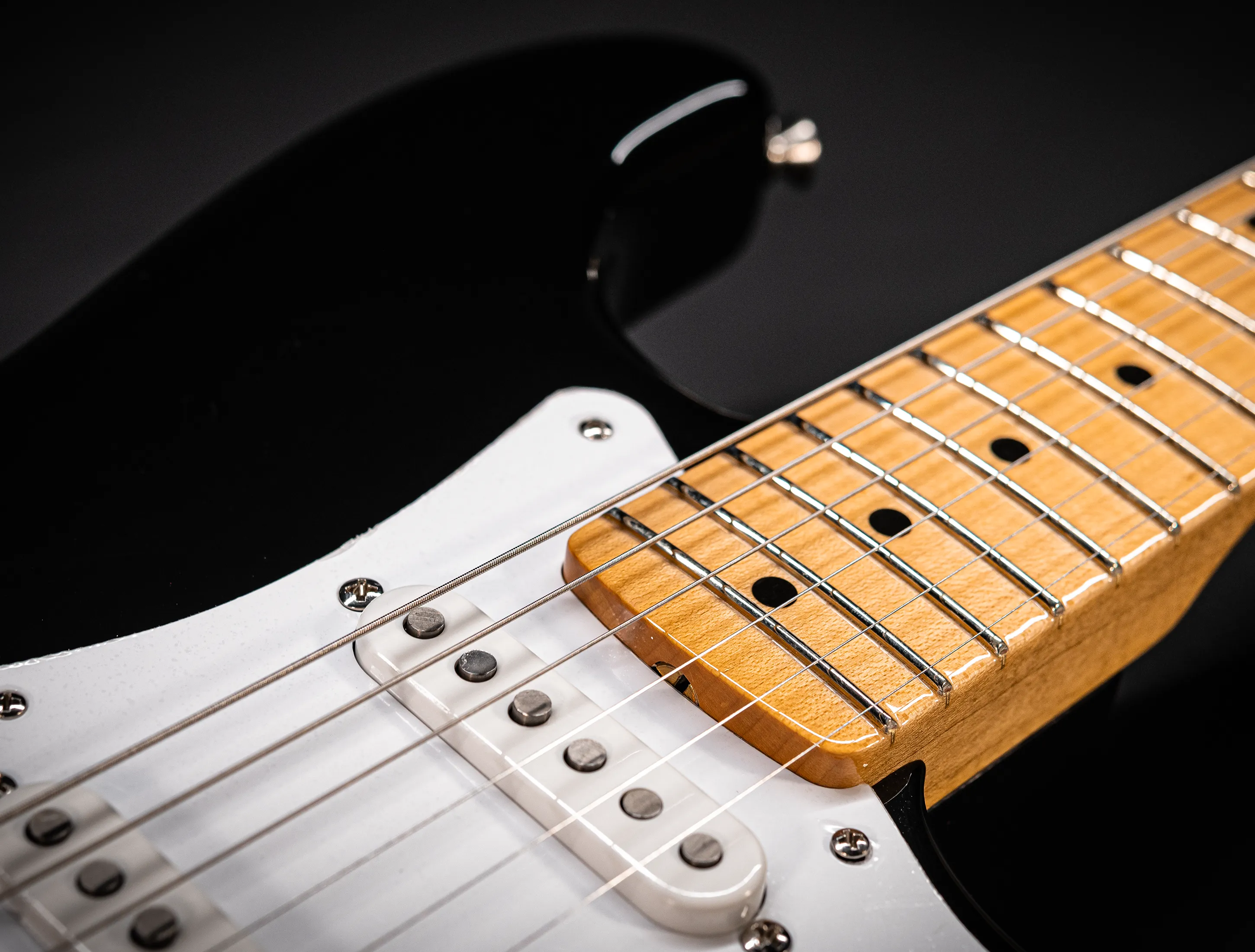 Sein einteiliger Hals aus Ahorn ist mit einem 60`s Ovale C Shape versehen. Drei handgewickelte ’54 Strat-Tonabnehmer aus dem Custom Shop liefern den klassischen Strat-Sound mit klaren, glockenartigen Höhen, geführt durch Vintage-’54 Strat-Verkabelung mit Wachspapierkappe und Fünfwegeschalter.