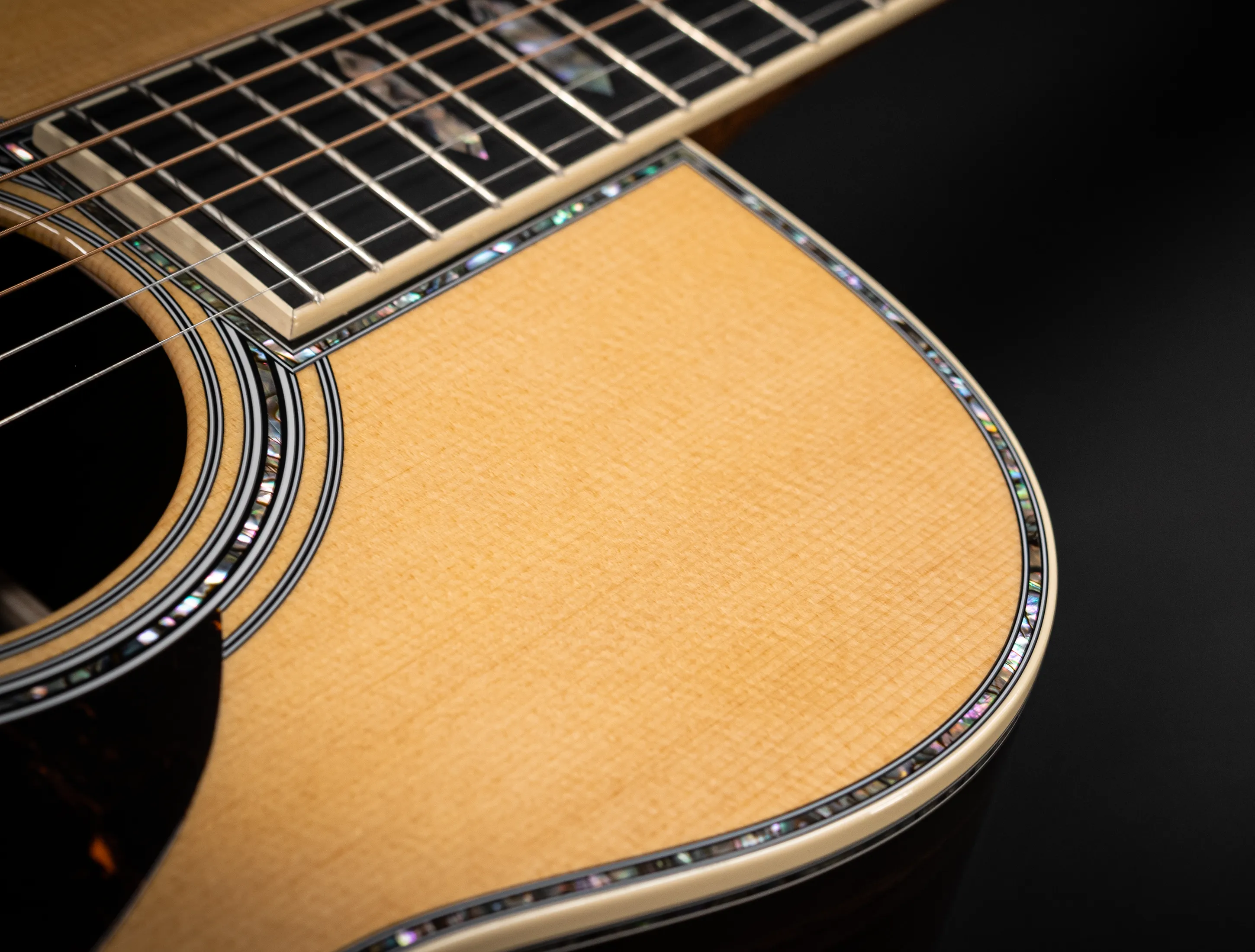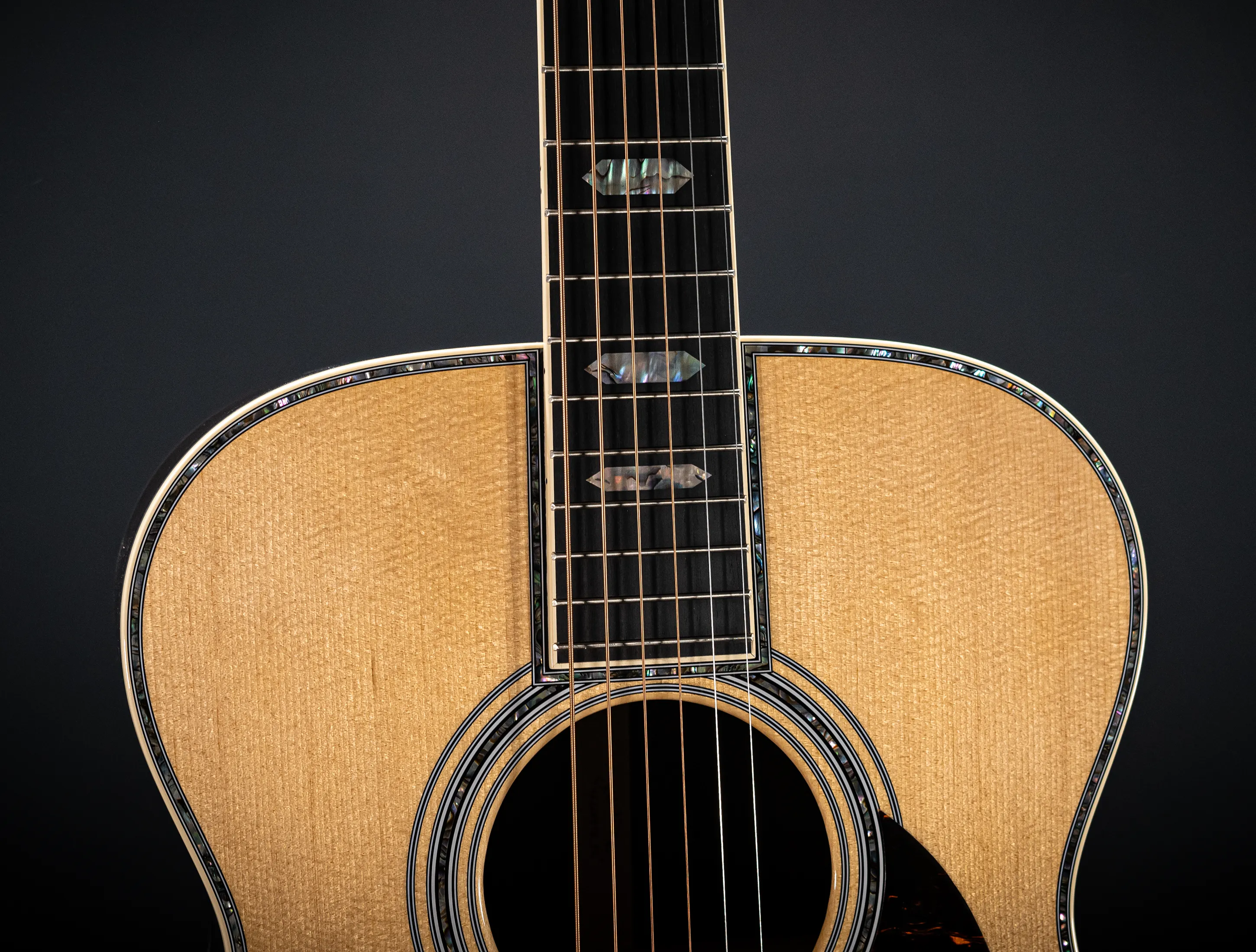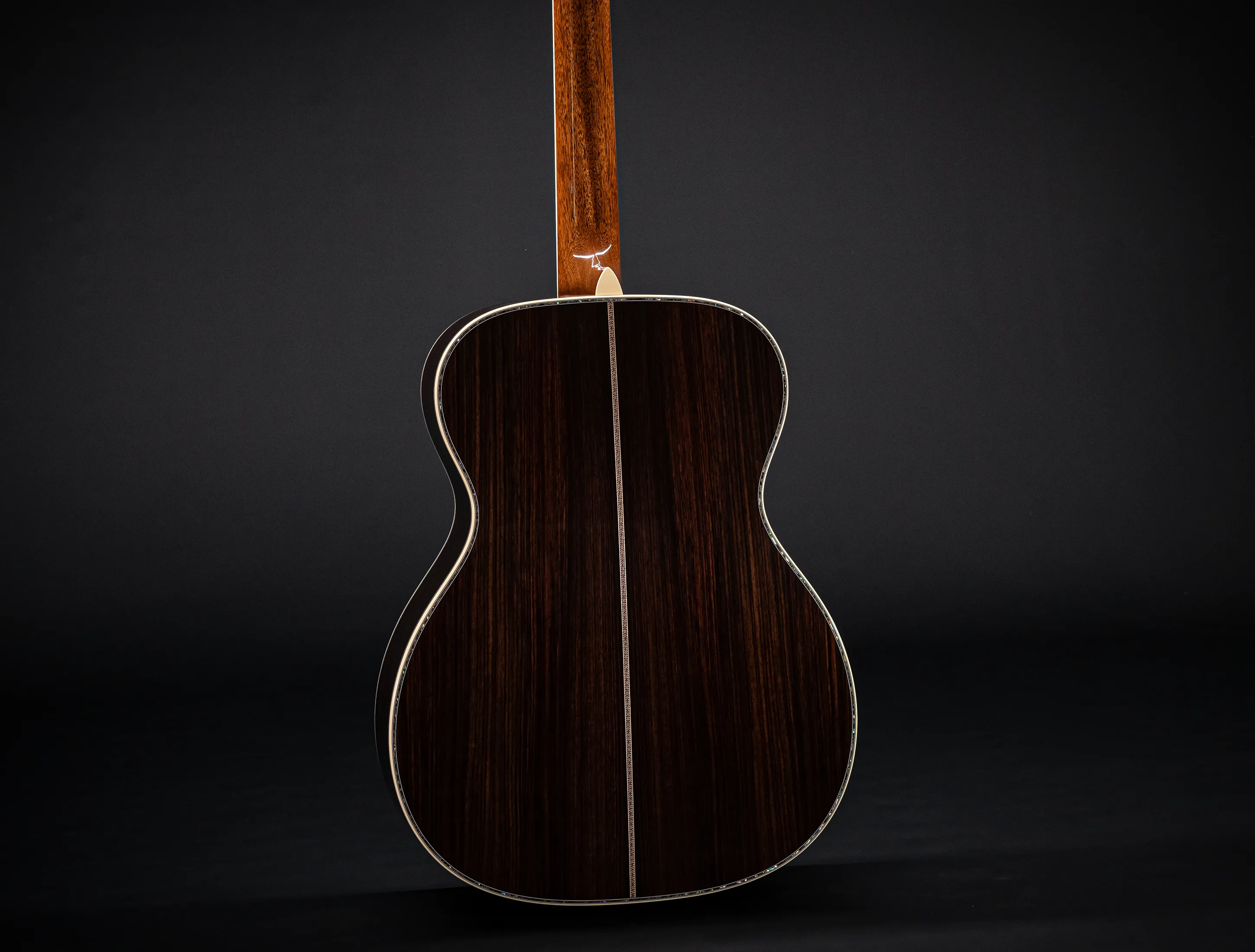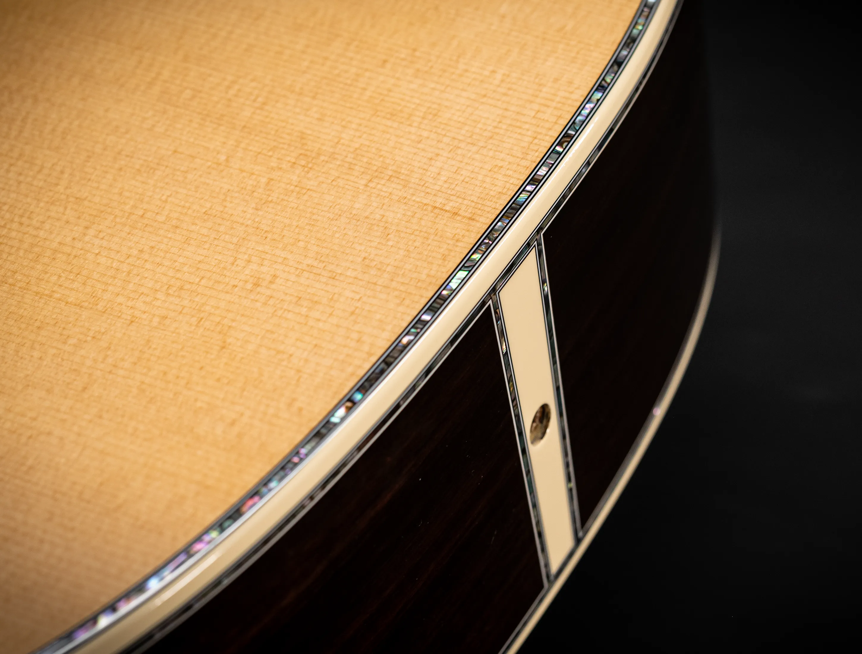 Nicht nur alleine das Tonholz ist hier eine Besonderheit. Bei diesem Meisterstück sind alle Komponenten aufeinander in perfekter Harmonie abgestimmt. Die Perlmutt-Details, die Einlagen, die Mechaniken und natürlich letztendlich auch das Finish überzeugt in allen Belangen. Klanglich einmal angespielt eröffnen sich hier ganz neue Welten: Eine Dynamik, eine Ausgeprägtheit der allerfeinsten Güte - ein Schmaus für die Ohren.