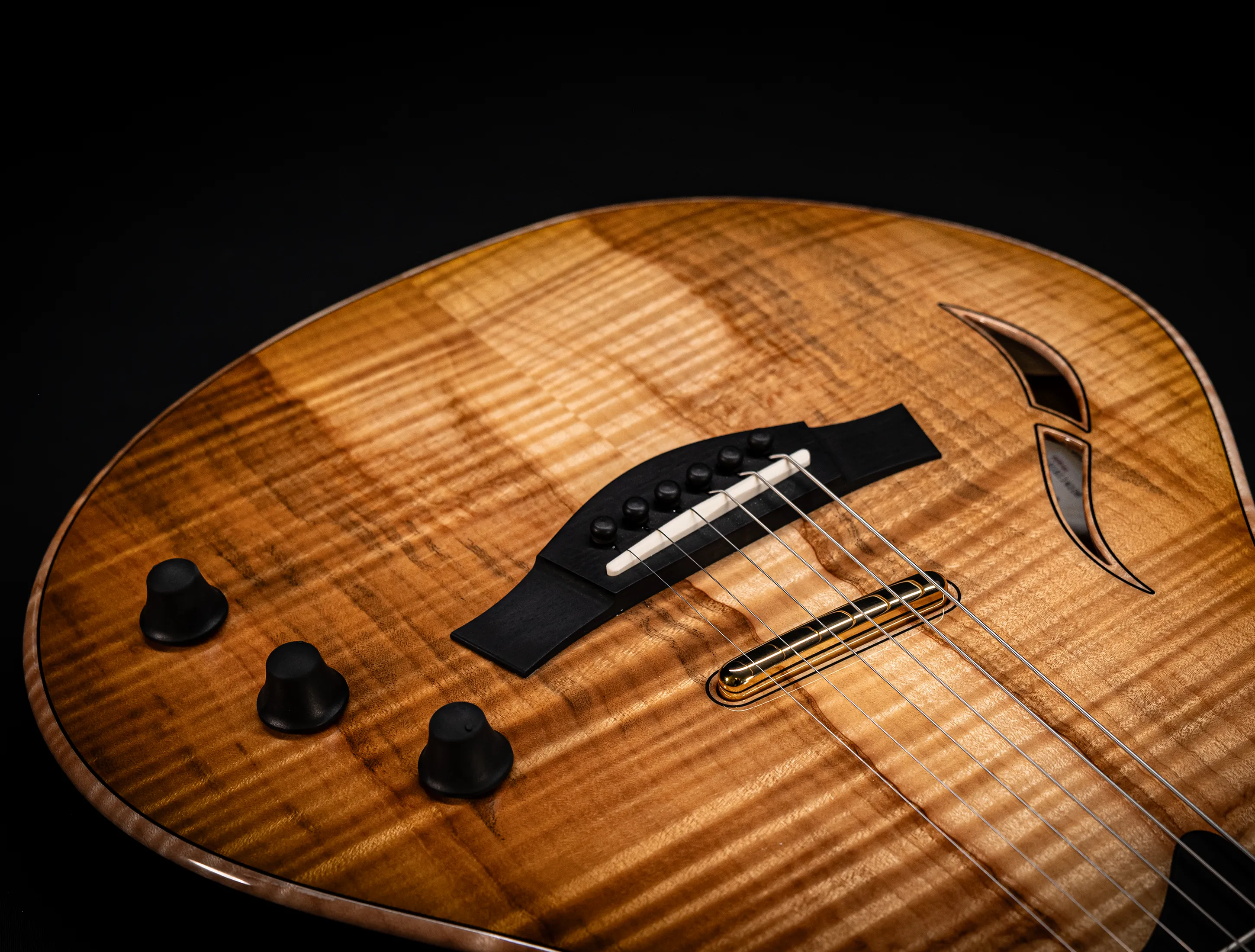 Die in dem Farbton Antique Blonde lackierte AAAA-Grade Big-Leaf Ahorndecke mit Kernholz an den Seiten hat solch eine wertige Anmutung, die kaum im Worten zu fassen ist. Lassen Sie sich von dieser Gitarre selbst begeistert!