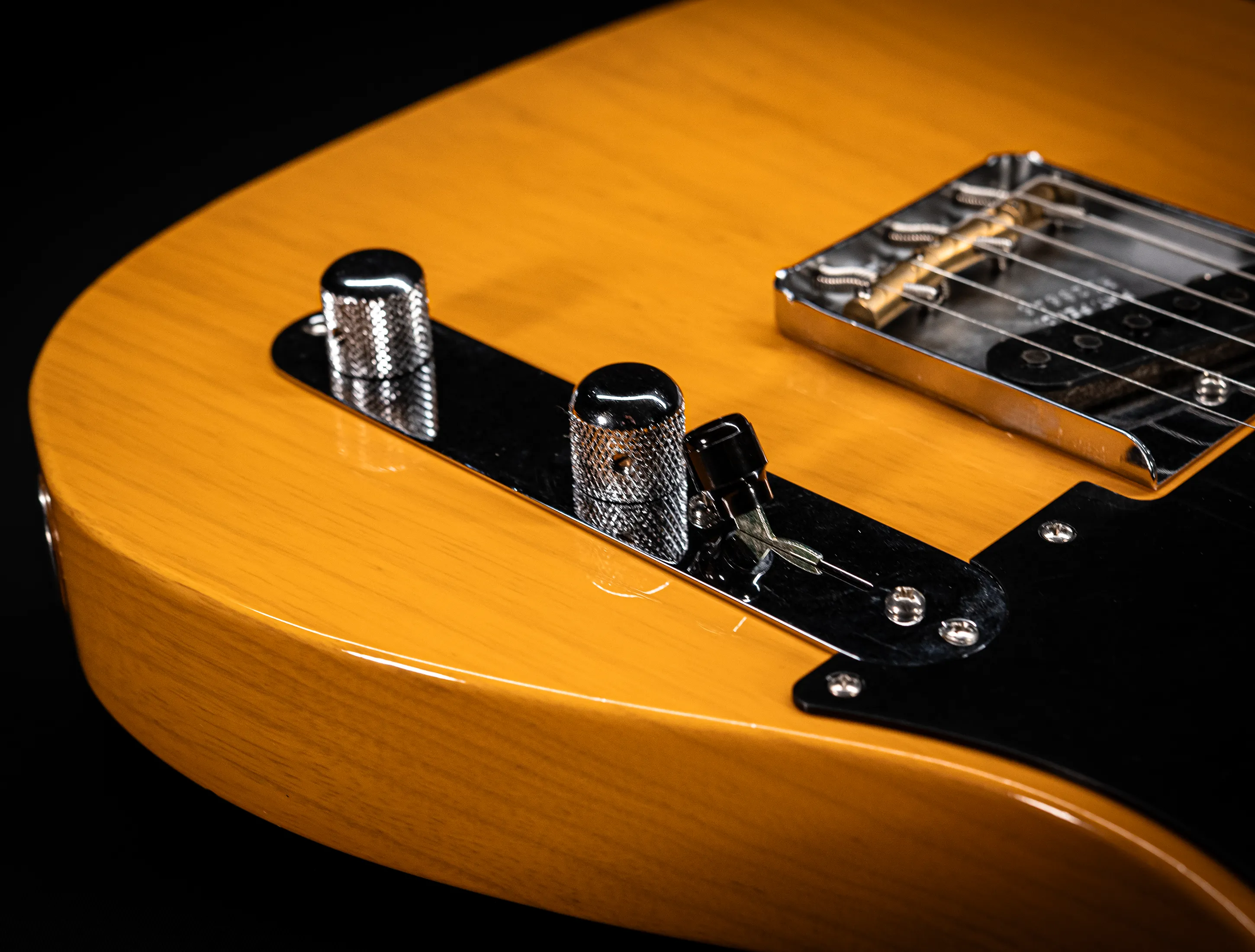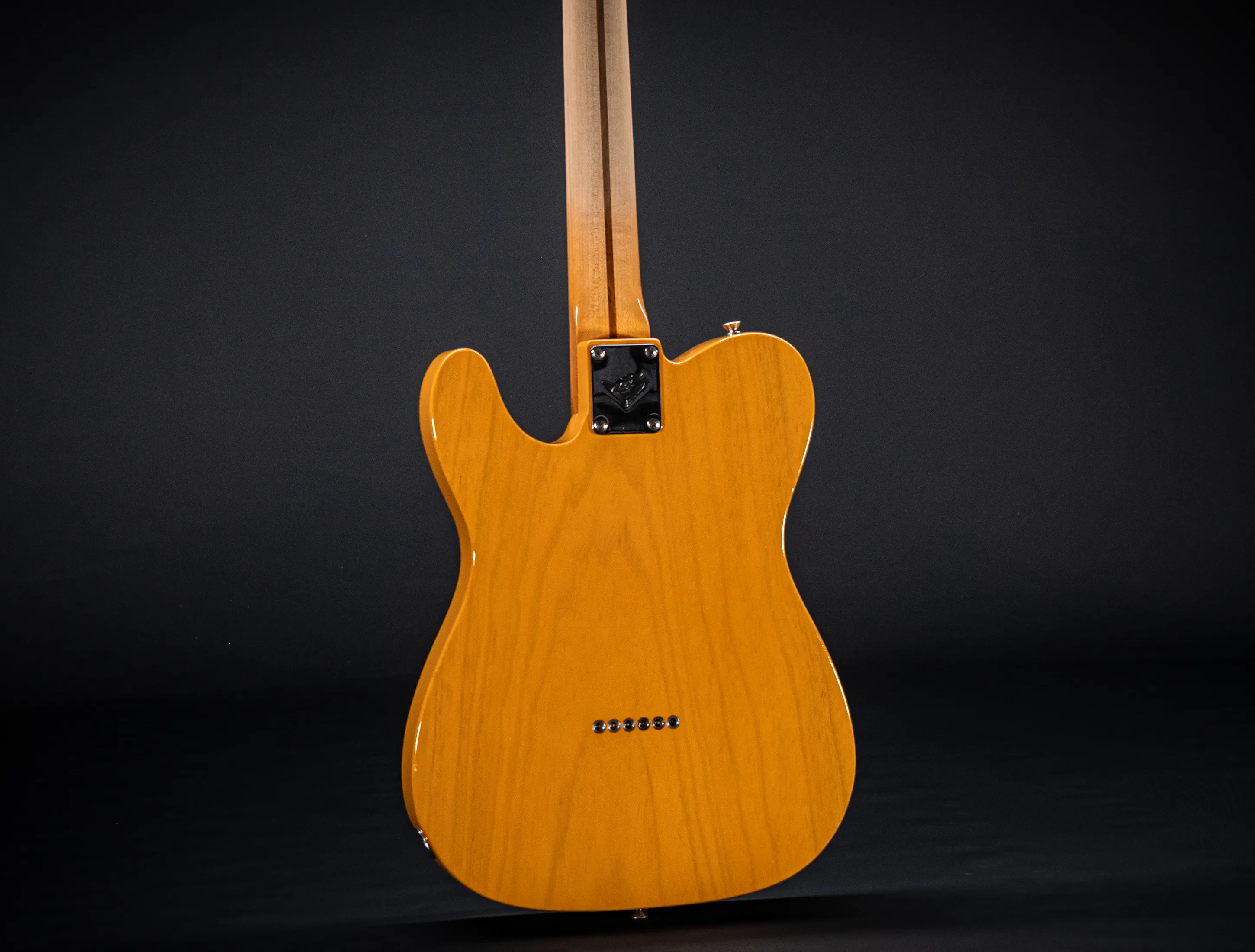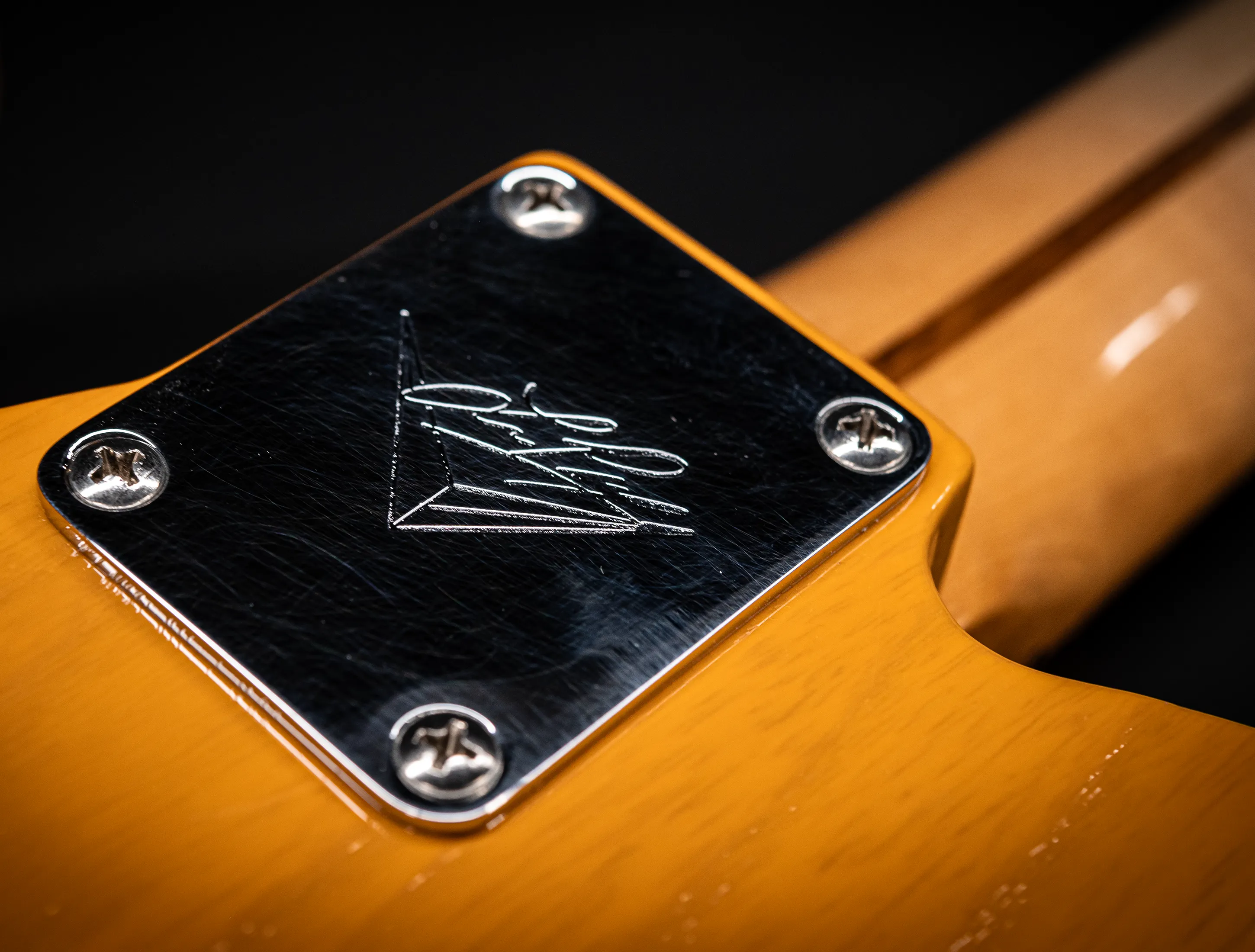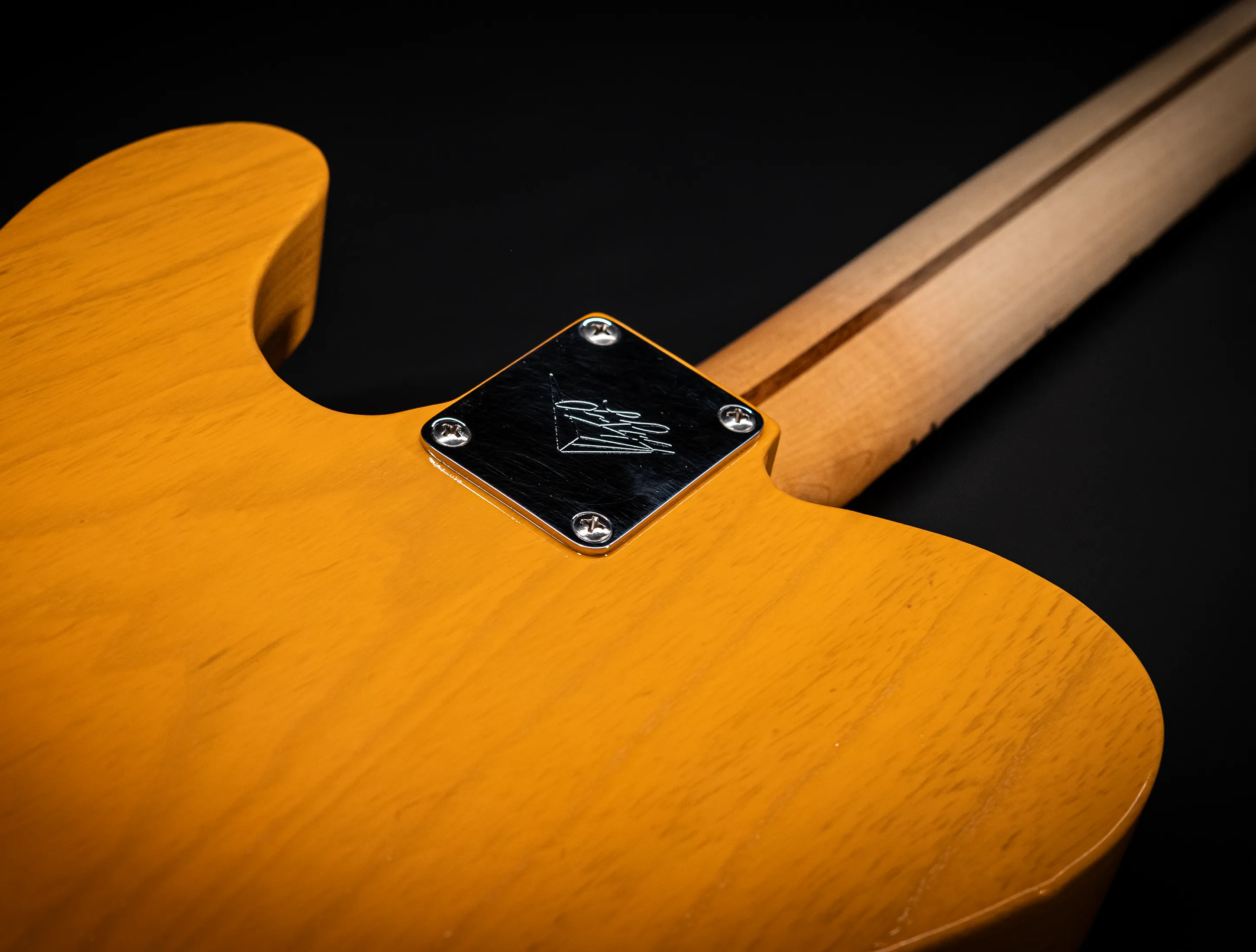 Jörg Hermann hat mit Levi Perry und dem Fender Custom Shop diese besondere Version einer 52er Tele entworfen. Der Gedanke war hier, dass wir optisch ein absolut zeitloses und legendäres "Gewand" haben - die Aged Butterscotch Lackierung als Blackguard - und dies mit dem besten Equipment für die "Inneren Werte" zu vereinen.