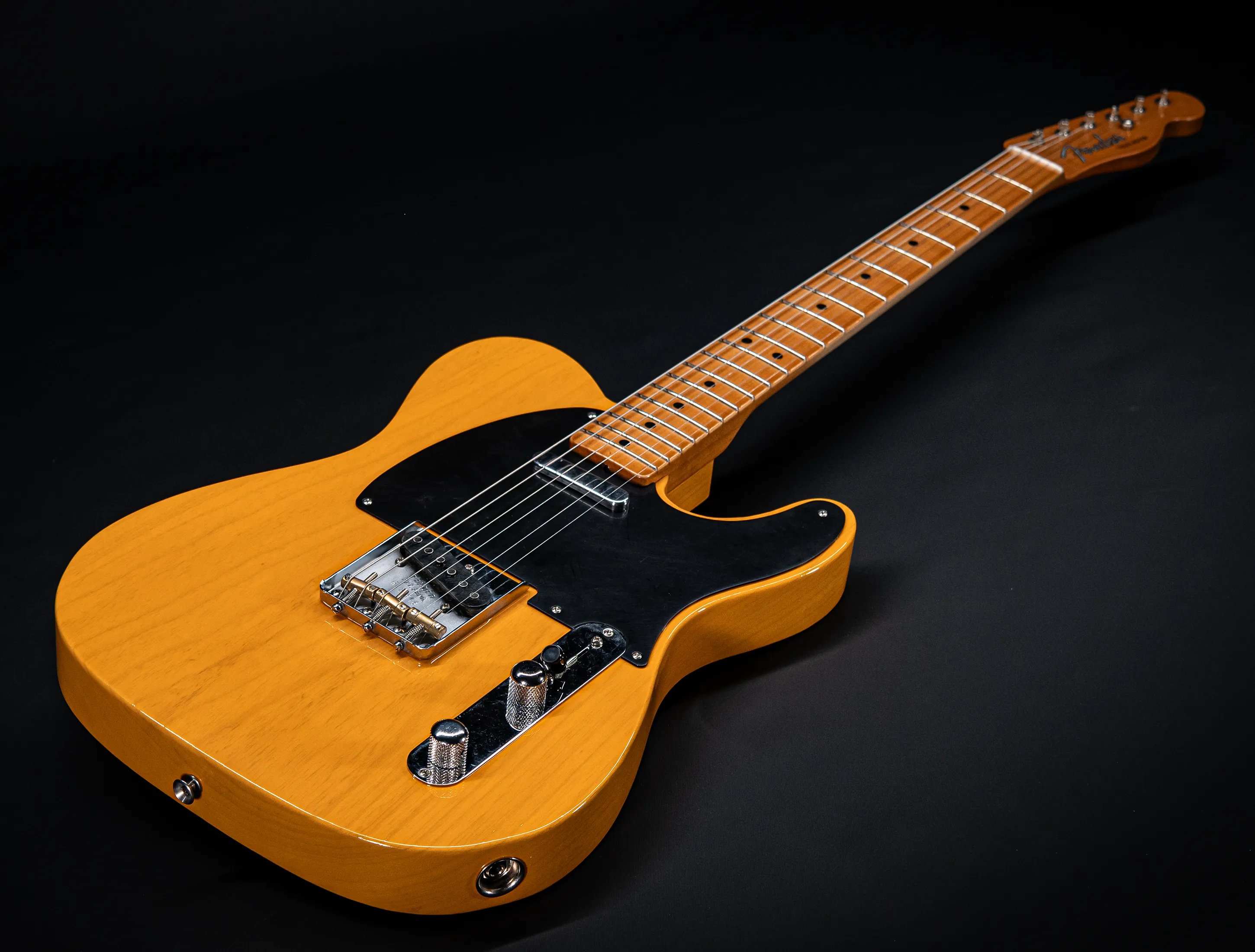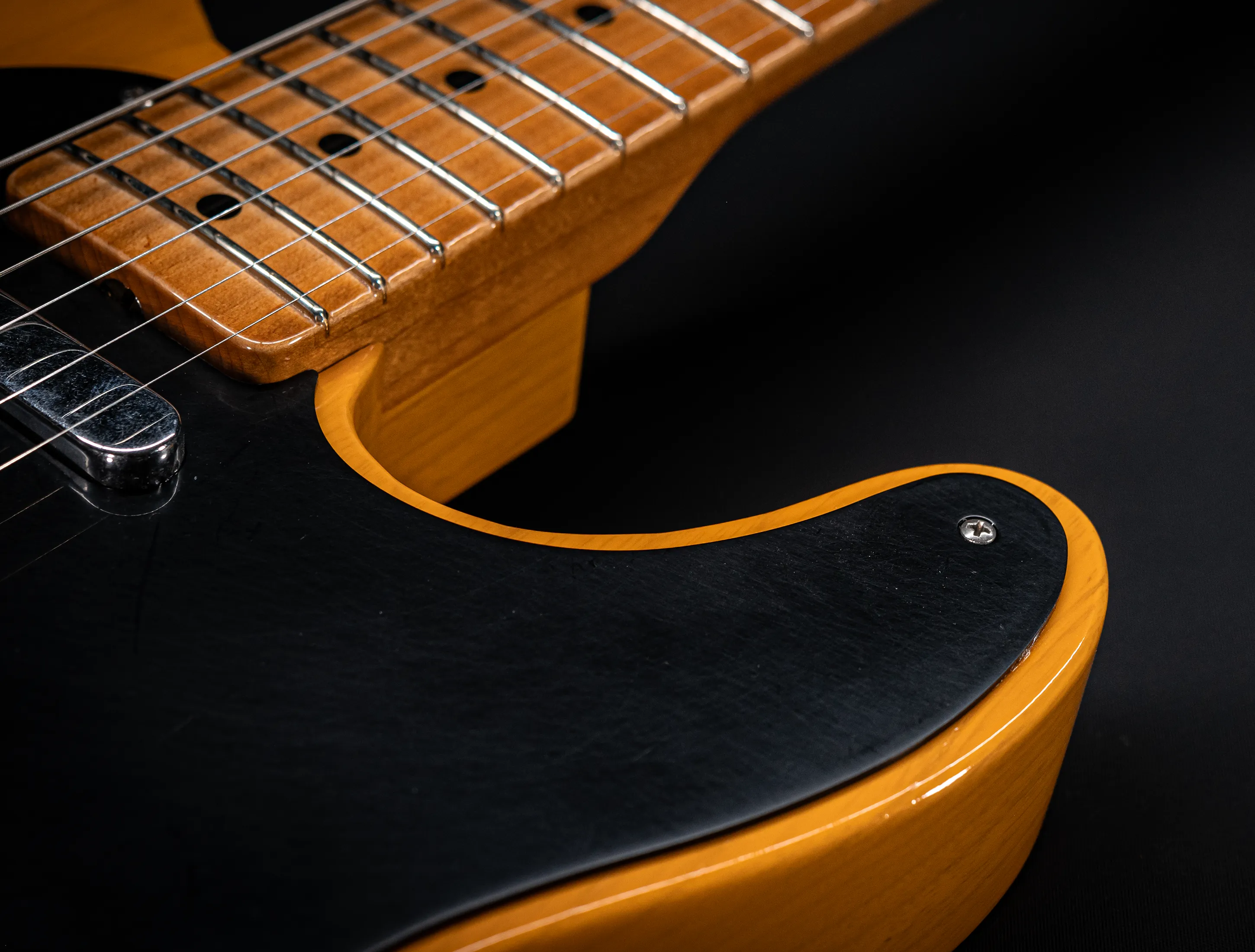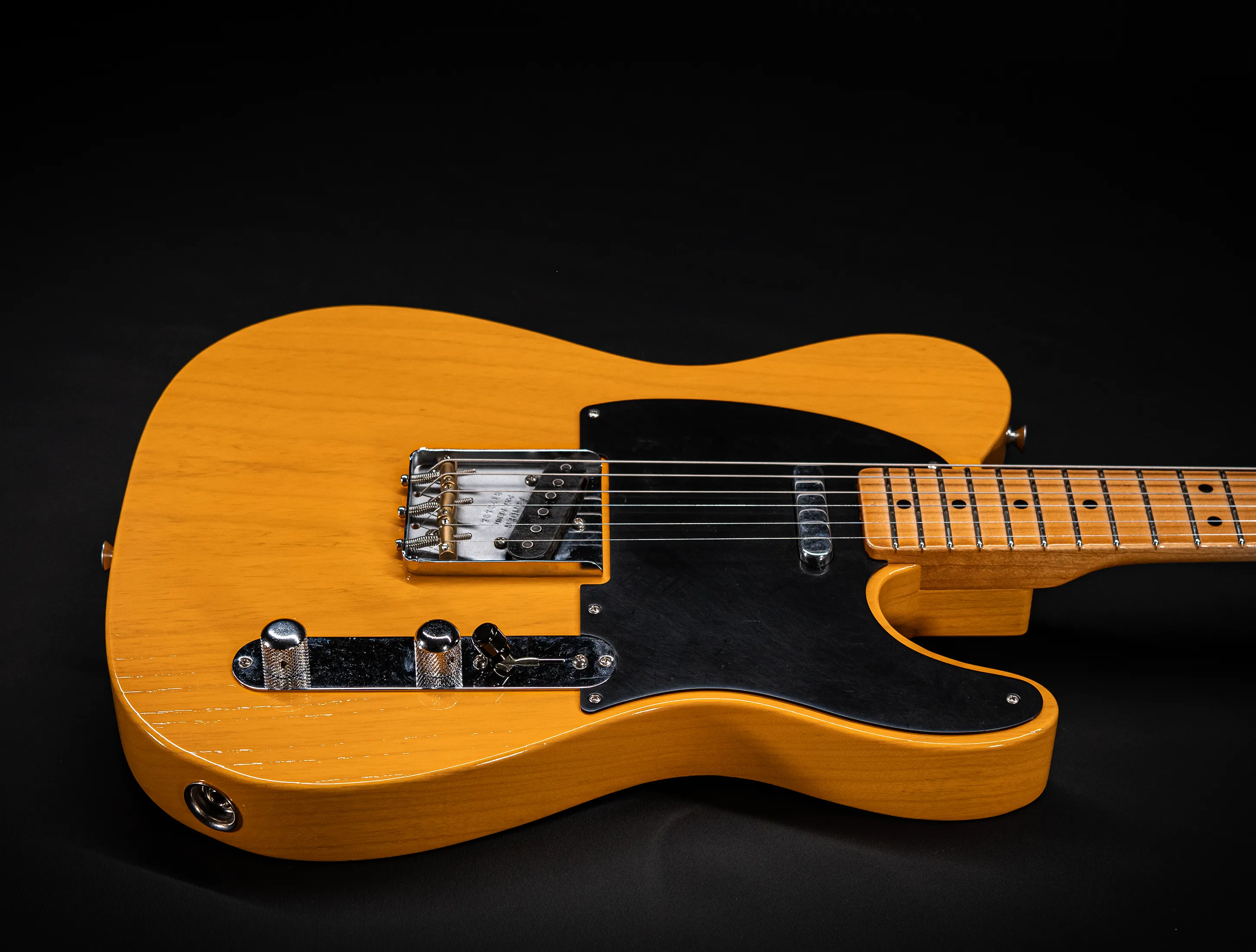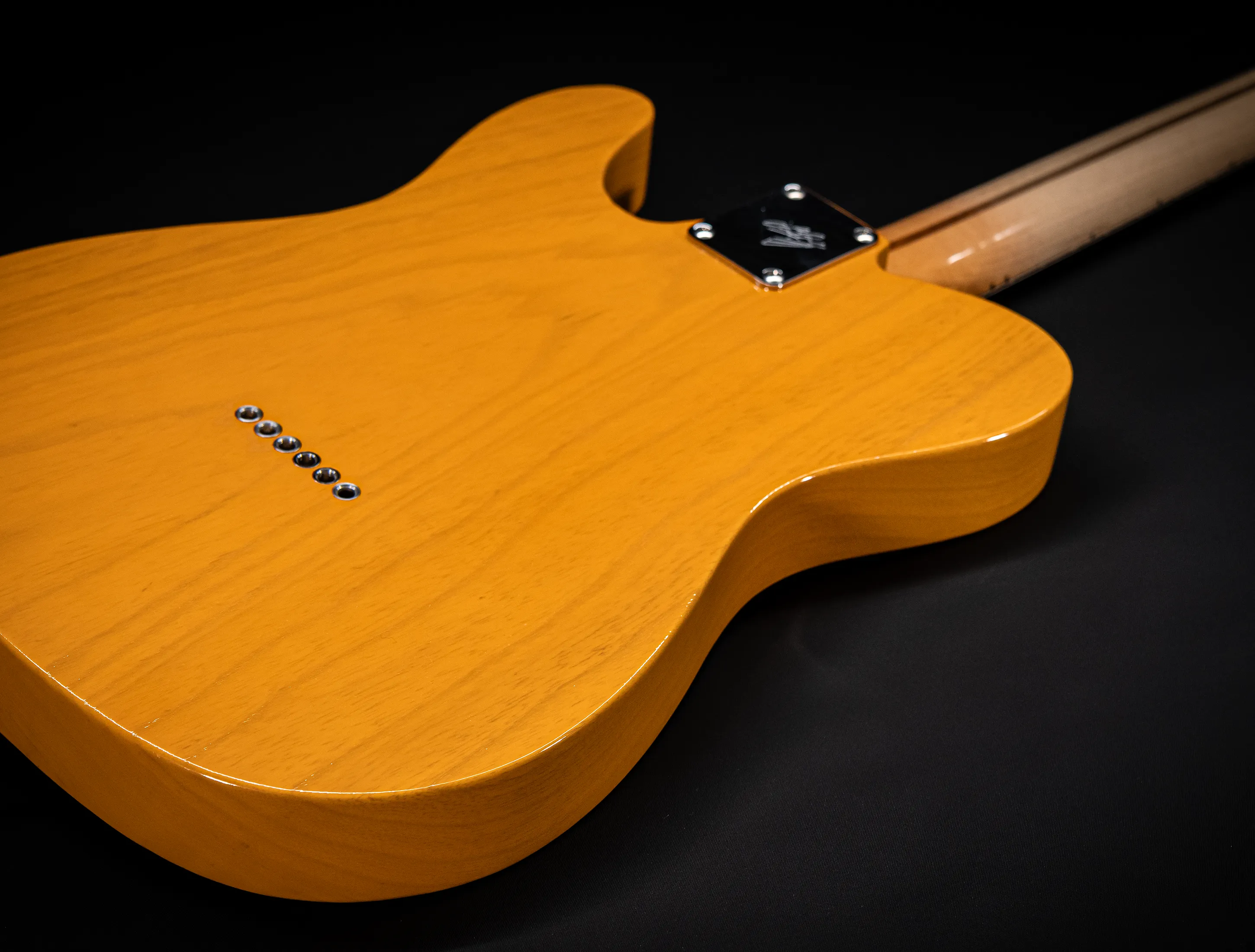 Jörg Hermann hat mit Levi Perry und dem Fender Custom Shop diese besondere Version einer 52er Tele entworfen. Der Gedanke war hier, dass wir optisch ein absolut zeitloses und legendäres "Gewand" haben - die Aged Butterscotch Lackierung als Blackguard - und dies mit dem besten Equipment für die "Inneren Werte" zu vereinen.