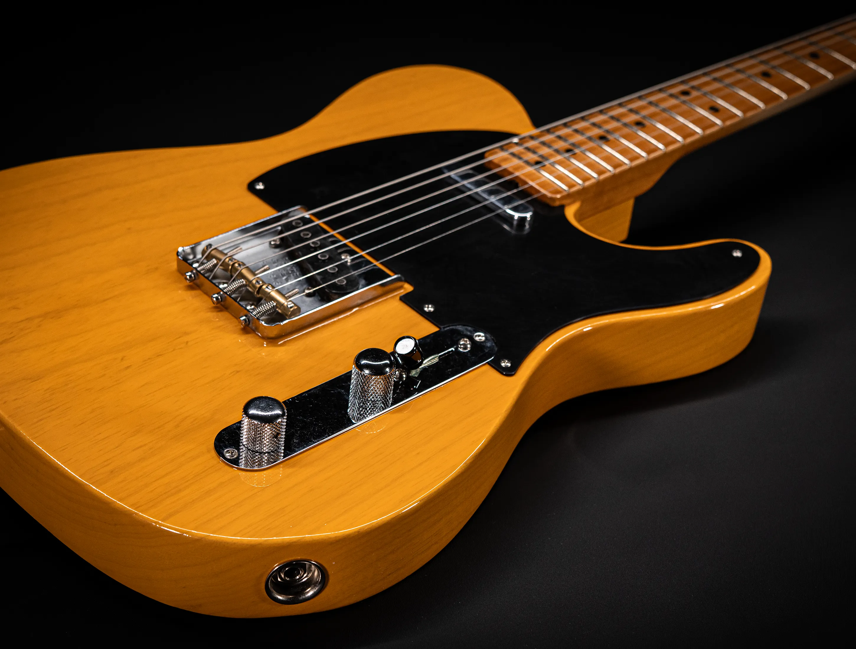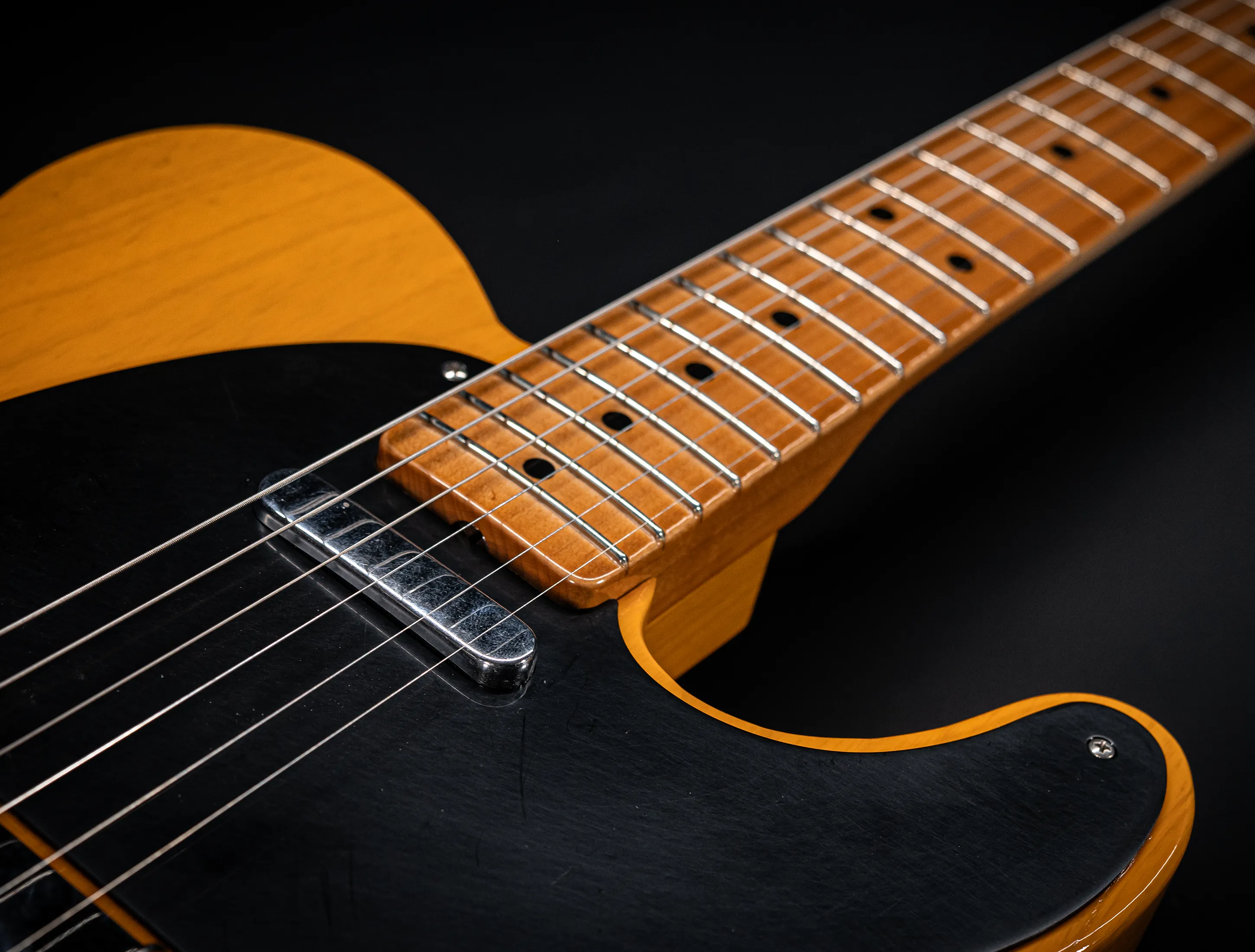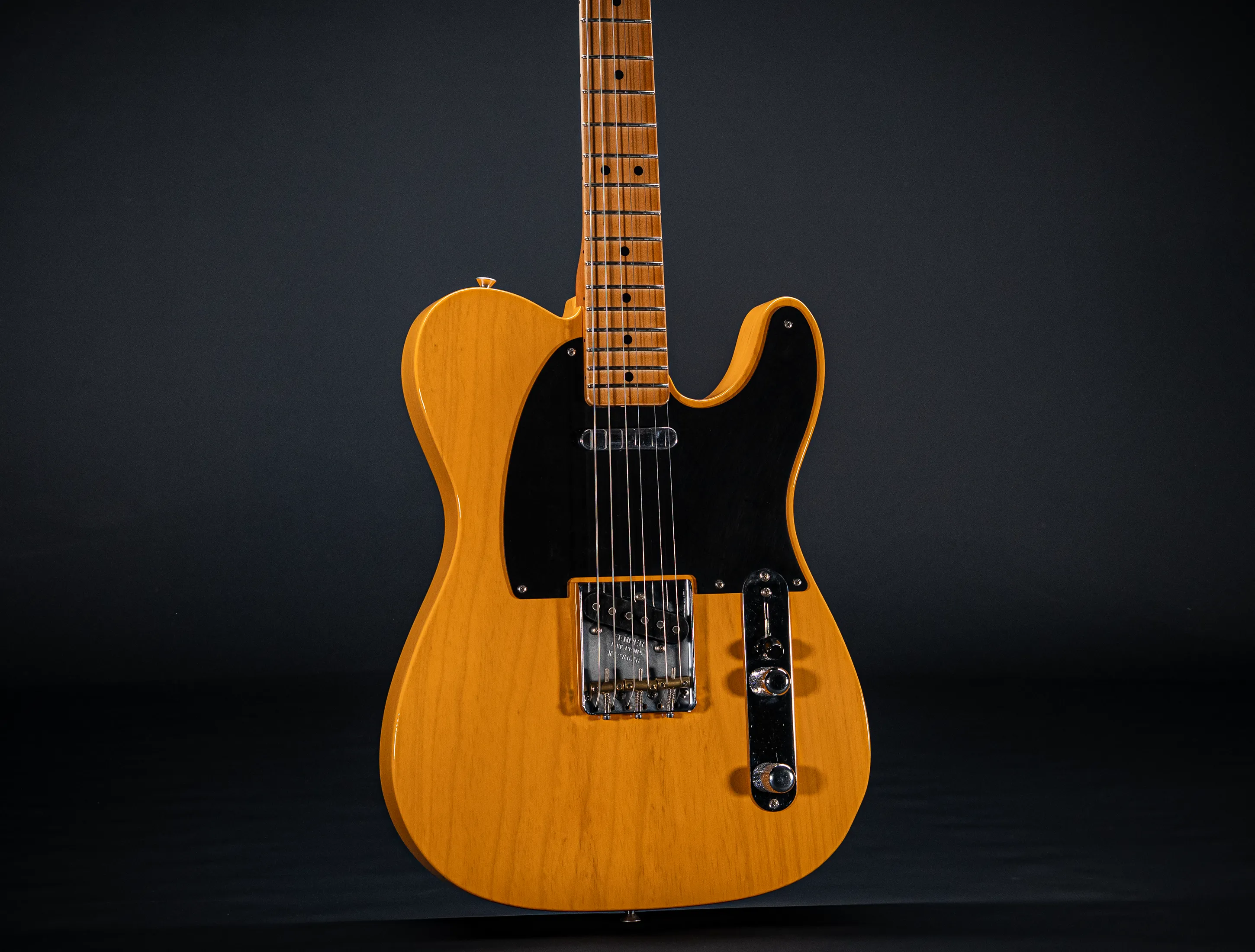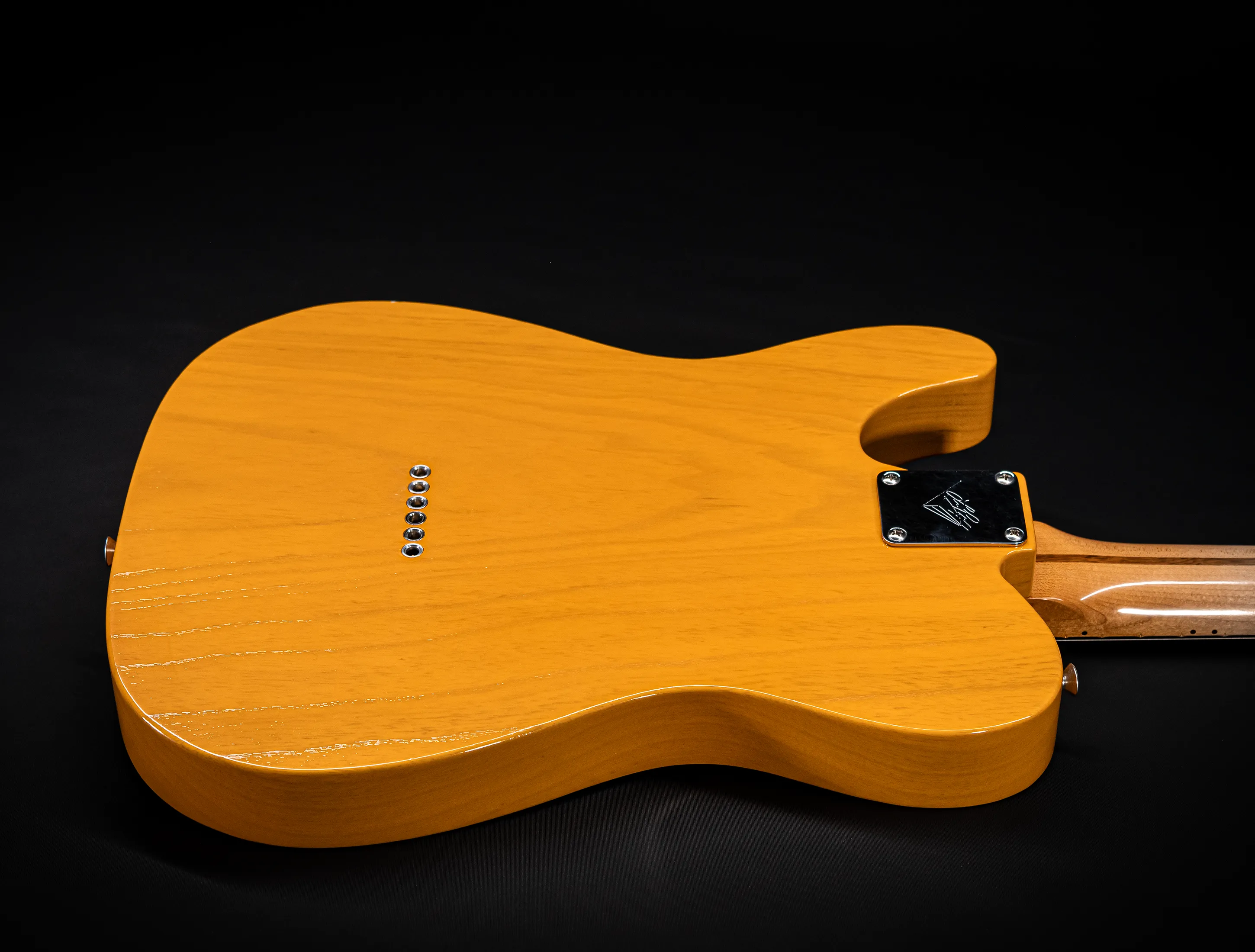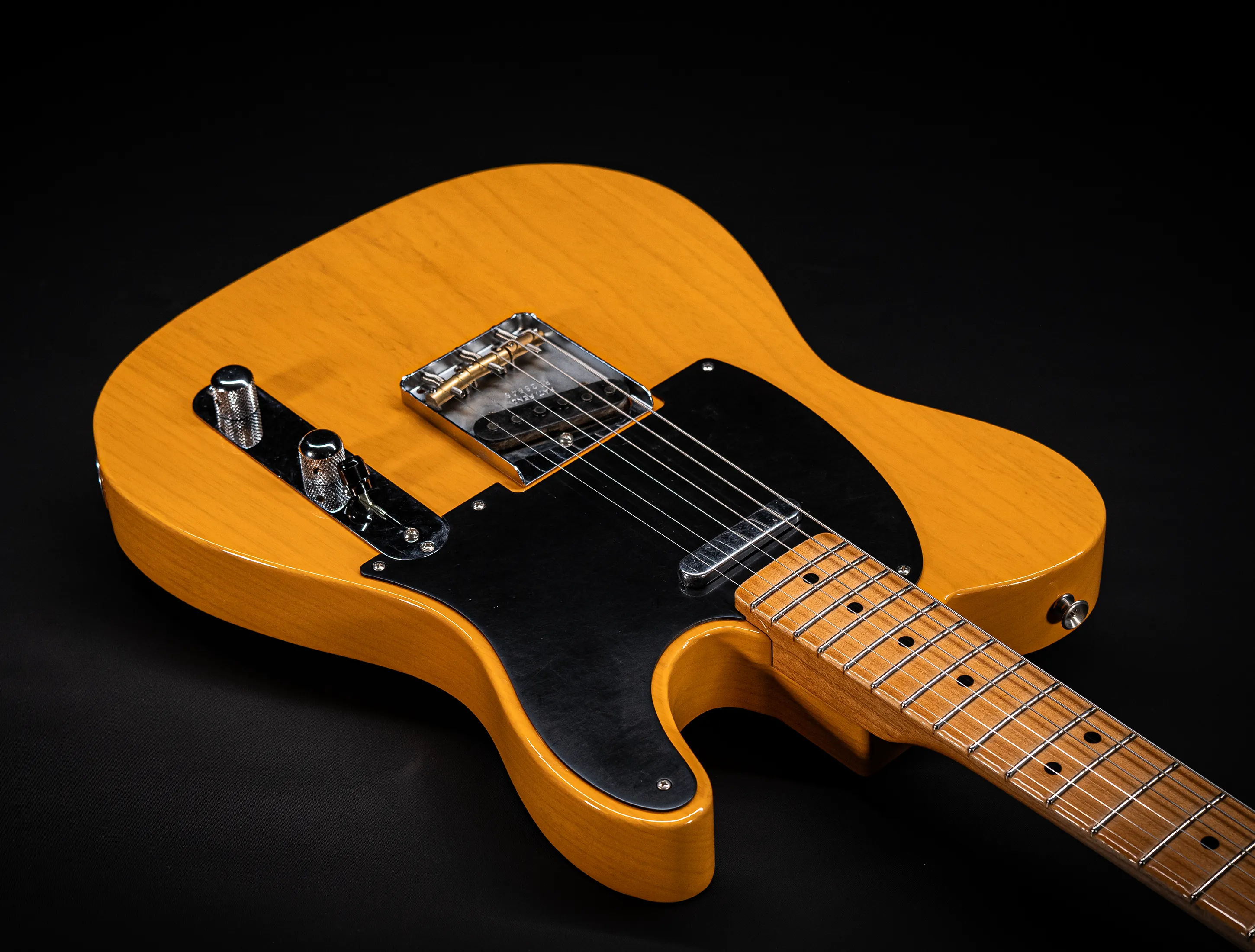 Jörg Hermann hat mit Levi Perry und dem Fender Custom Shop diese besondere Version einer 52er Tele entworfen. Der Gedanke war hier, dass wir optisch ein absolut zeitloses und legendäres "Gewand" haben - die Aged Butterscotch Lackierung als Blackguard - und dies mit dem besten Equipment für die "Inneren Werte" zu vereinen.