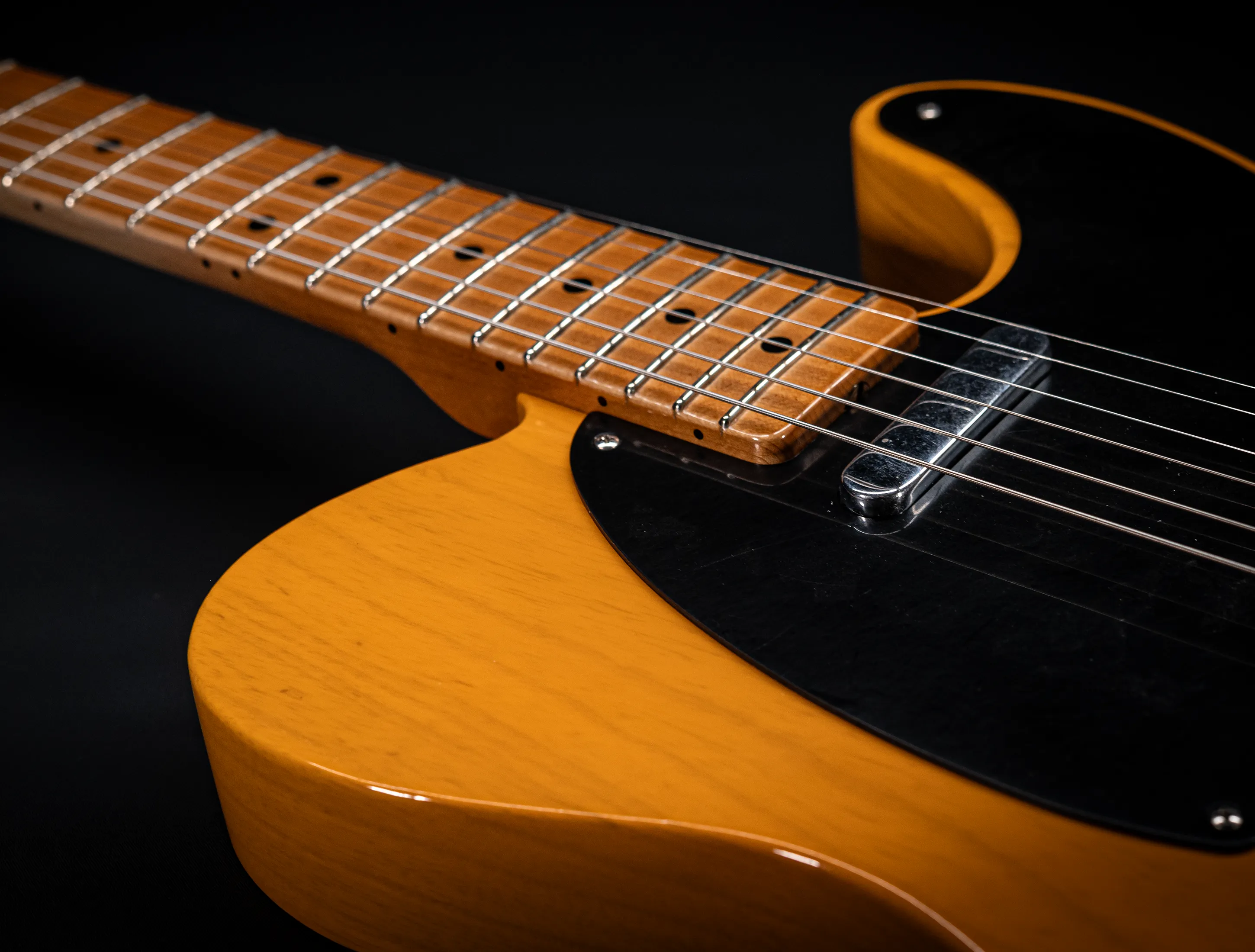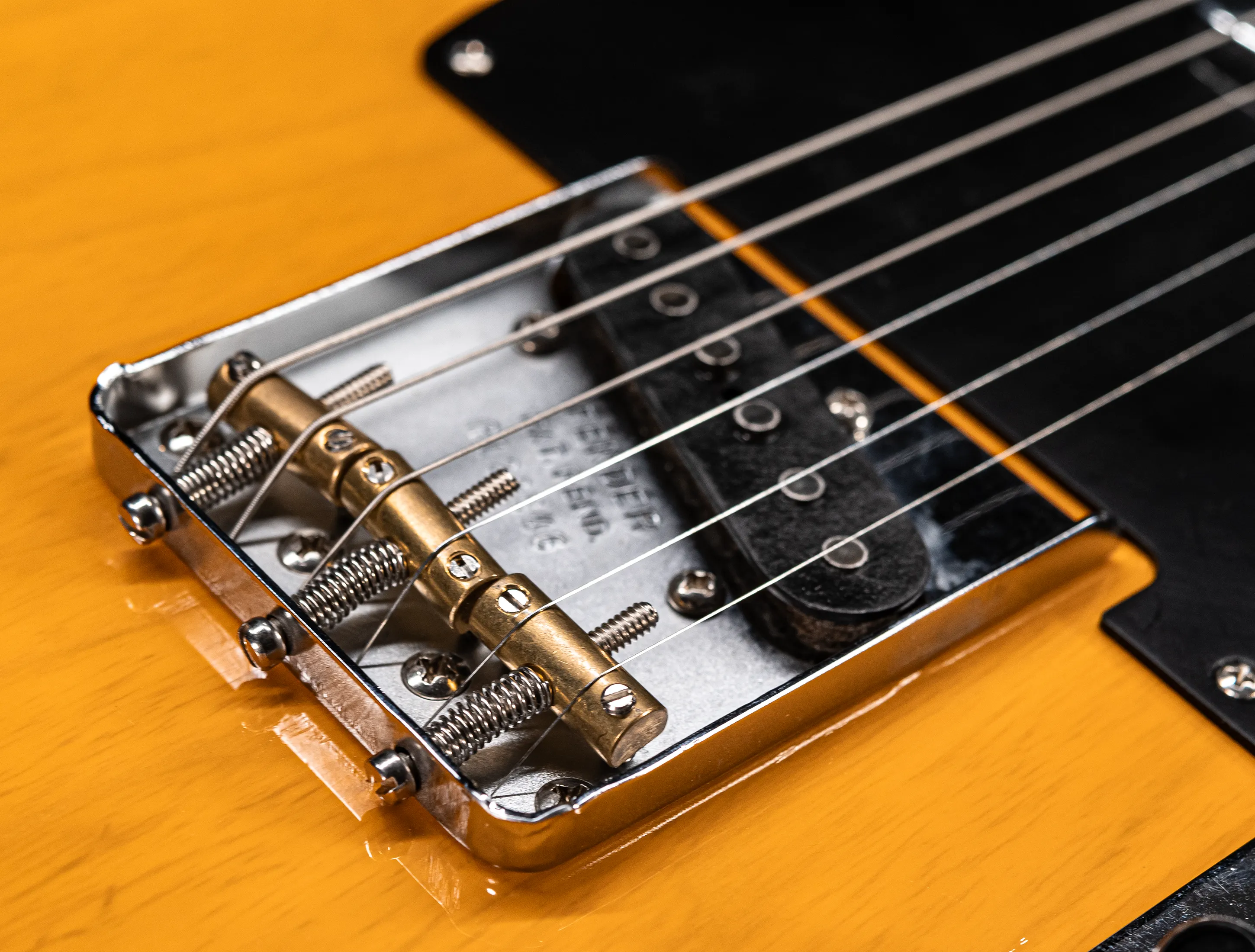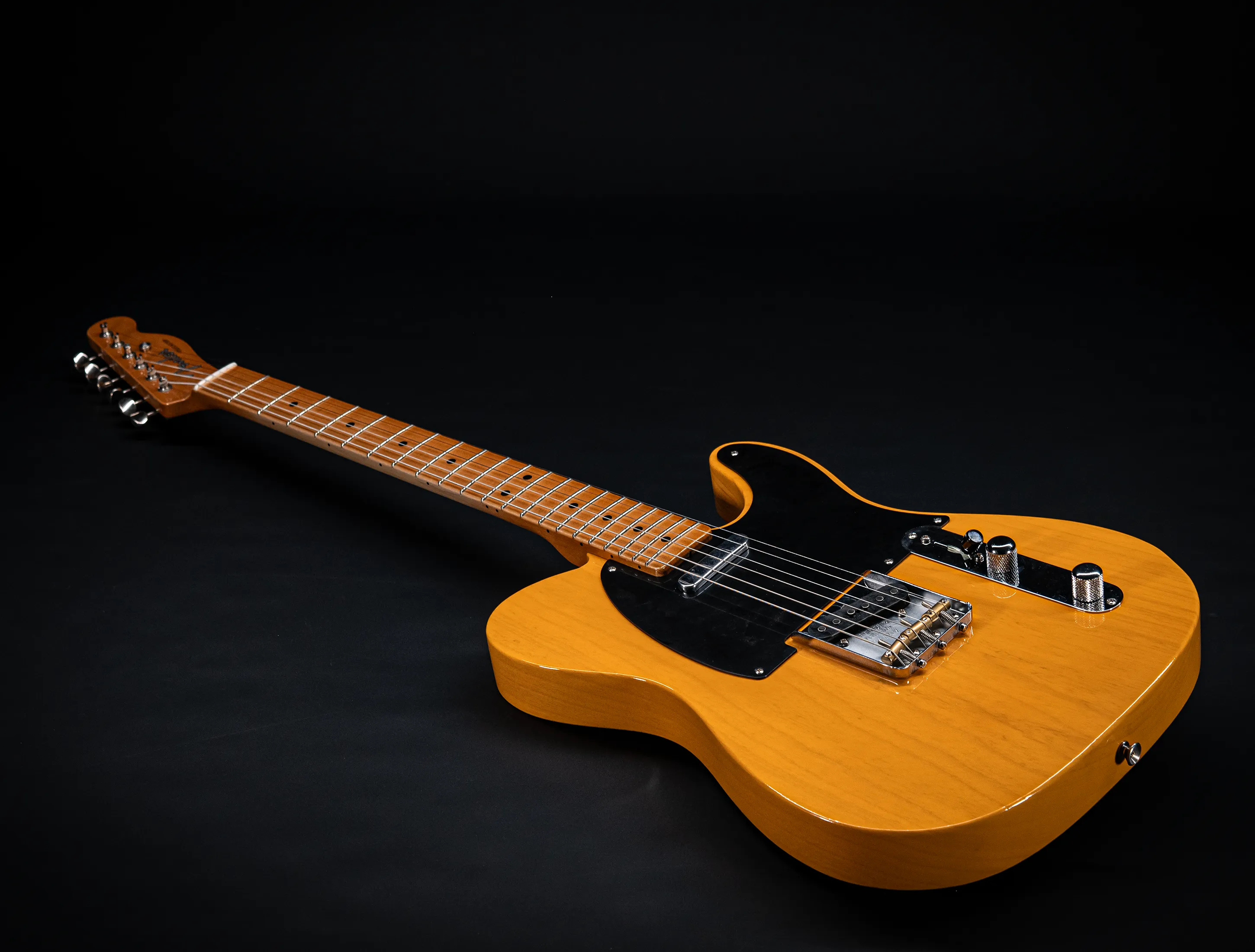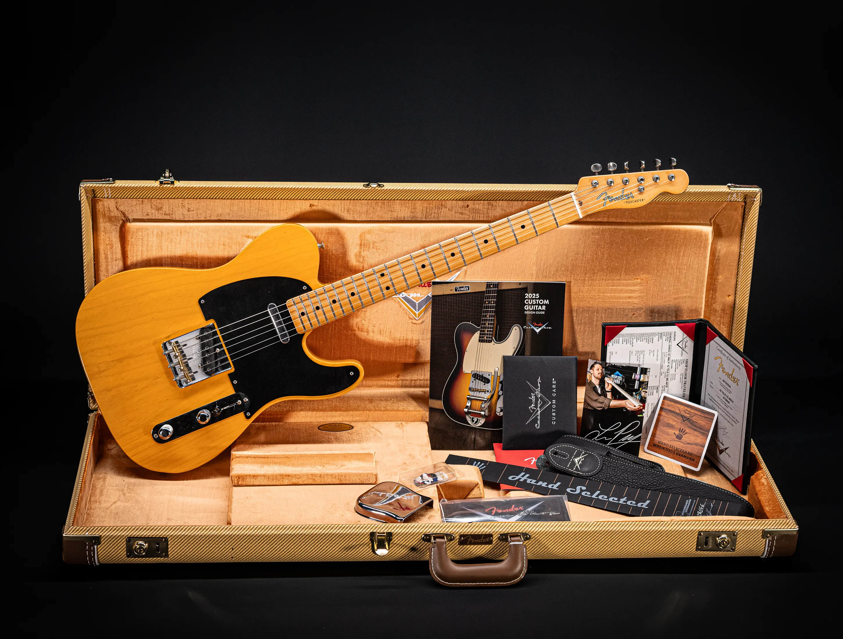 Jörg Hermann hat mit Levi Perry und dem Fender Custom Shop diese besondere Version einer 52er Tele entworfen. Der Gedanke war hier, dass wir optisch ein absolut zeitloses und legendäres "Gewand" haben - die Aged Butterscotch Lackierung als Blackguard - und dies mit dem besten Equipment für die "Inneren Werte" zu vereinen.