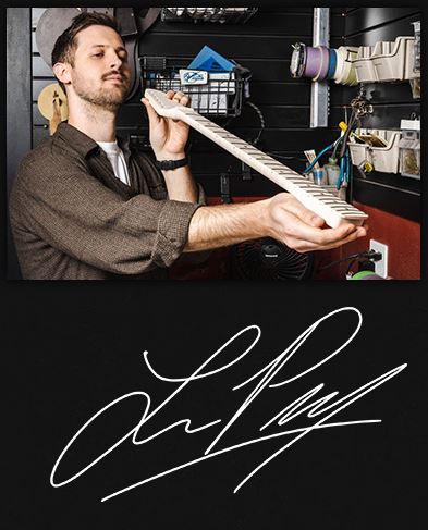 Levi Perry started at Fender’s U.S. production final assembly department in 2012 fresh out of high school in Riverside, Calif., where he was born and raised. He moved to the Custom Shop three years later in 2015 as a Relic artisan and tune tester and soon moved to service repair. After another three years he was promoted to Masterbuilder Apprentice in 2018. While an apprentice Perry served as a “floater”, which meant that he worked with and learned from each Masterbuilder individually. He worked on many prestigious builds during this period, including the Game of Thrones series, the Limited Edition Phil Lynott Precision Bass, the Limited Edition George Harrison Rocky Strat, the Limited Edition El Mocambo Heavy Relic Stratocaster and Telecaster models, and many other collections and artist instruments. “For me what’s important is to always be learning and growing, and to remain a student of the craft,” Perry said. “Fender has such a deep and rich history to glean from, and when you allow that history to teach and guide you while continuing to be creative and push the boundaries, you’ll be amazed at what you can create.”