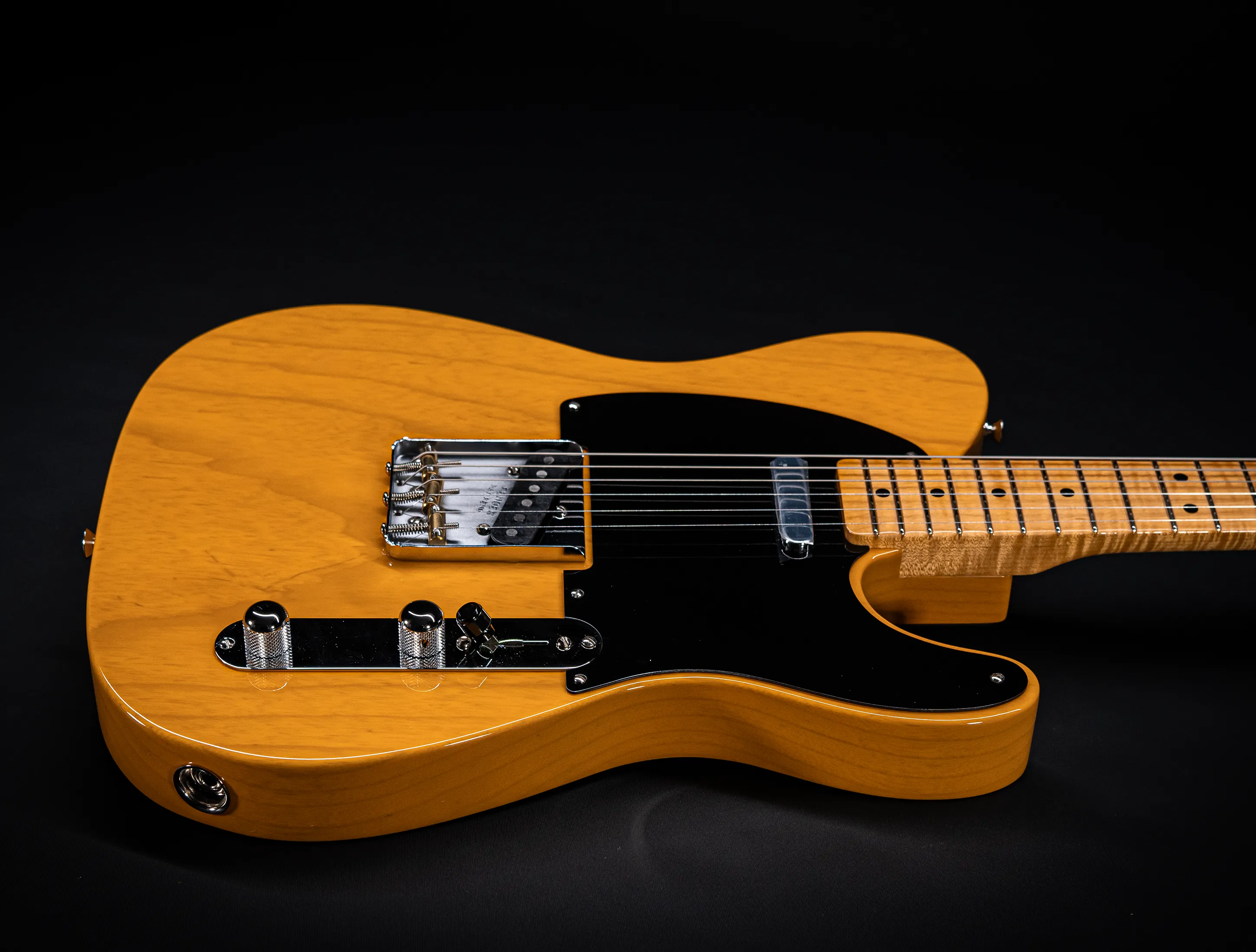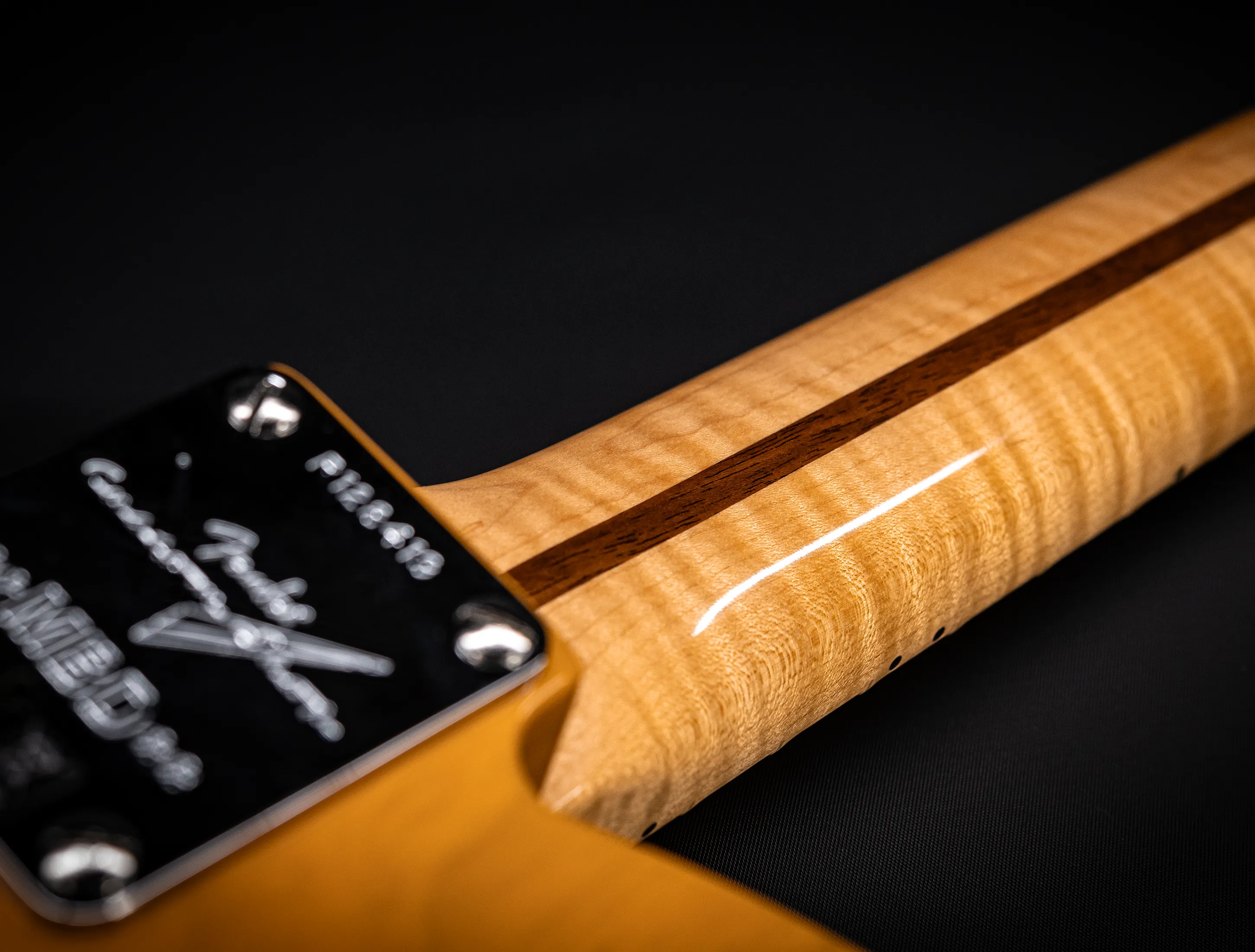 Das "glänzende" Highlight aus unserer Zusammenarbeit mit unseren Freunden vom Fender Custom Shop ist die MBD Edition 52er Timeless NOS flame Neck