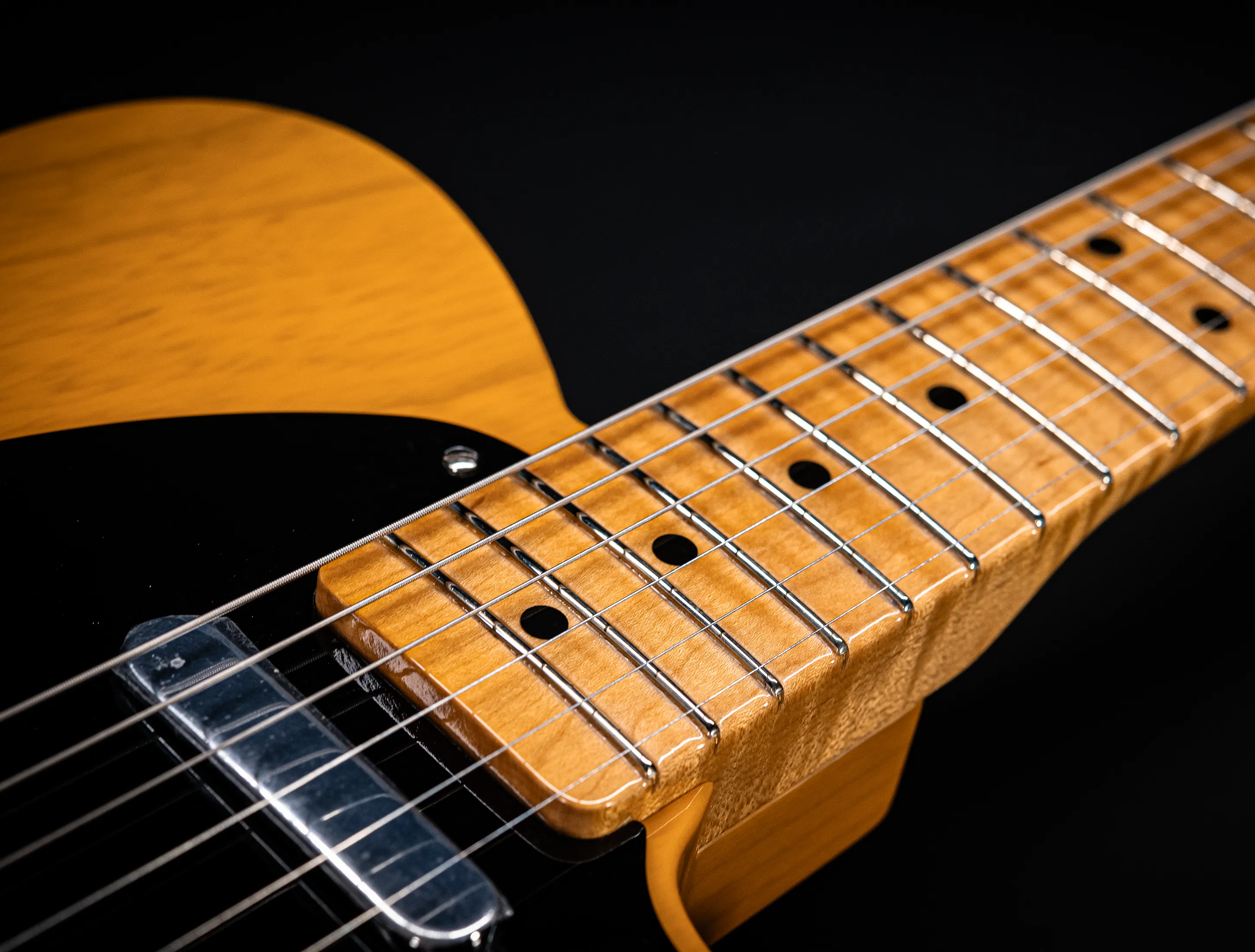 - Stew Mac 155s Bünde, die ein Authentisches Vintage Spielgefühl mit moderner Ergonomie vereinen – sowie stark abgerollte Griffbrettkanten, die die Hand noch angenehmer über den Hals gleiten lassen.