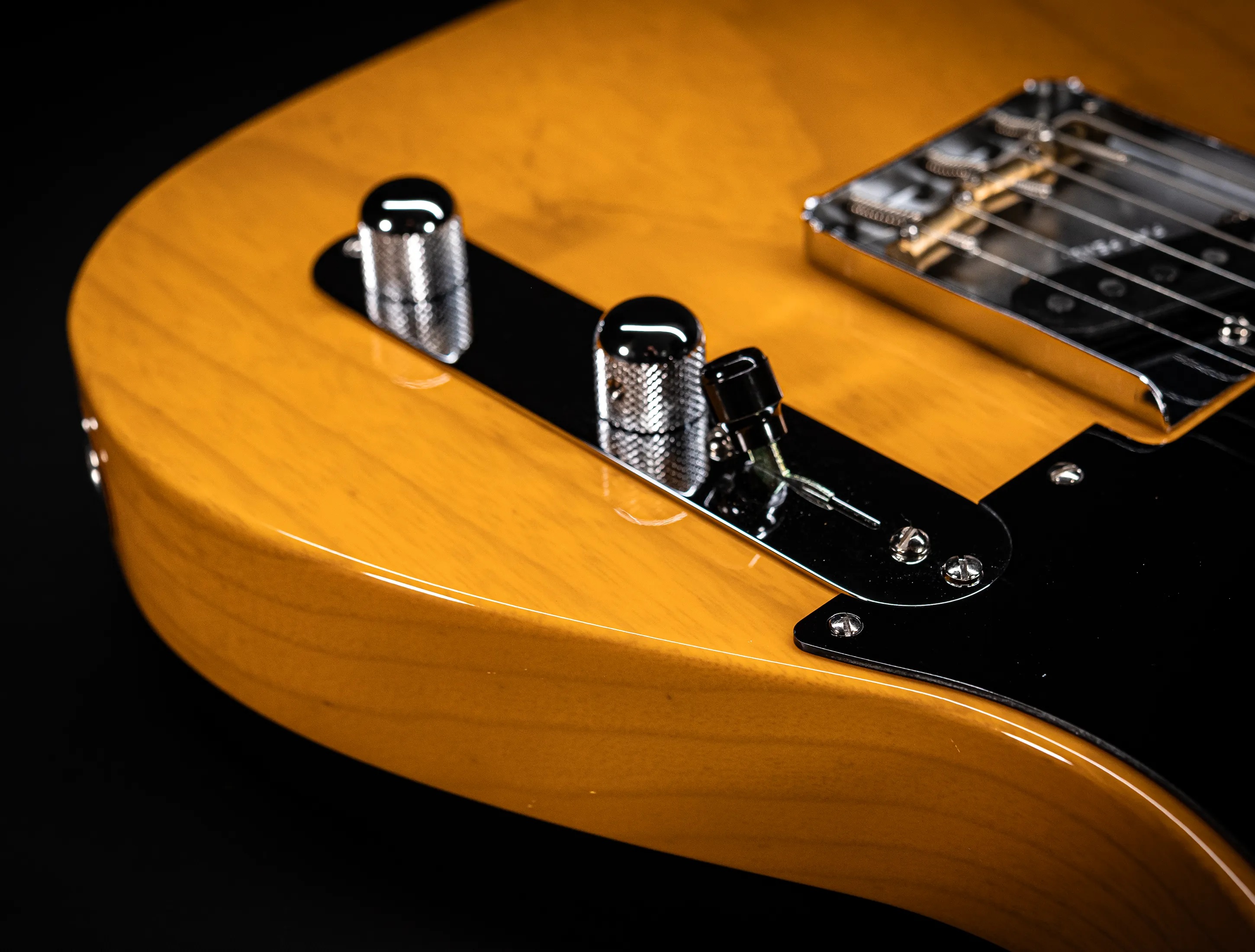 - Controls: 4-Wege-Schalter MHH-stagged Tele Wiring, lets each pickup see their preferred