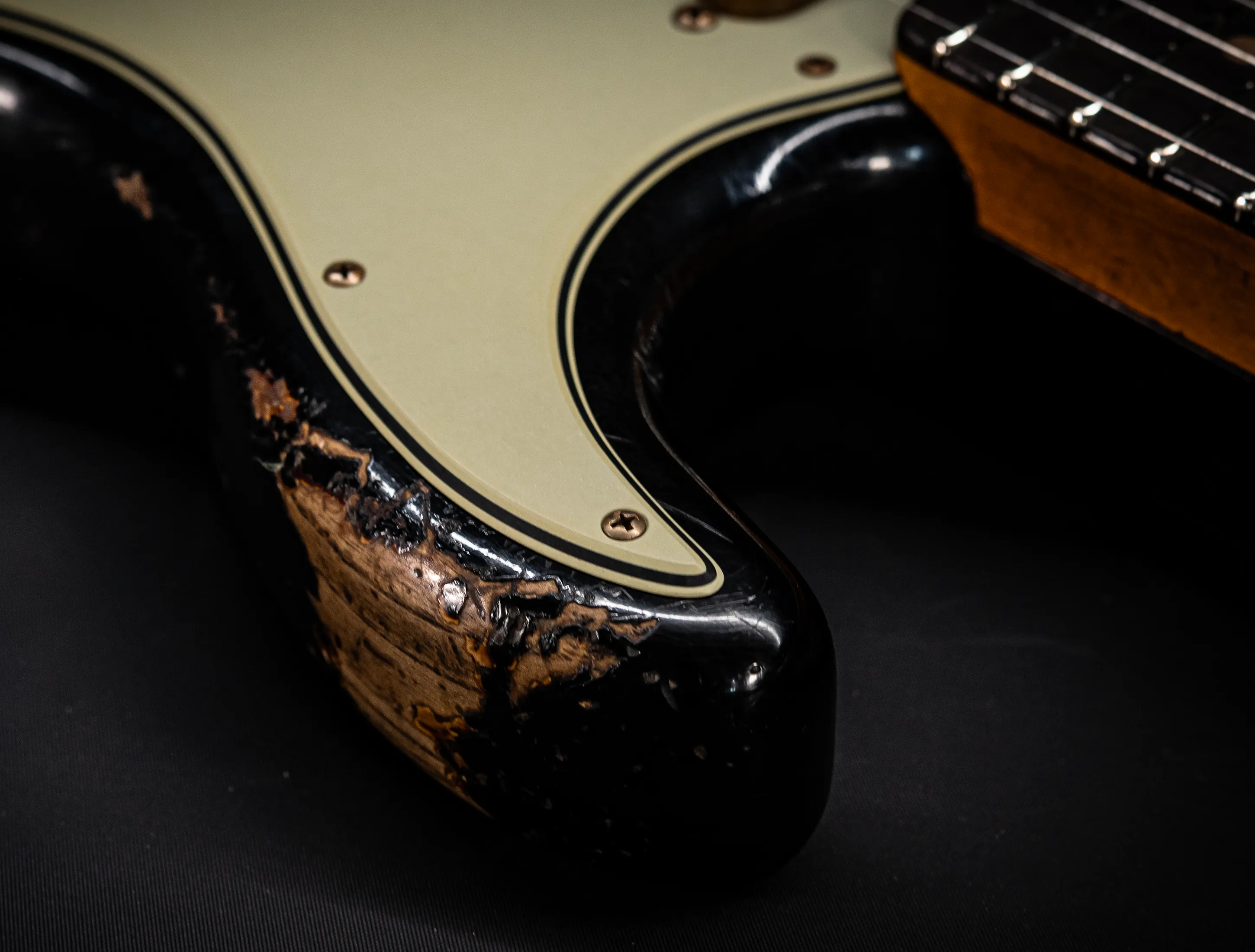 Jörg Hermann hat in enger Zusammenarbeit mit dem ehemalig legendären Masterbuilder Vincent van Trigt (damals vor Ort in der Custom Shop Factory von Fender) ein wahrliches Meisterstück einer Stratocaster entworfen. Natürlich ist diese wirklich besondere Version einer 62er Strat in der typischen Vince van Trigt bevorzugten Super Heavy Relic Aging Ausführung und zum anderen mit einem komfortablen 9,5"- Griffbrettradius ausgestattet