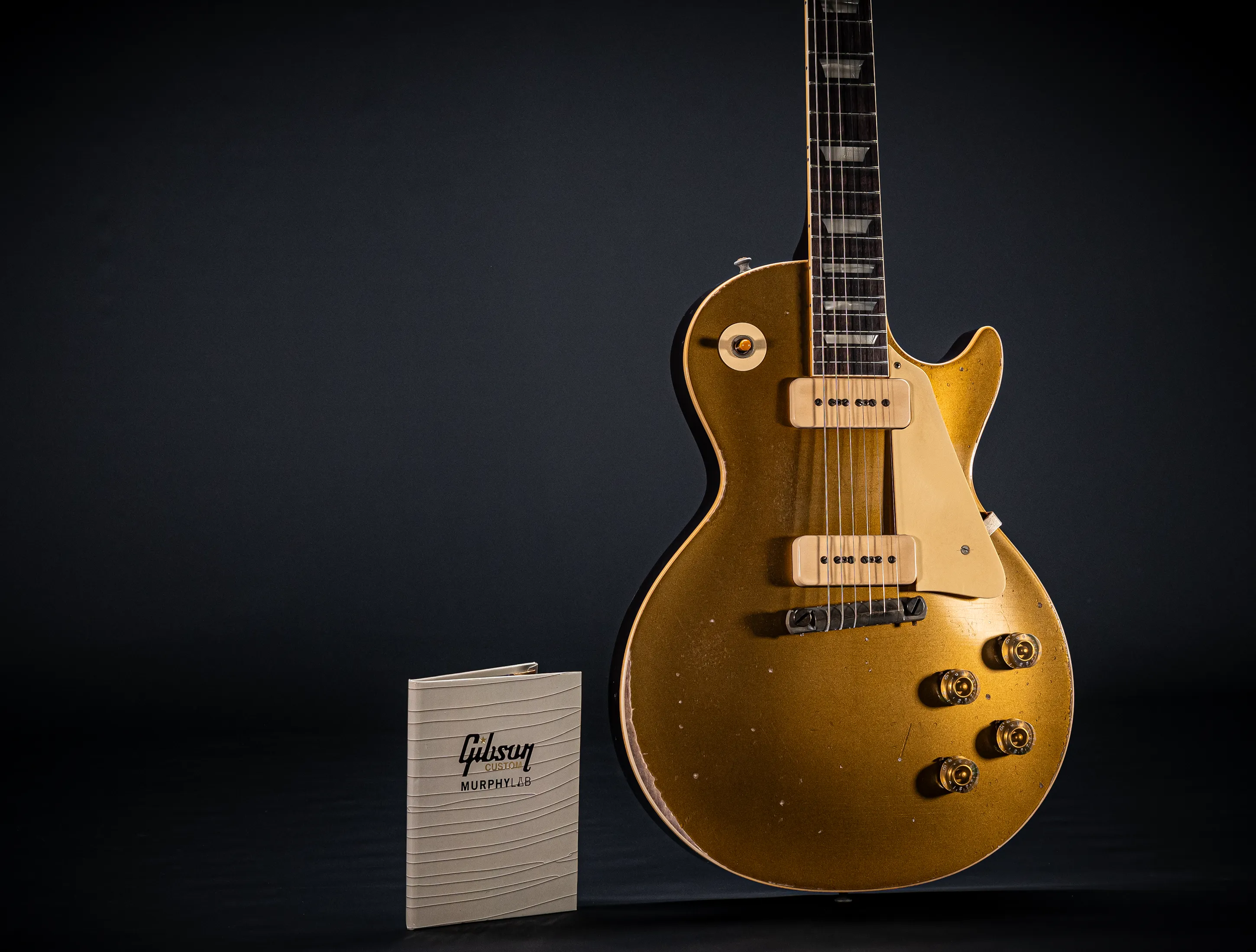 Eine neue 54er Les Paul, mit dem Vibe einer "Lieblingsgitarre!". Die MHH-Specs Murphy Lab Authentic Heavy Aged Custom Antique Double Gold DARKBACK - Edition der 54er P90 Les Paul ist in diesem Falle genau das Richtige.