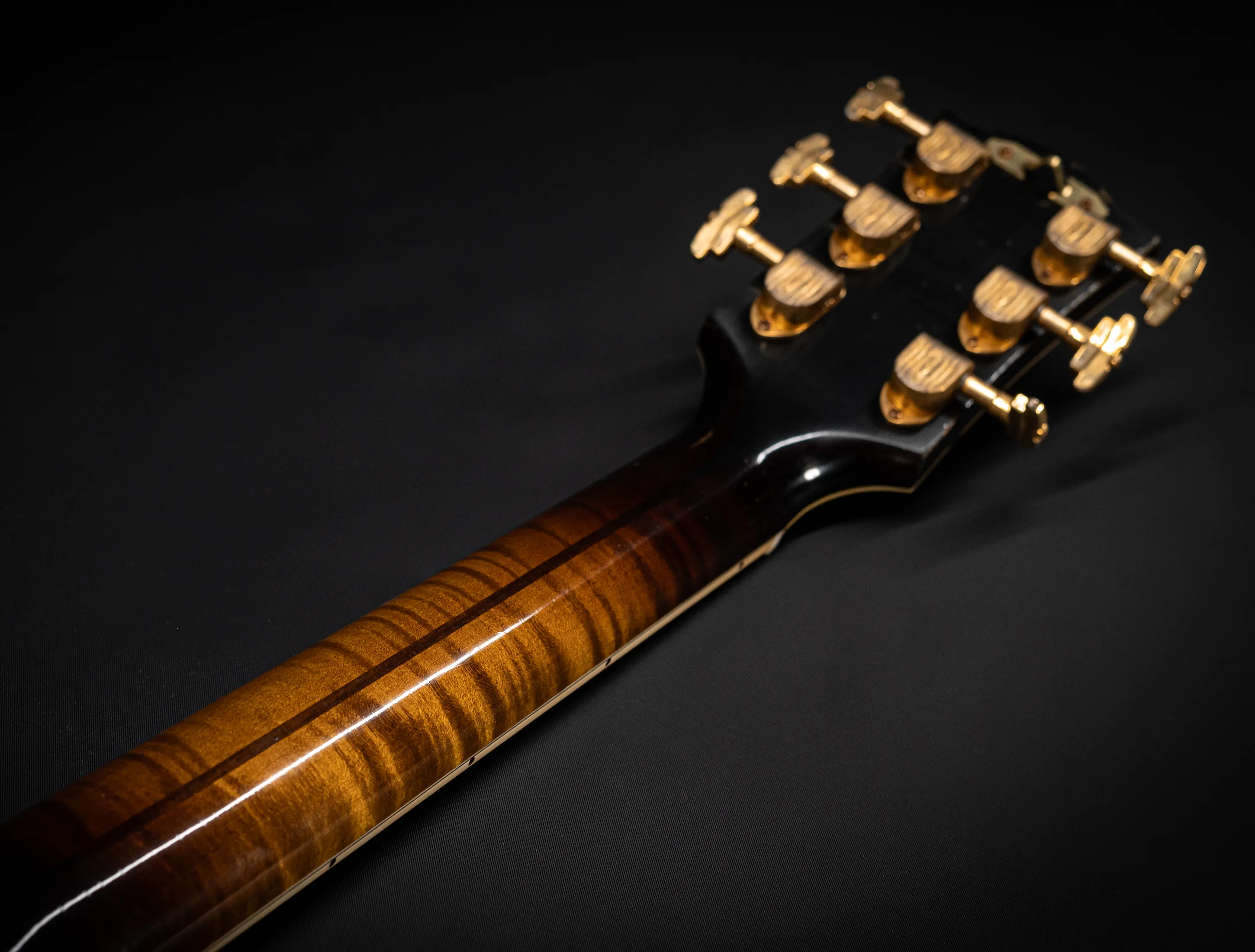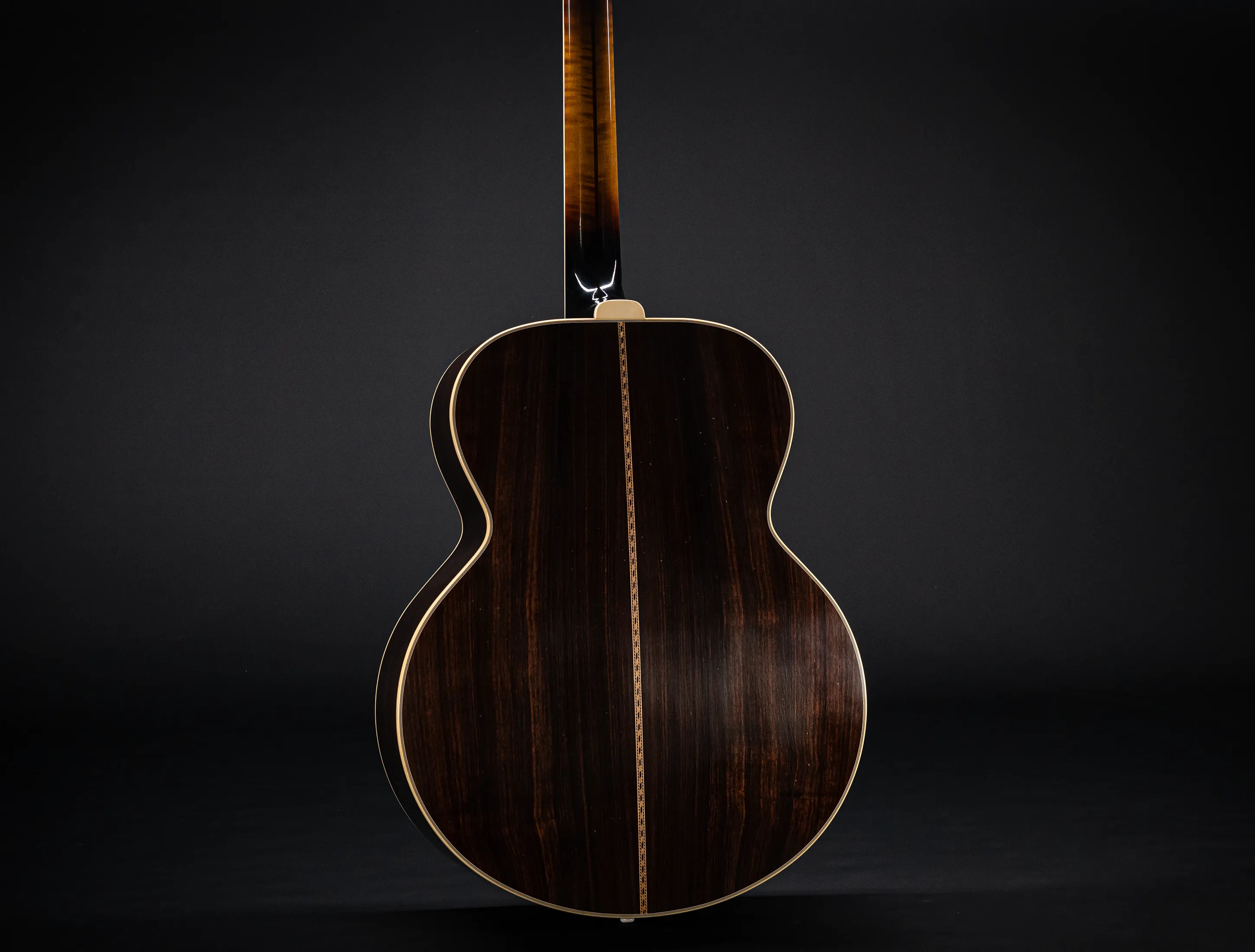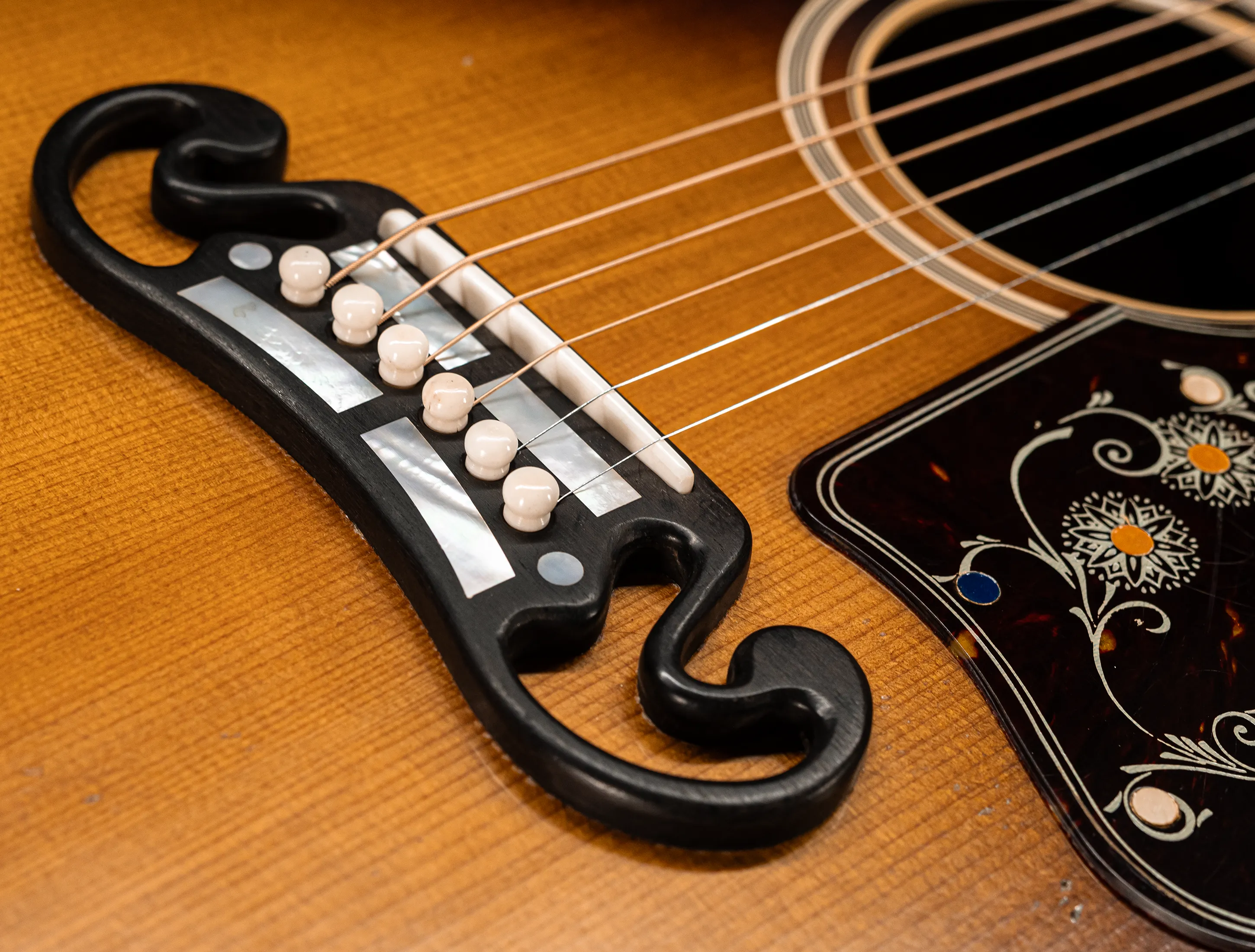 In enger Zusammenarbeit mit der University of America und Gibson ist ein Verfahren entstanden, bei welchem die Adirondack-Fichten Decke in aufwendigen Prozessen "künstlich gealter" wird, durch Temperatur und Druck entsteht so die Zellstruktur als ob das Instrument aus den Vintage-Jahren stammt, der Sound welchem man so nacheifert. Und dies ist richtig gut gelungen! Das Instrument fühlt sich an und klingt genau so, wie man es von einem Vintage-Instrument erwartet. Lassen Sie sich ebenso von der SJ-200 Pre-War begeistern.