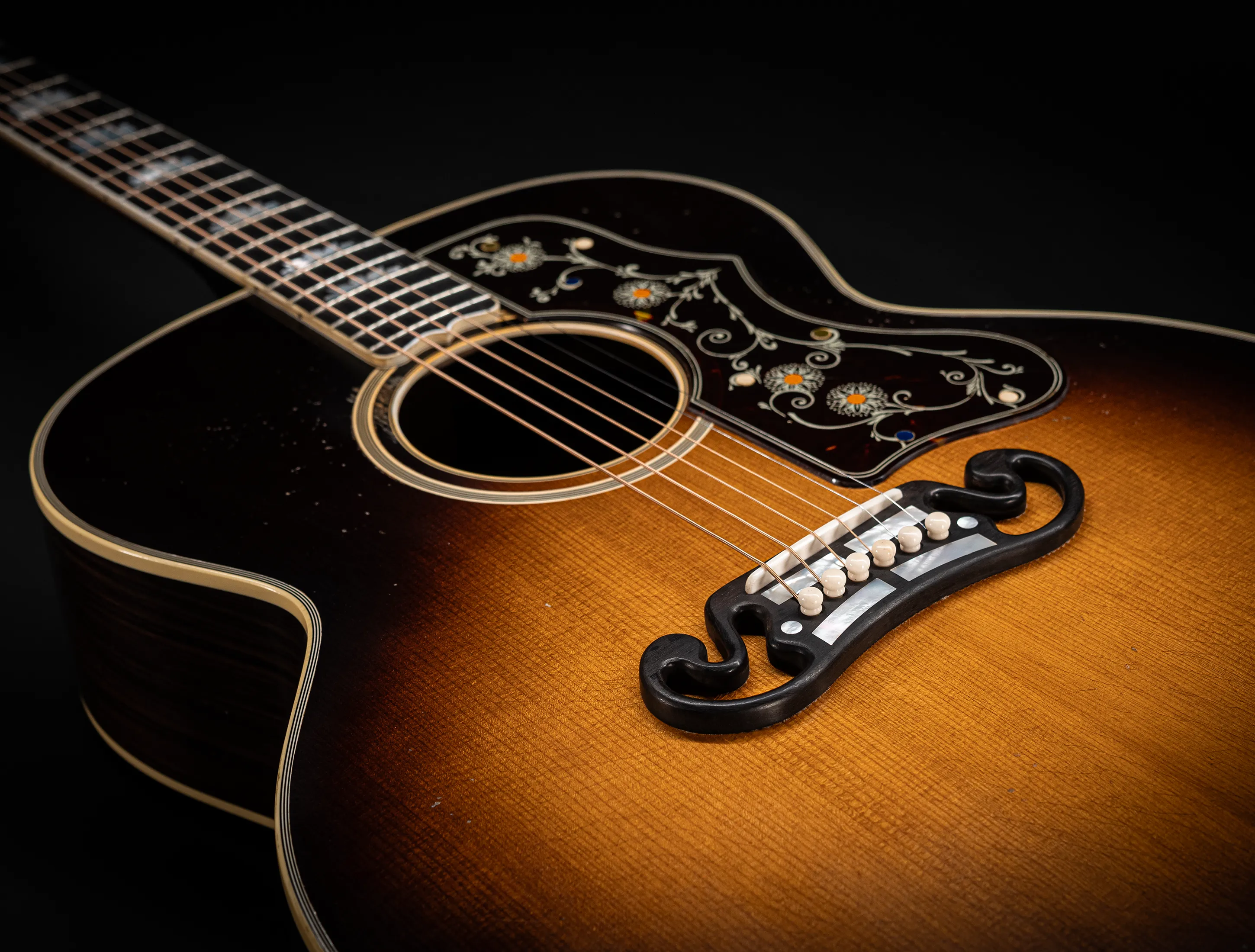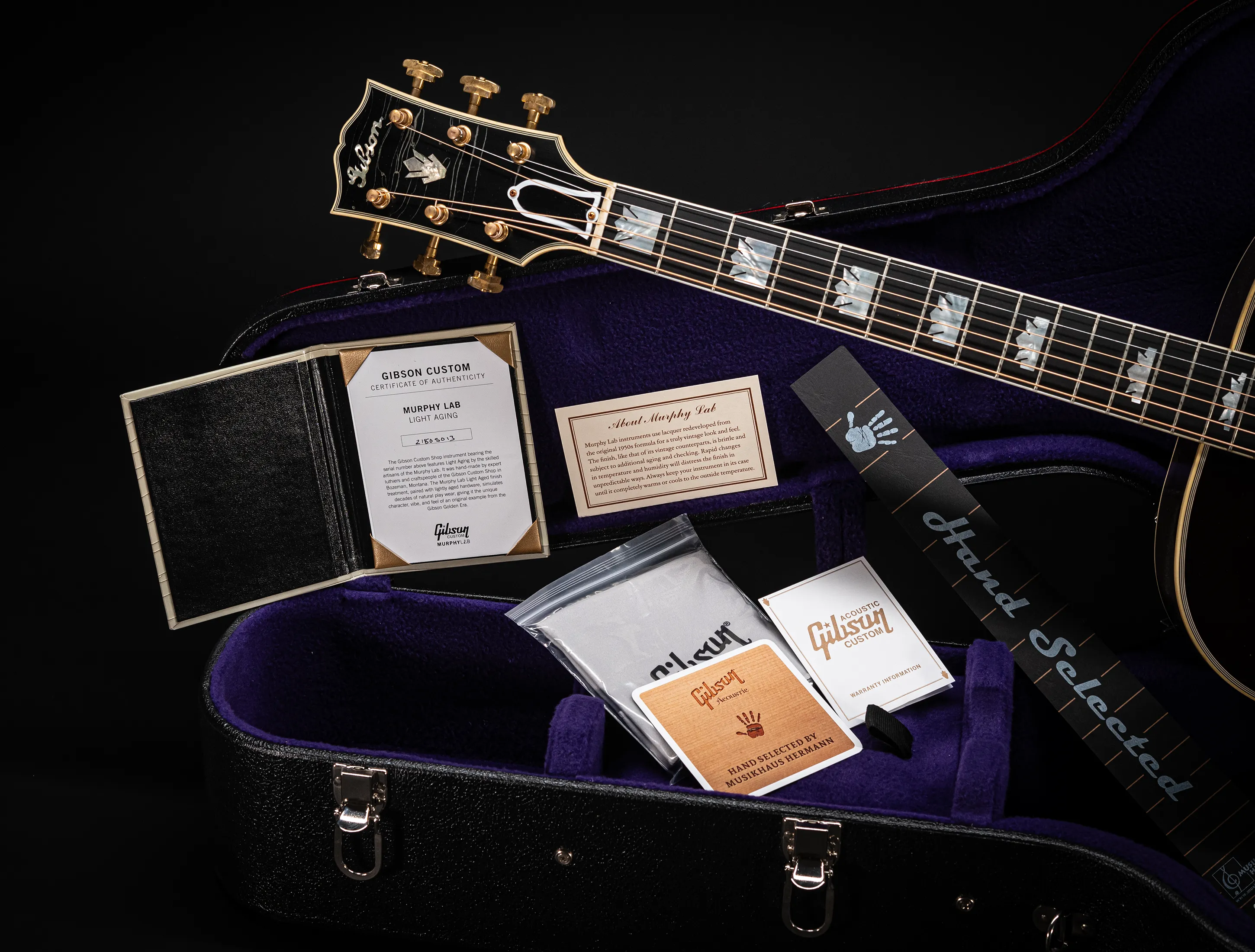 Der Gibson Custom Shop hat den König der Flat-Tops nachgebildet. Dieses historische Reissue-Instrument ist eines der berühmtesten Modelle von Gibson und wird im Werk in Bozeman unter Verwendung der besten Materialien von Hand gefertigt. Es wurde nach den Vorbildern der späten 1930er Jahre gestaltet. Kein Detail bleibt unberührt: Das gebundene Griffbrett, das Gibson-Inlay im Vintage-Stil und das einzigartige Schlagbrett verleihen dieser authentischen Nachbildung einen individuellen Touch sowie der einzigartigen Light Aged Behandhandlung.