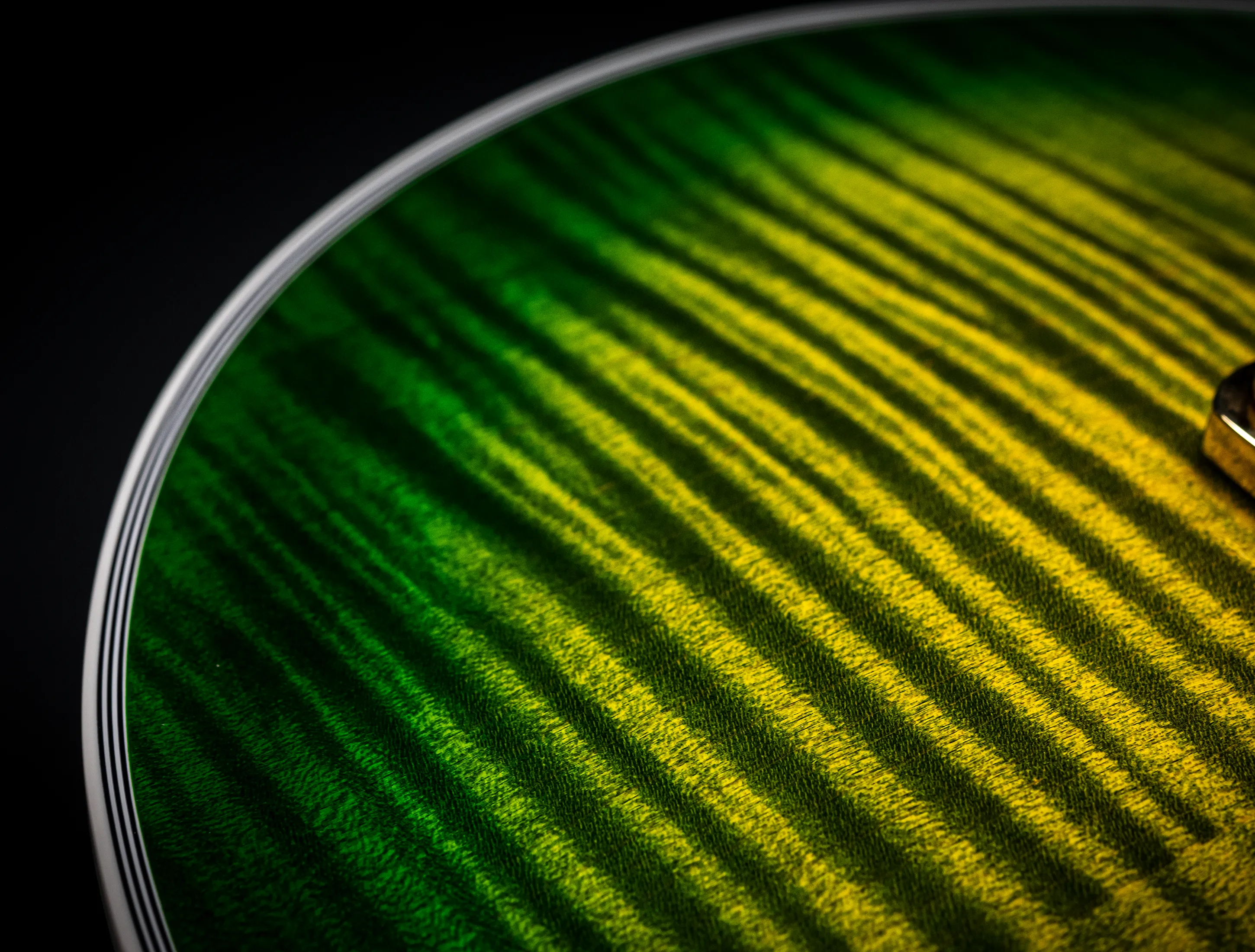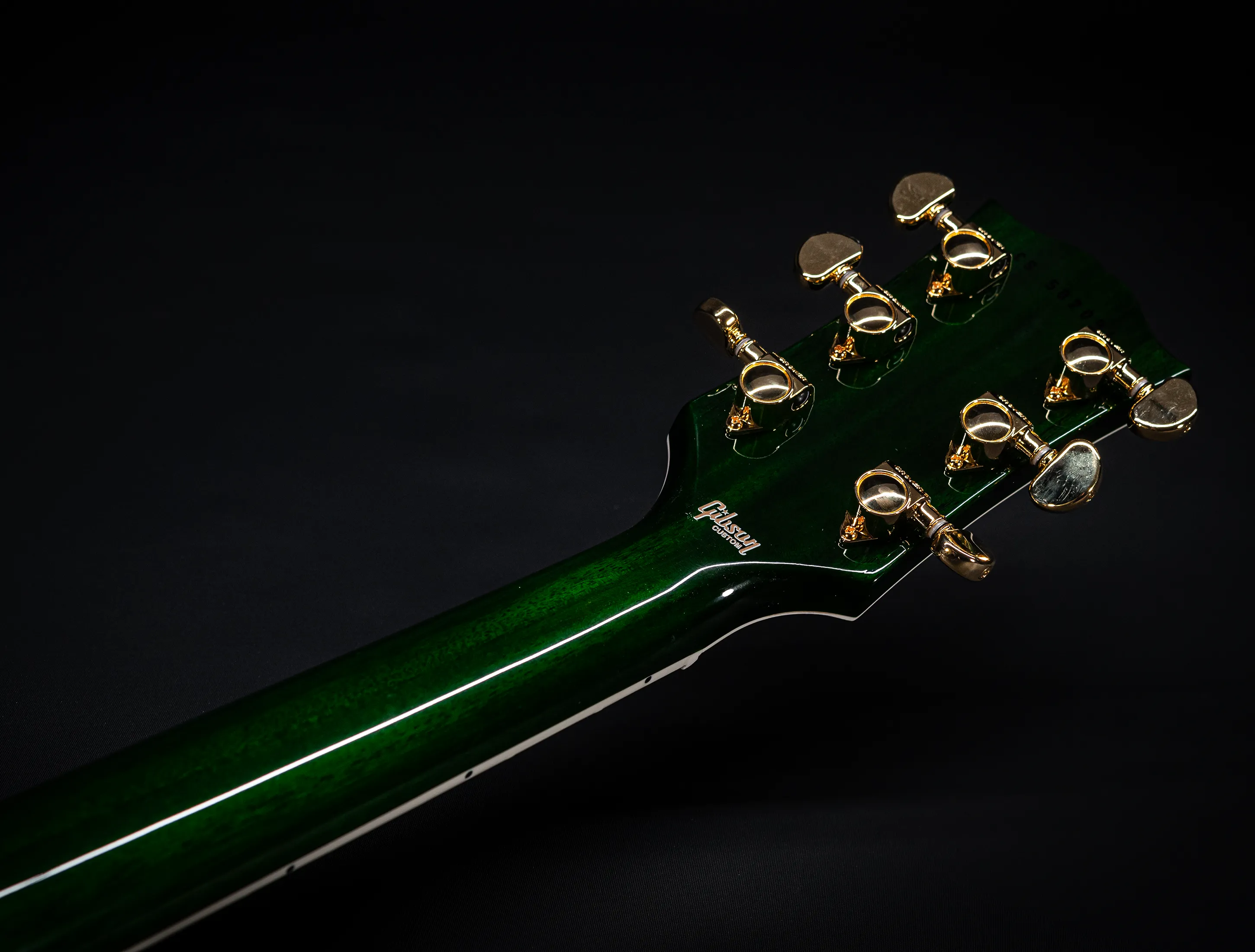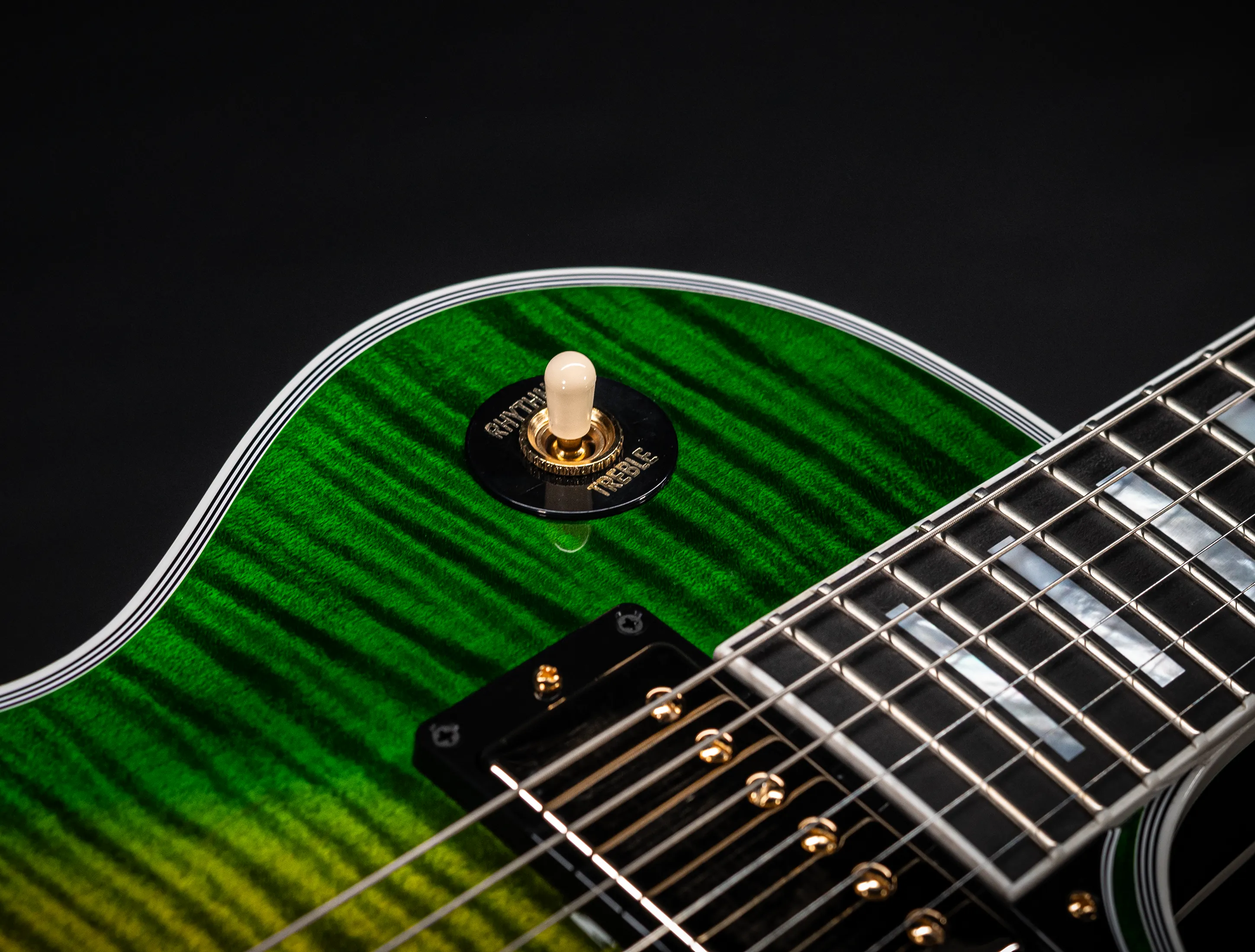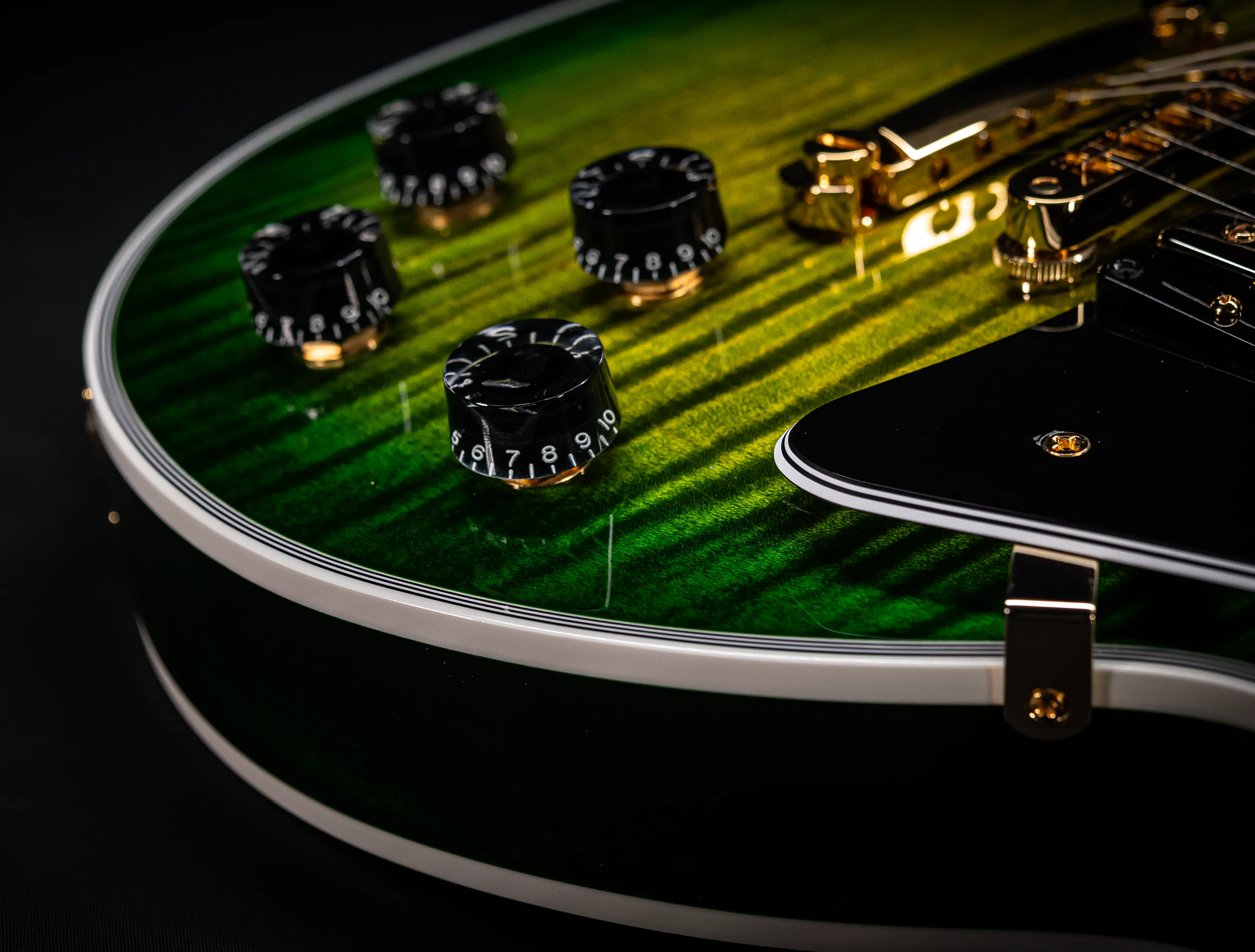 - Decke: 2tlg. auf Gewicht und Schwingung selektierte extra Flame Ahorn Decke, personal Selektion im Custom Shop Werk Nashville