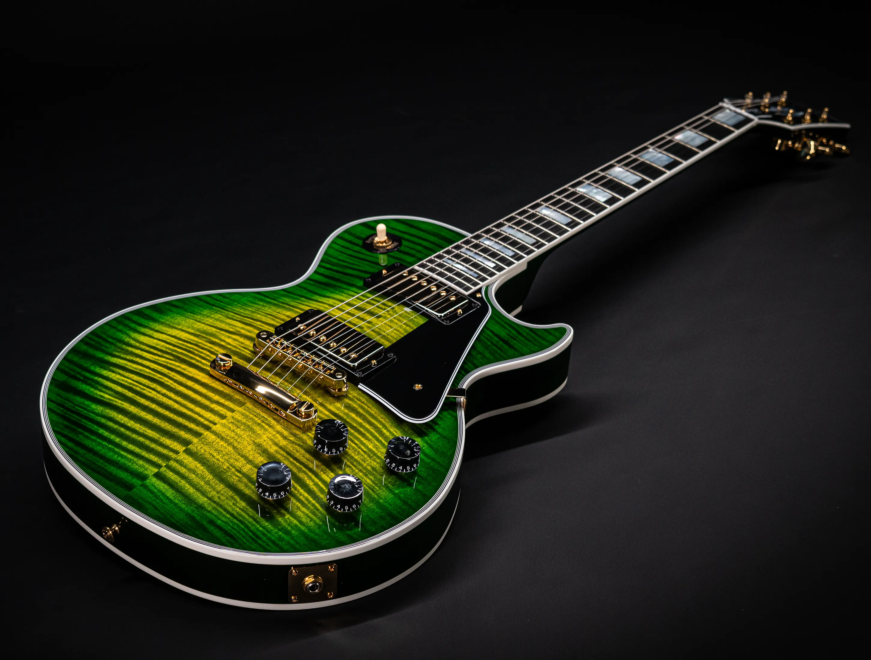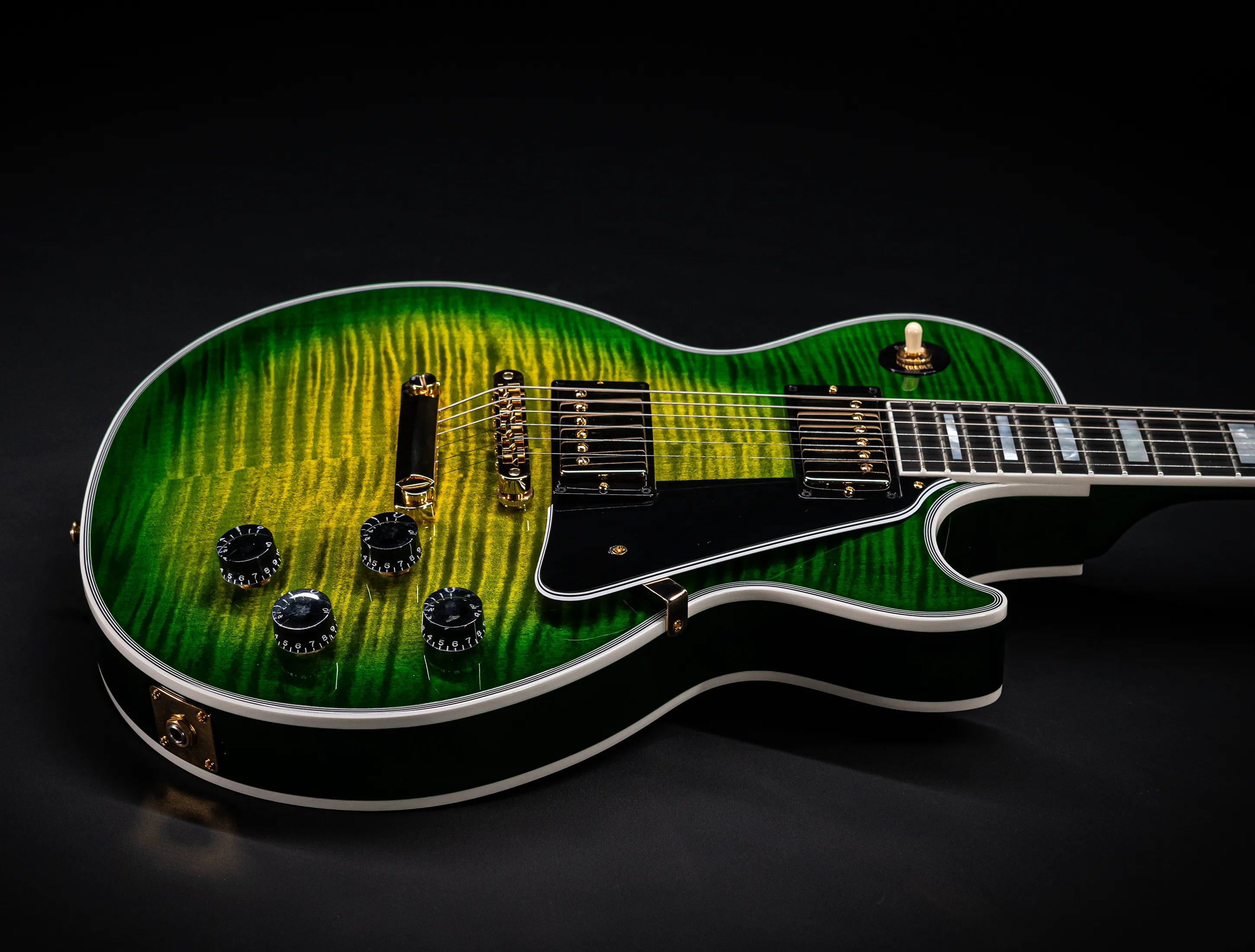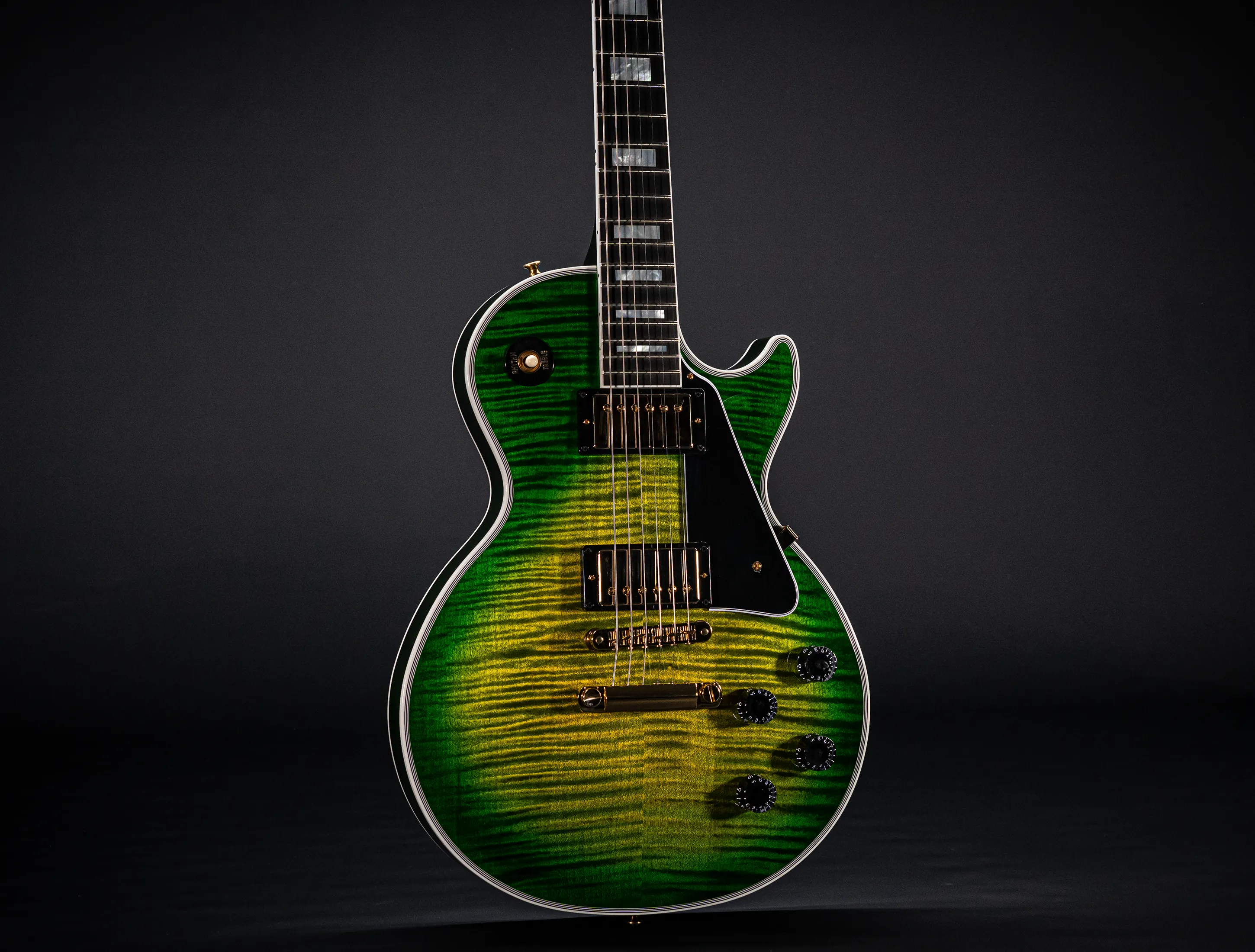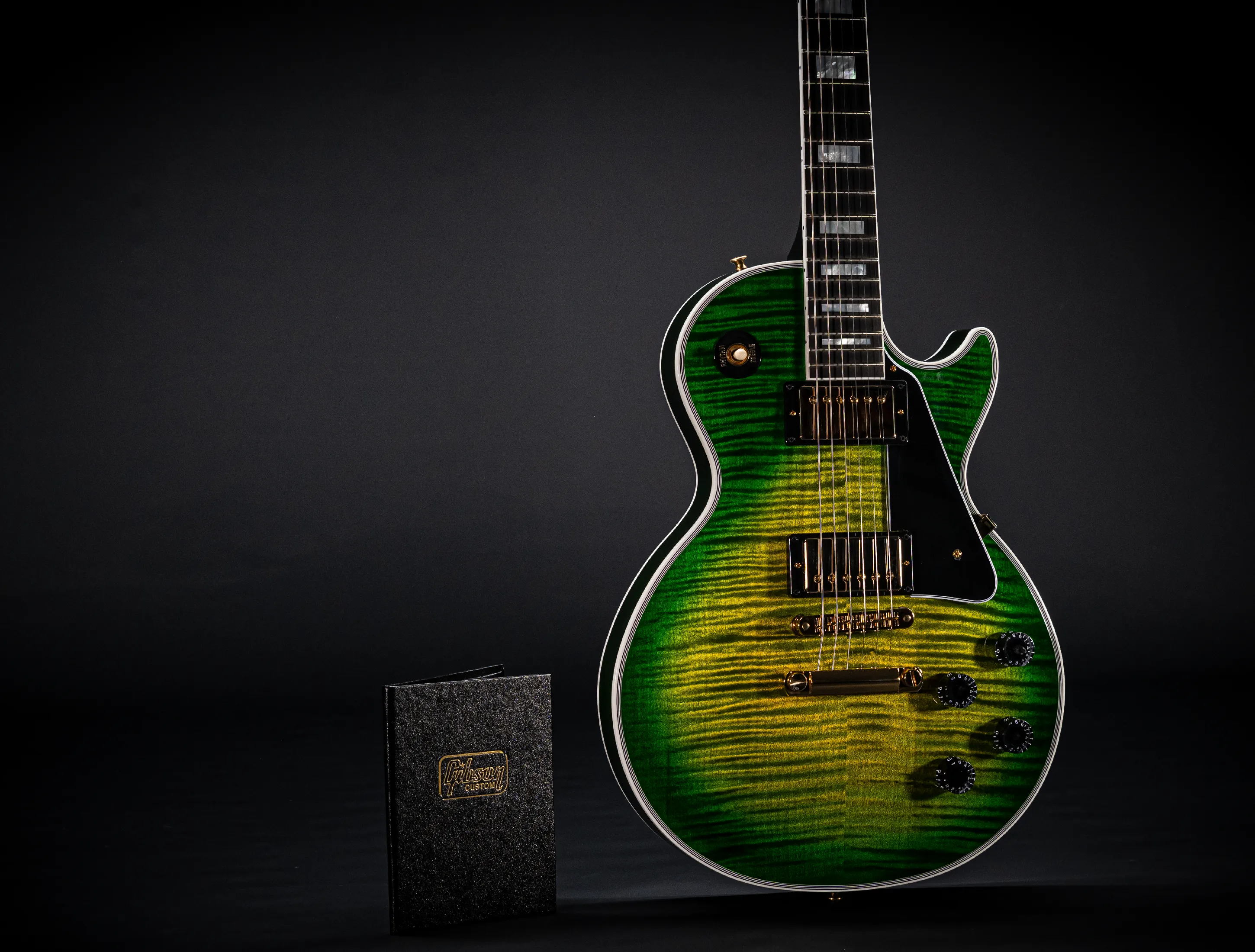 Die Les Paul Custom GLOSS FIGURED - Iguana Burst ... strotzt nur so vor Selbstbewusstsein.
