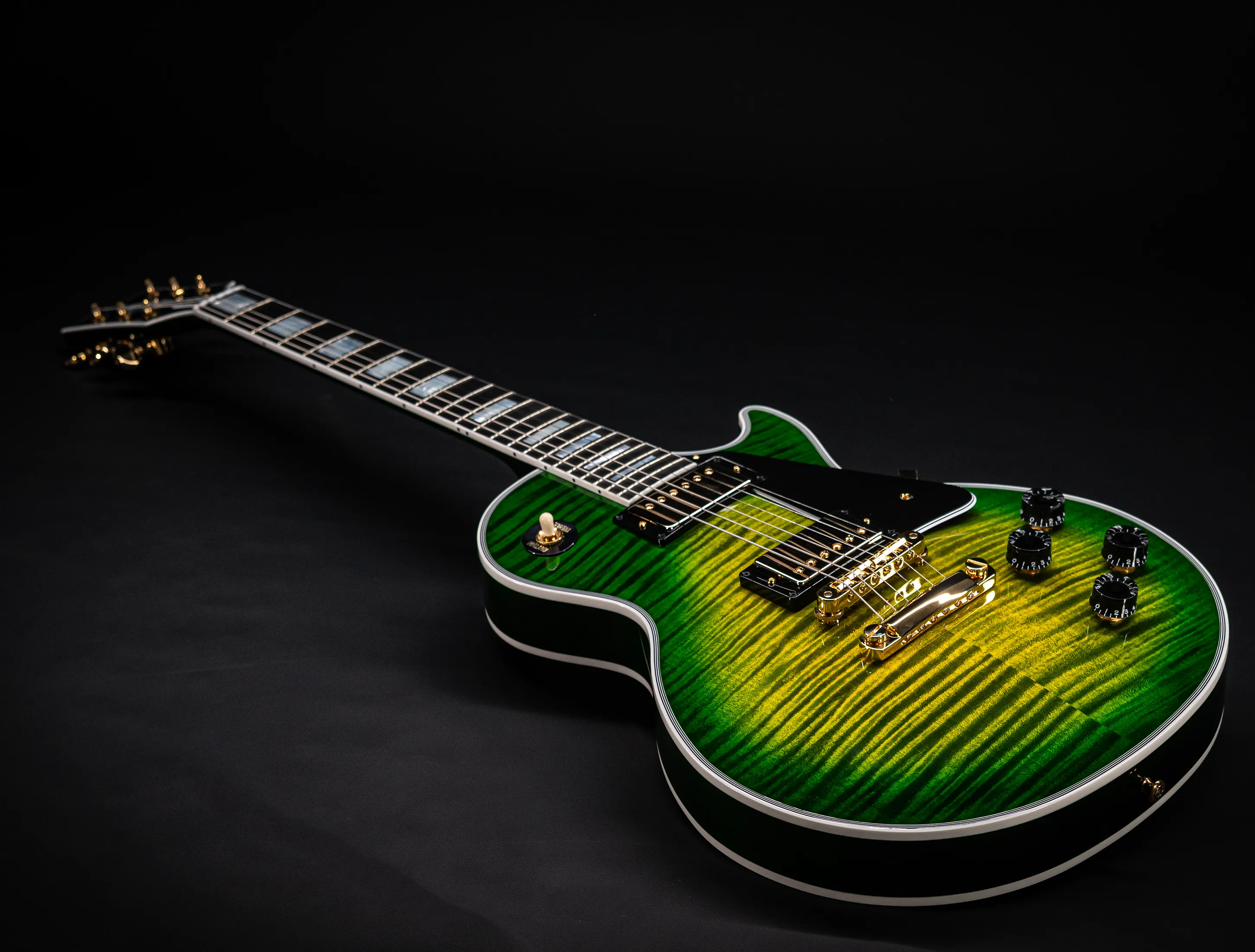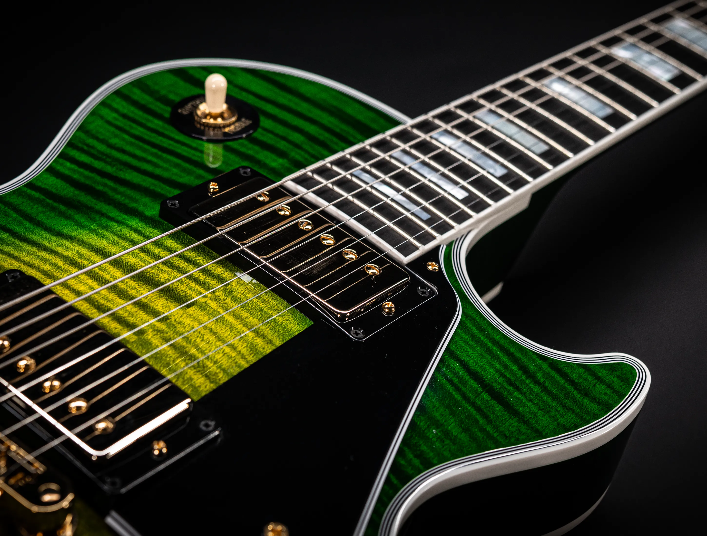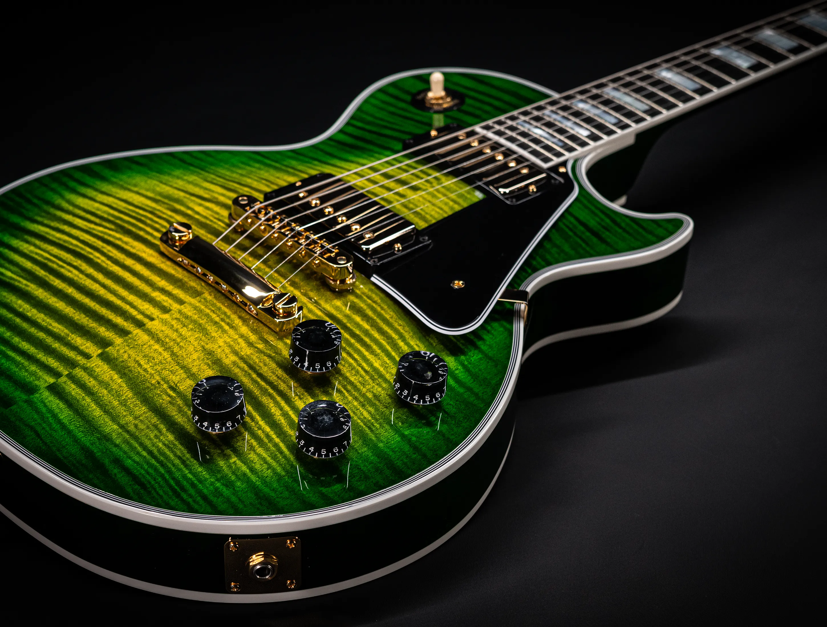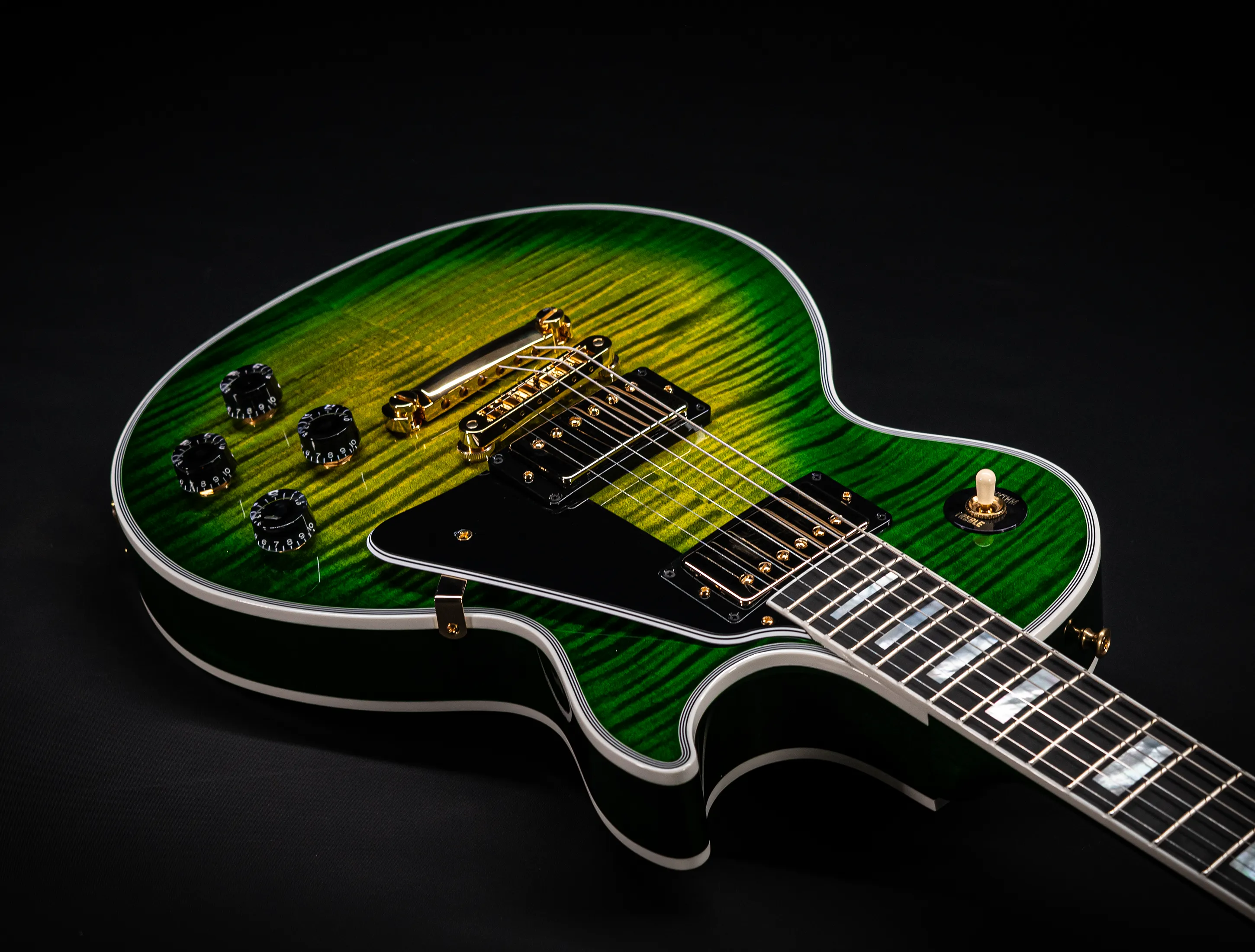 Die Les Paul Custom GLOSS FIGURED - Iguana Burst ... strotzt nur so vor Selbstbewusstsein.
