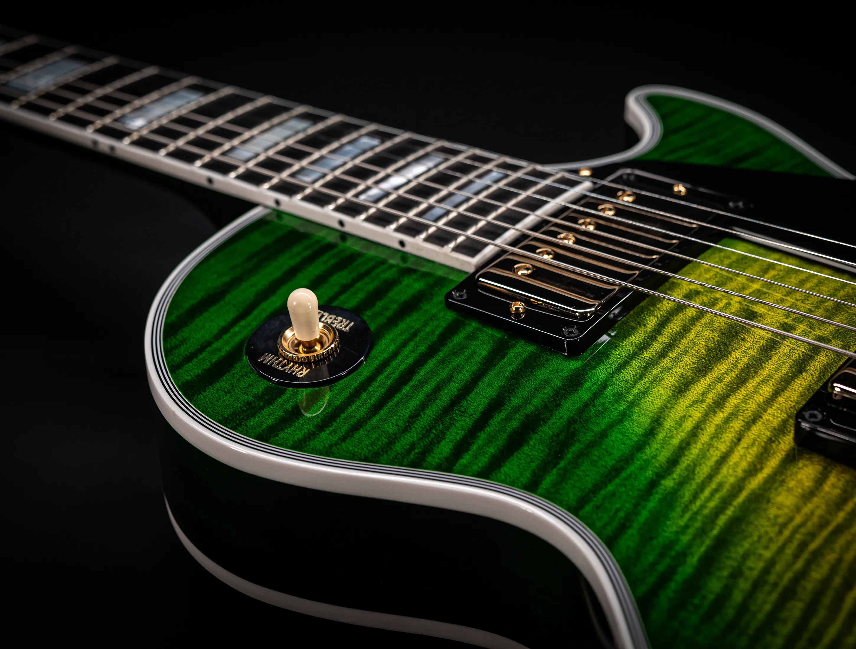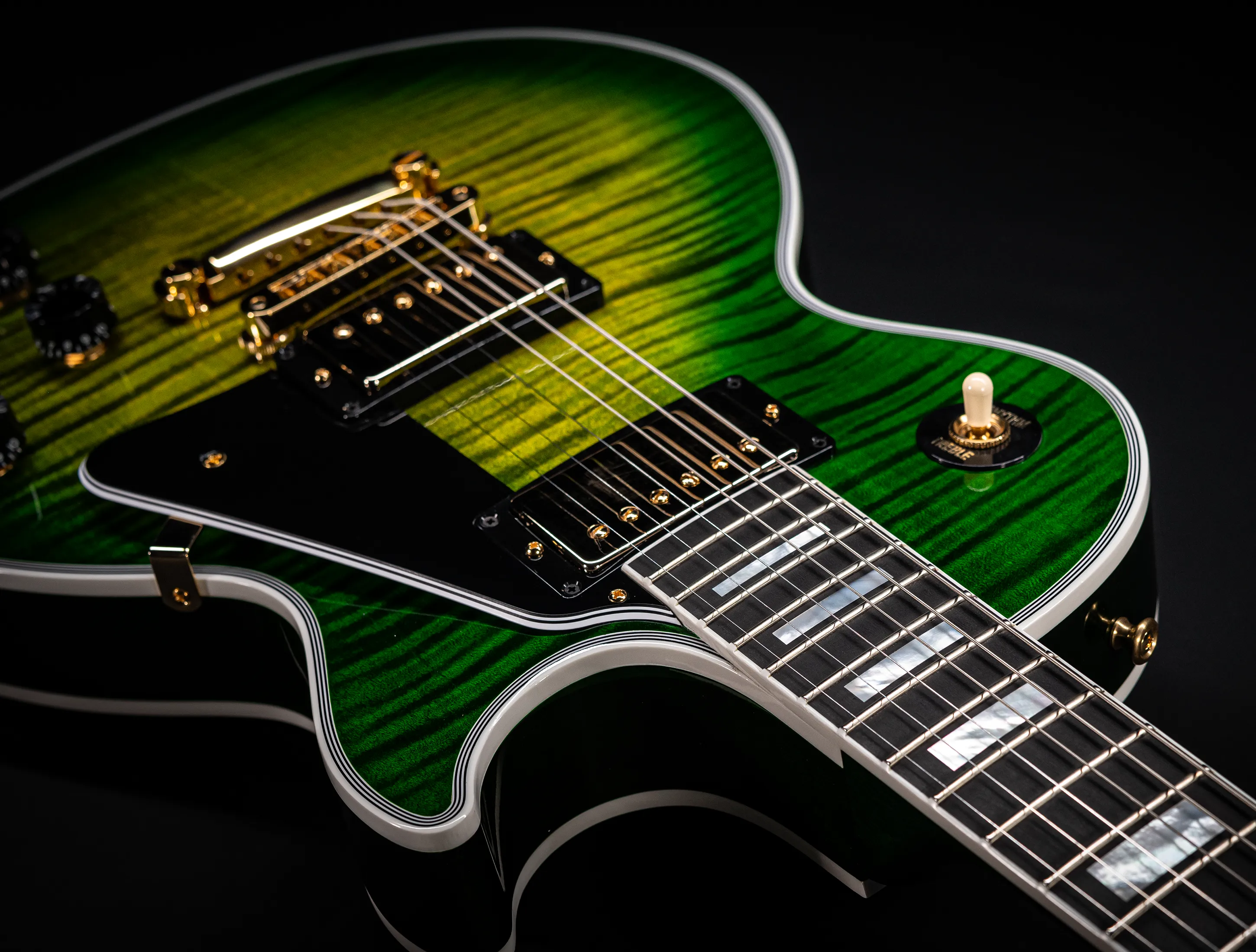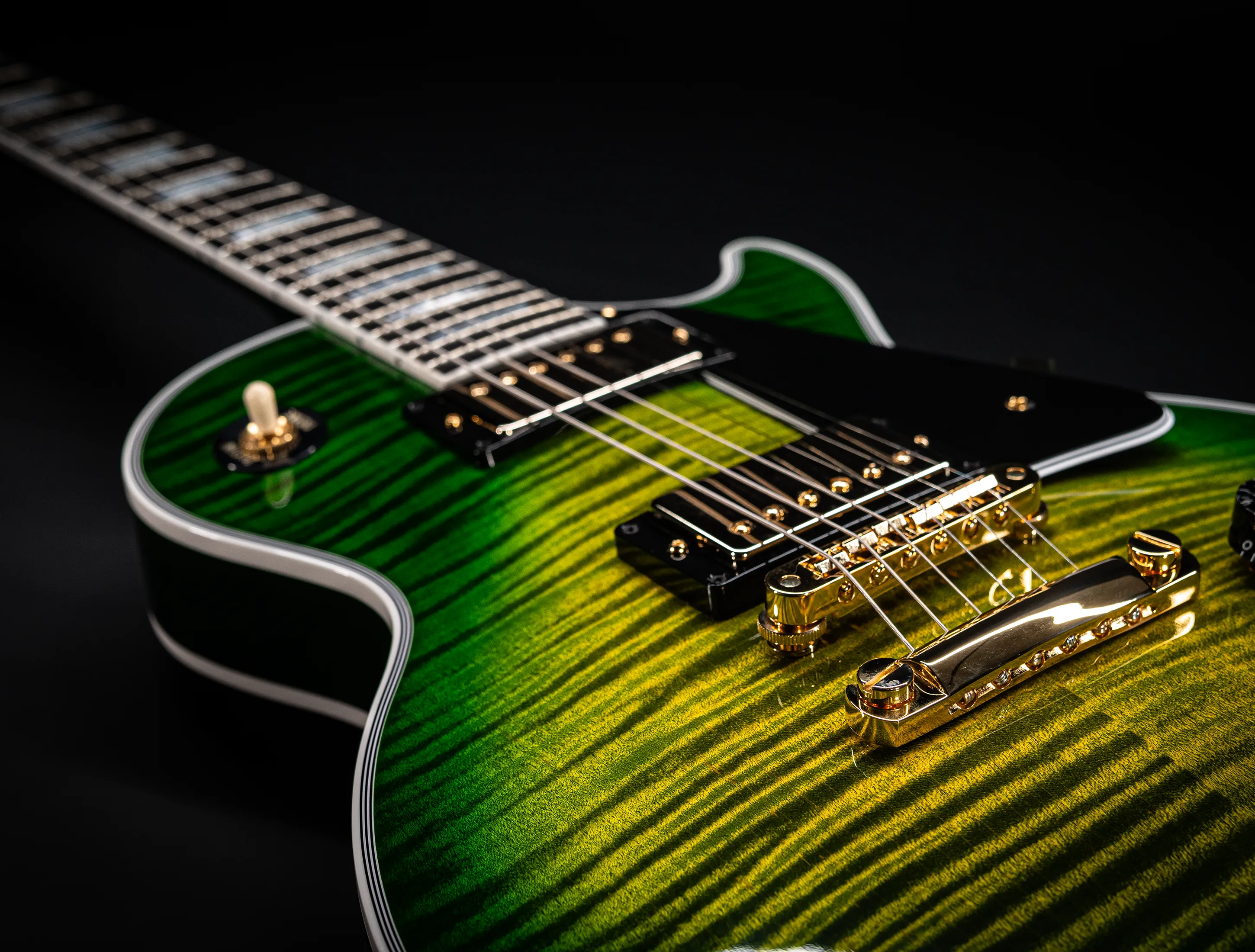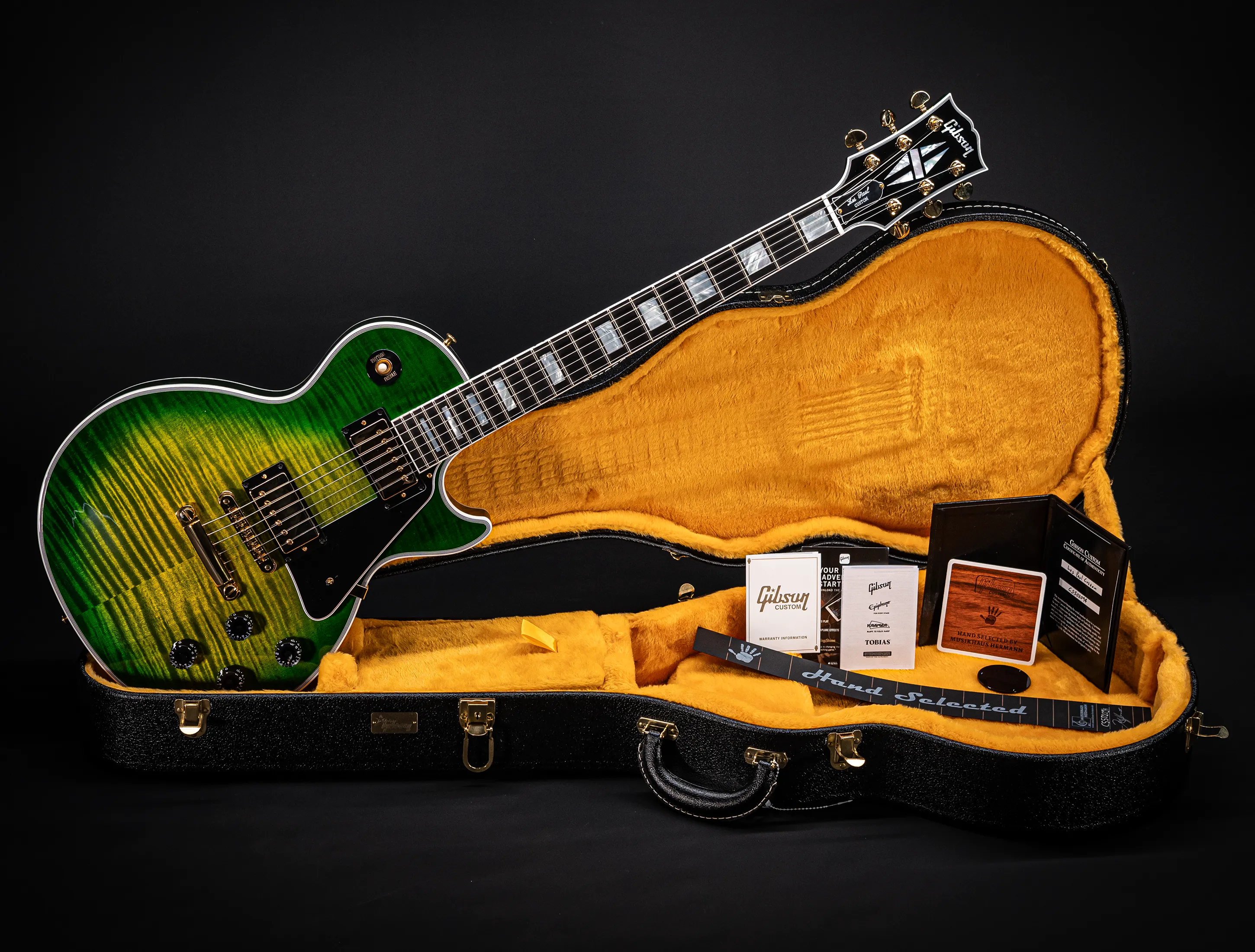 Die Les Paul Custom GLOSS FIGURED - Iguana Burst ... strotzt nur so vor Selbstbewusstsein.