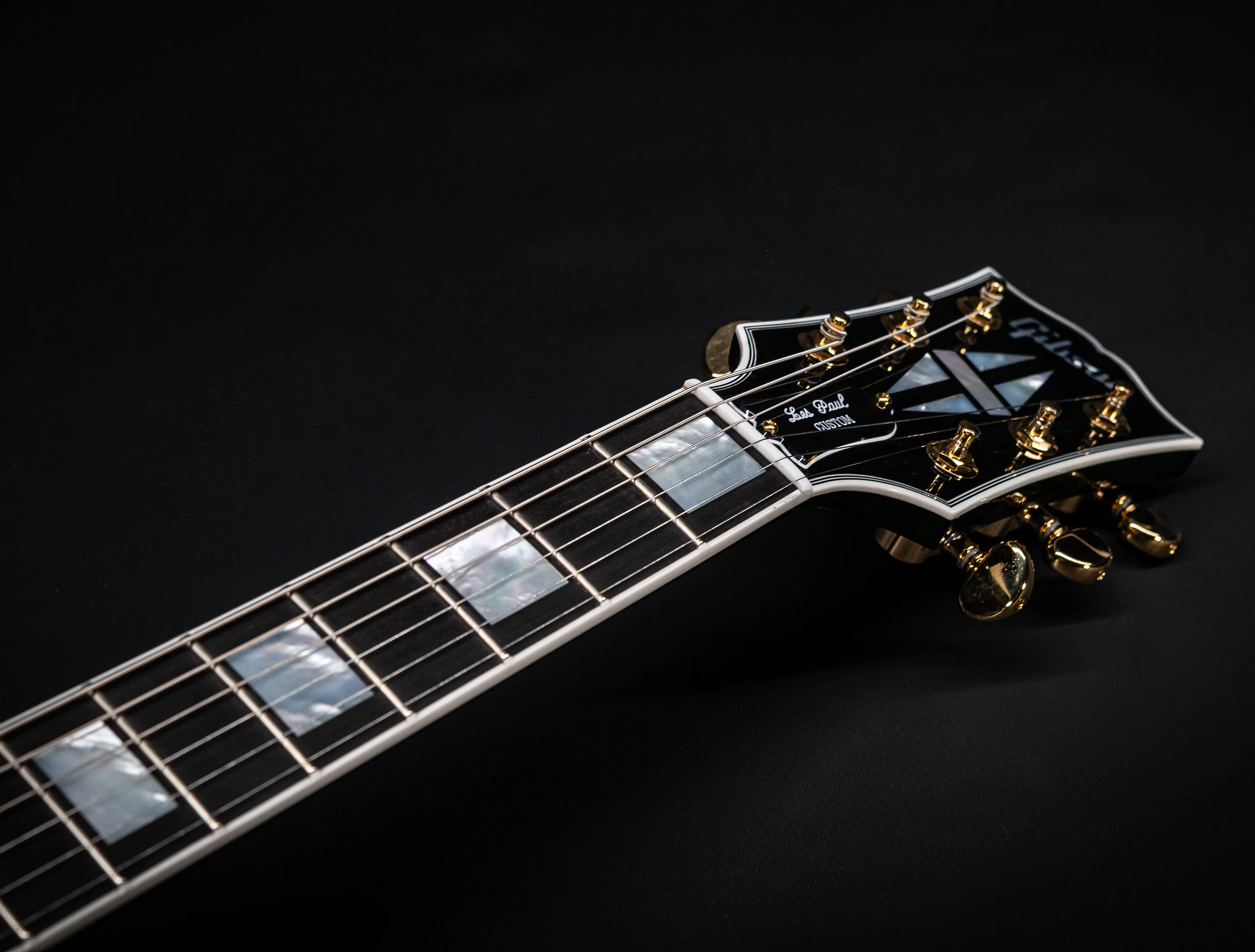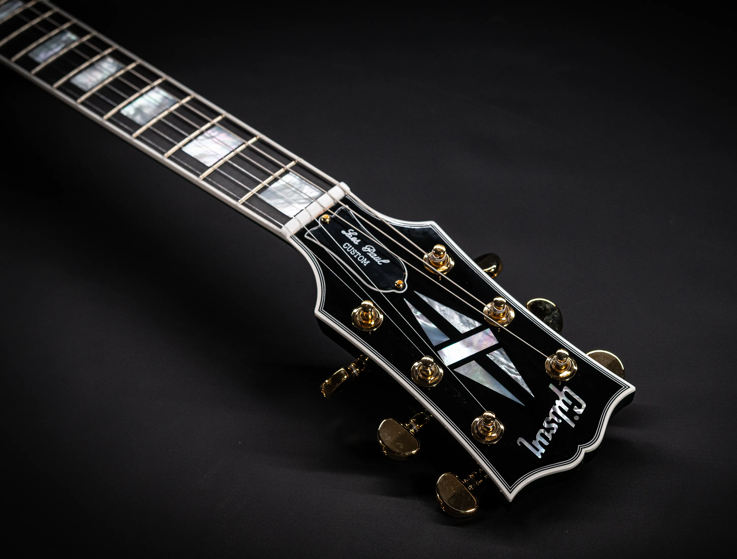 - Halsstababdeckung: schwarze/weisse Gibson Glocke mit "Les Paul Custom" Aufdruck