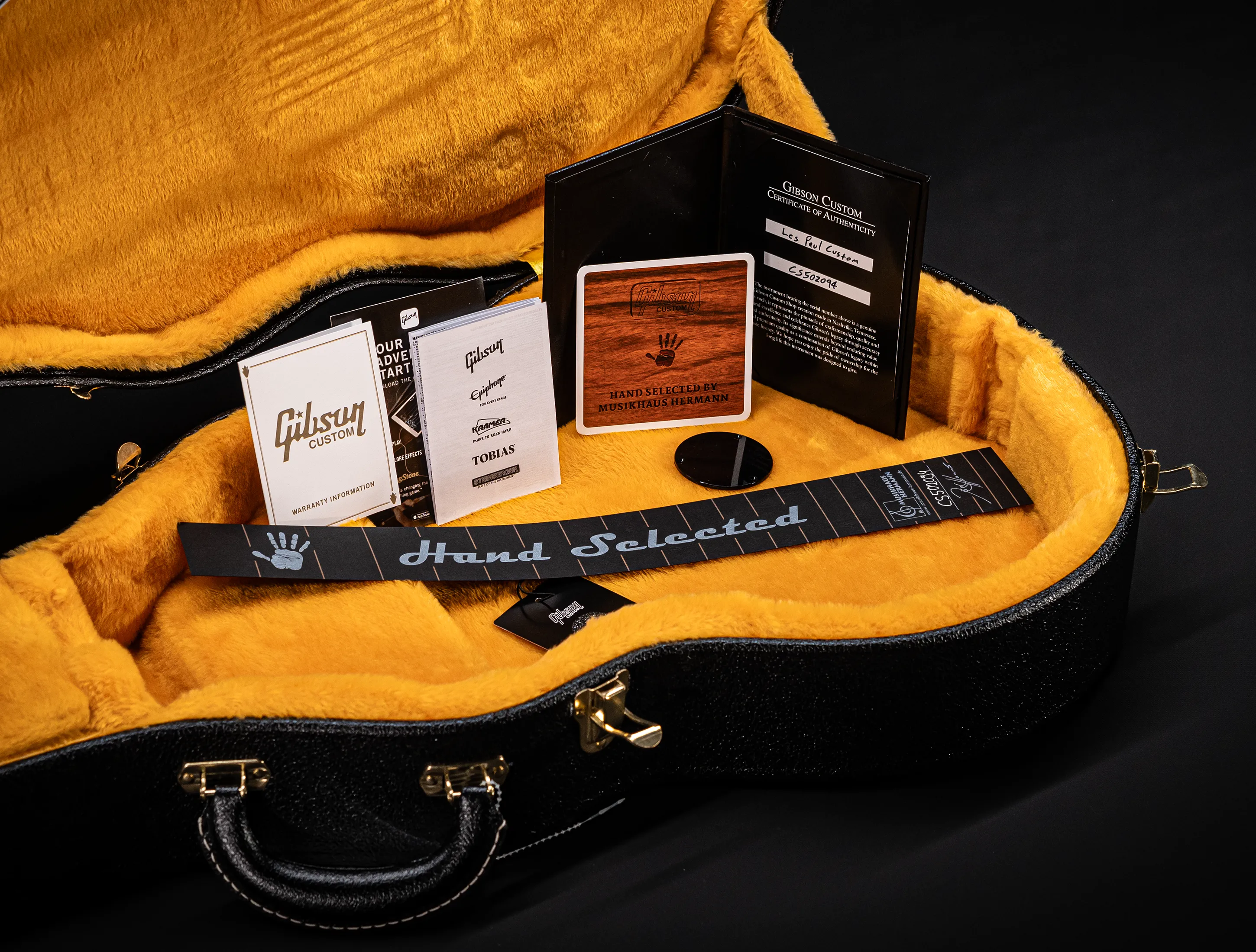 Die Les Paul Custom ist ein fester Bestandteil der Custom-Shop Linie und ist der Inbegriff der Elektrogitarre. Die klassische Les Paul Custom ist aus der Musikszene nicht wegzudenken und ein Workhourse von Gibson. Aber wir wären nicht Musikhaus Hermann, wenn wir nicht diesen Klassiker noch weiter veredeln lassen würden und dies haben wir mit einer ganz besonderen Edition gemacht: