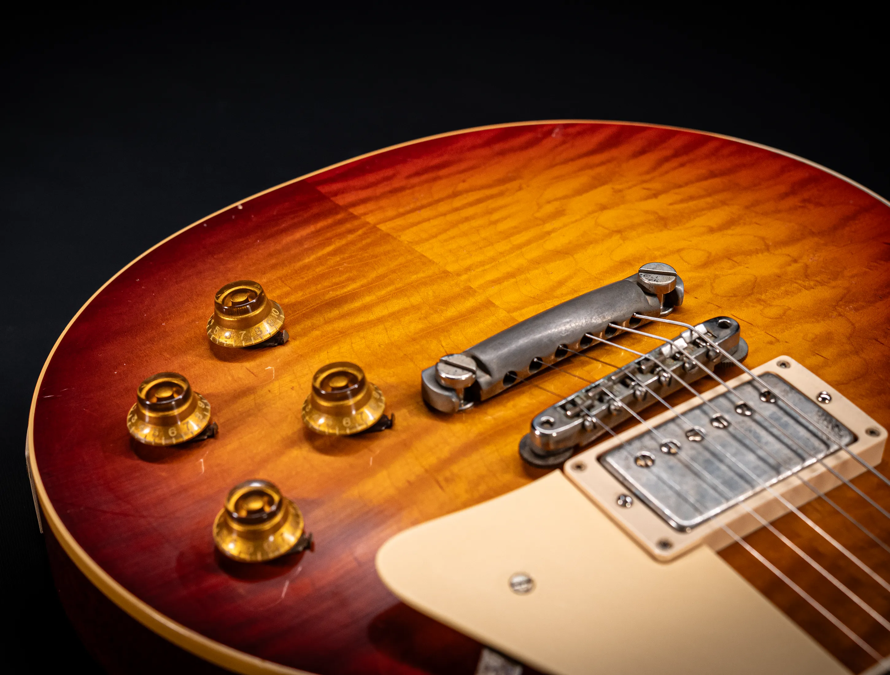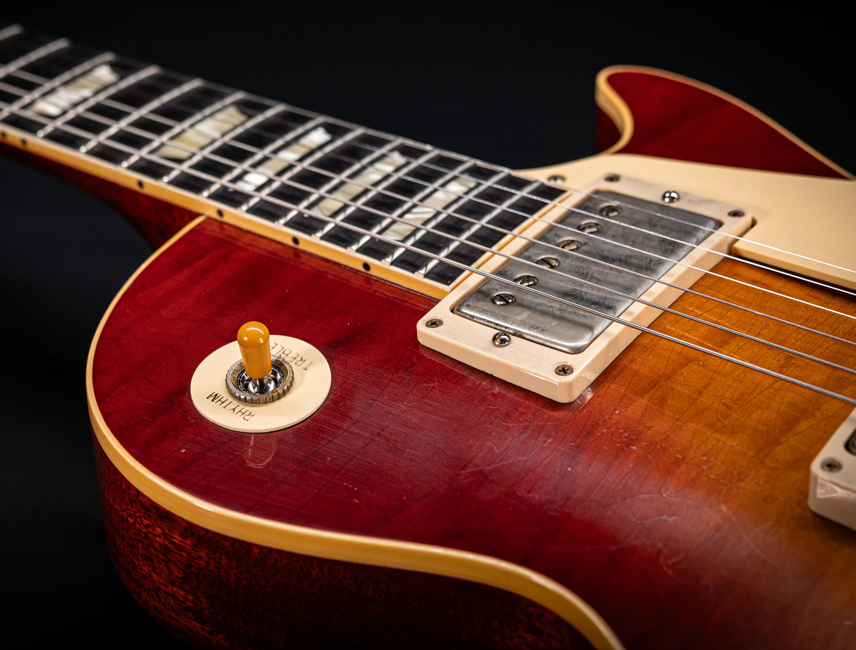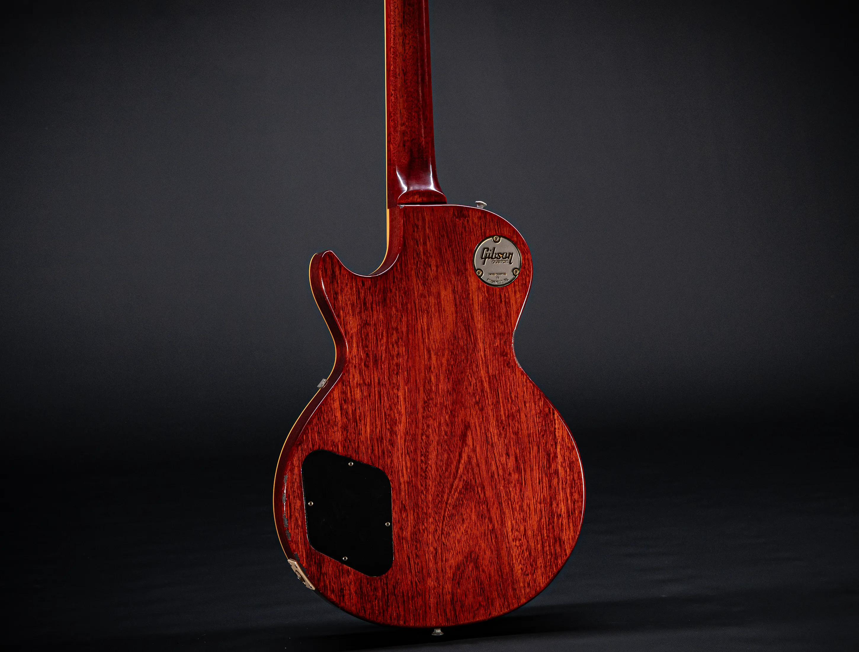 Die Sonderfarbe "Antique Slightly Faded Cherry Sunburst, die dazu passende, handselektierte R9 Premium Flame Decke sowie die passende Murphy LAB Light Aged Behandlung lassen diese Les Paul zu einem ganz besonderen Highlight werden.