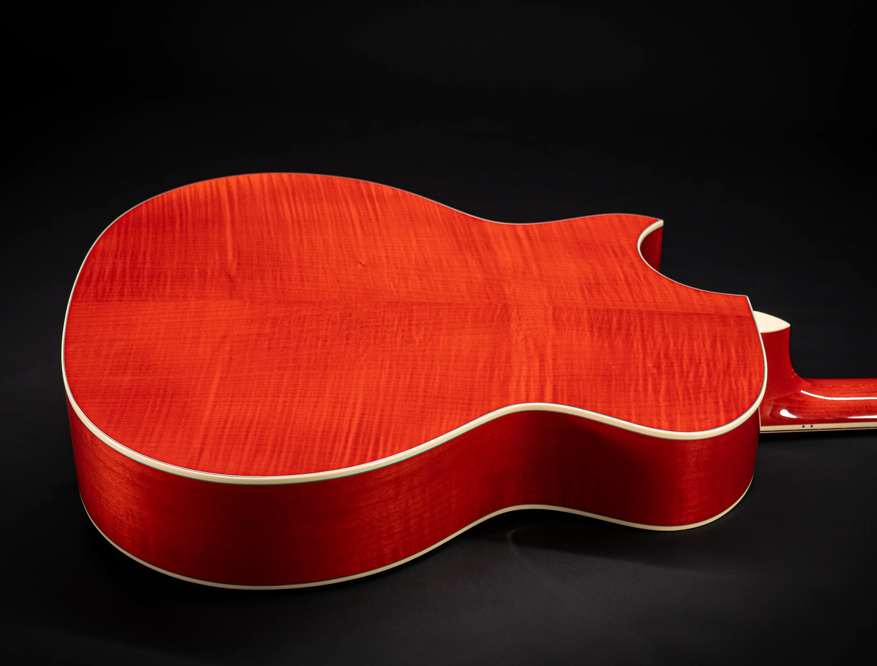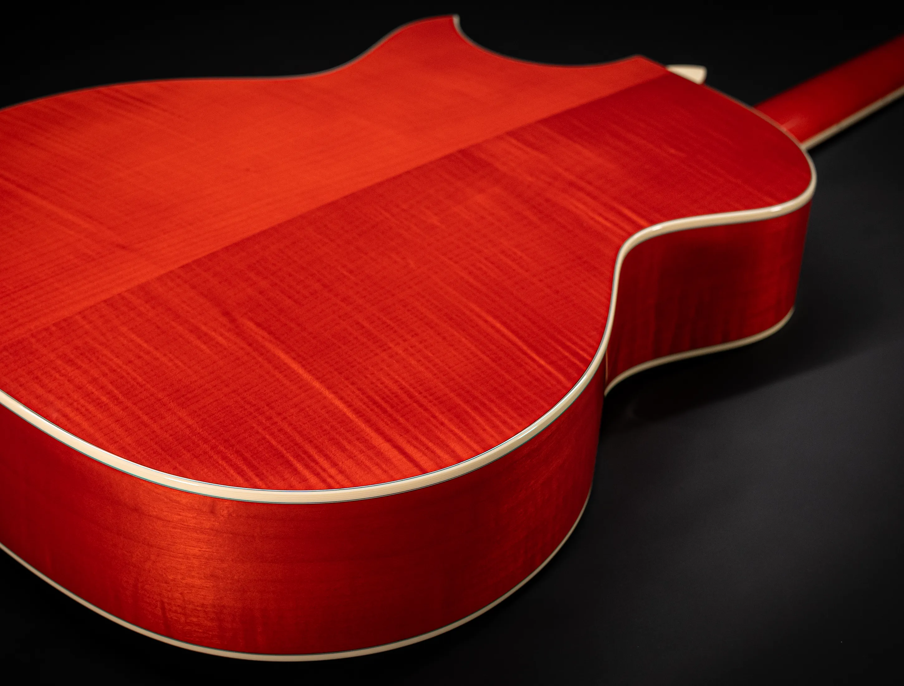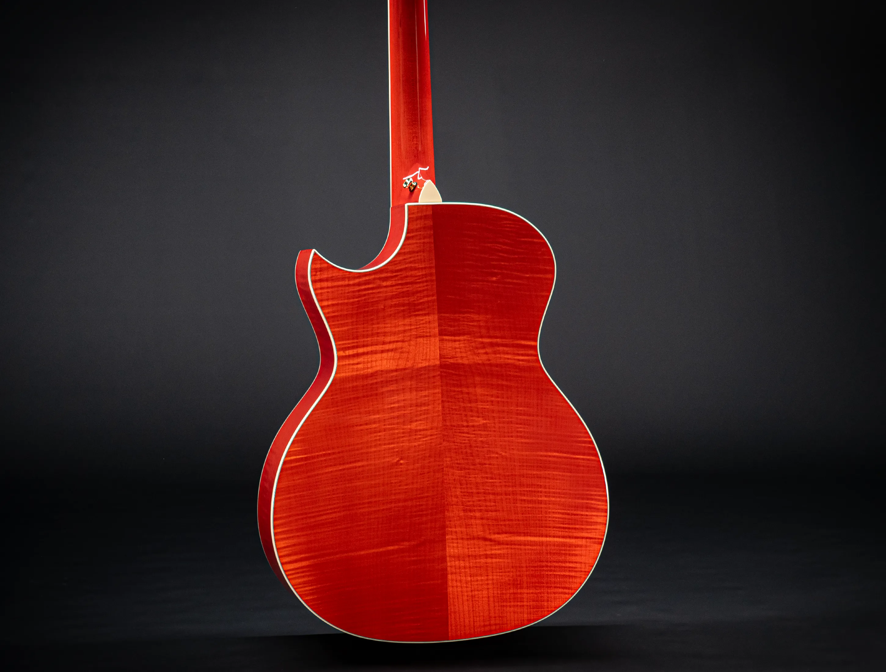 Der schlanke Grand Auditorium-Korpus (schmäler als eine herkömmliche Grand Auditorium) mit Florentin Cutaway und verkürzter Mensur, sorgt für hohen Spielkomfort und beste Erreichbarkeit aller Lagen. Hochwertige Tonhölzer wie gemaserter Ahorn und eine Sitka-Fichtendecke verleihen dem Instrument einen brillanten, ausgewogenen Klang, während der angenehm spielbare Hals selbst anspruchsvolle Fingerstyle-Techniken mühelos unterstützt.