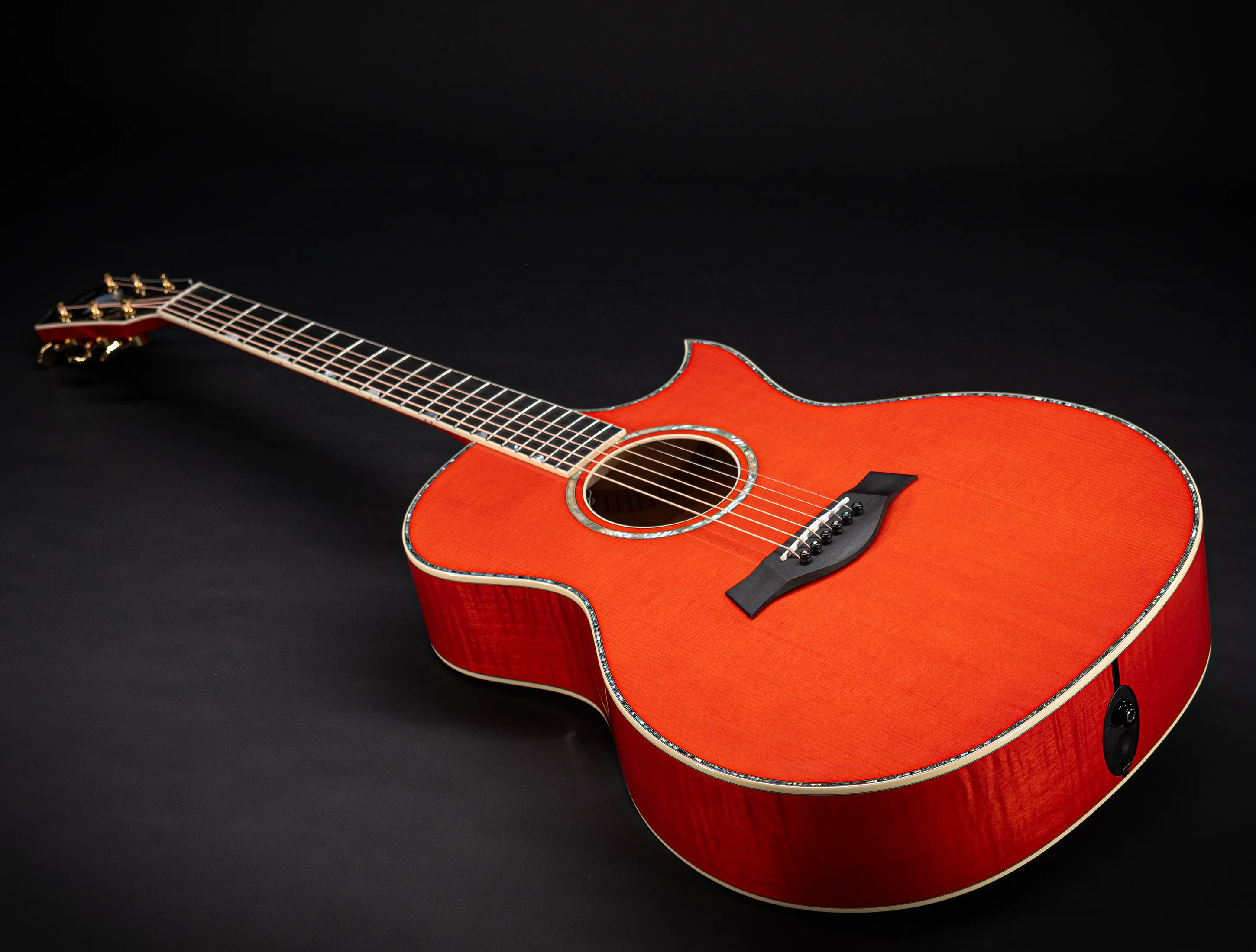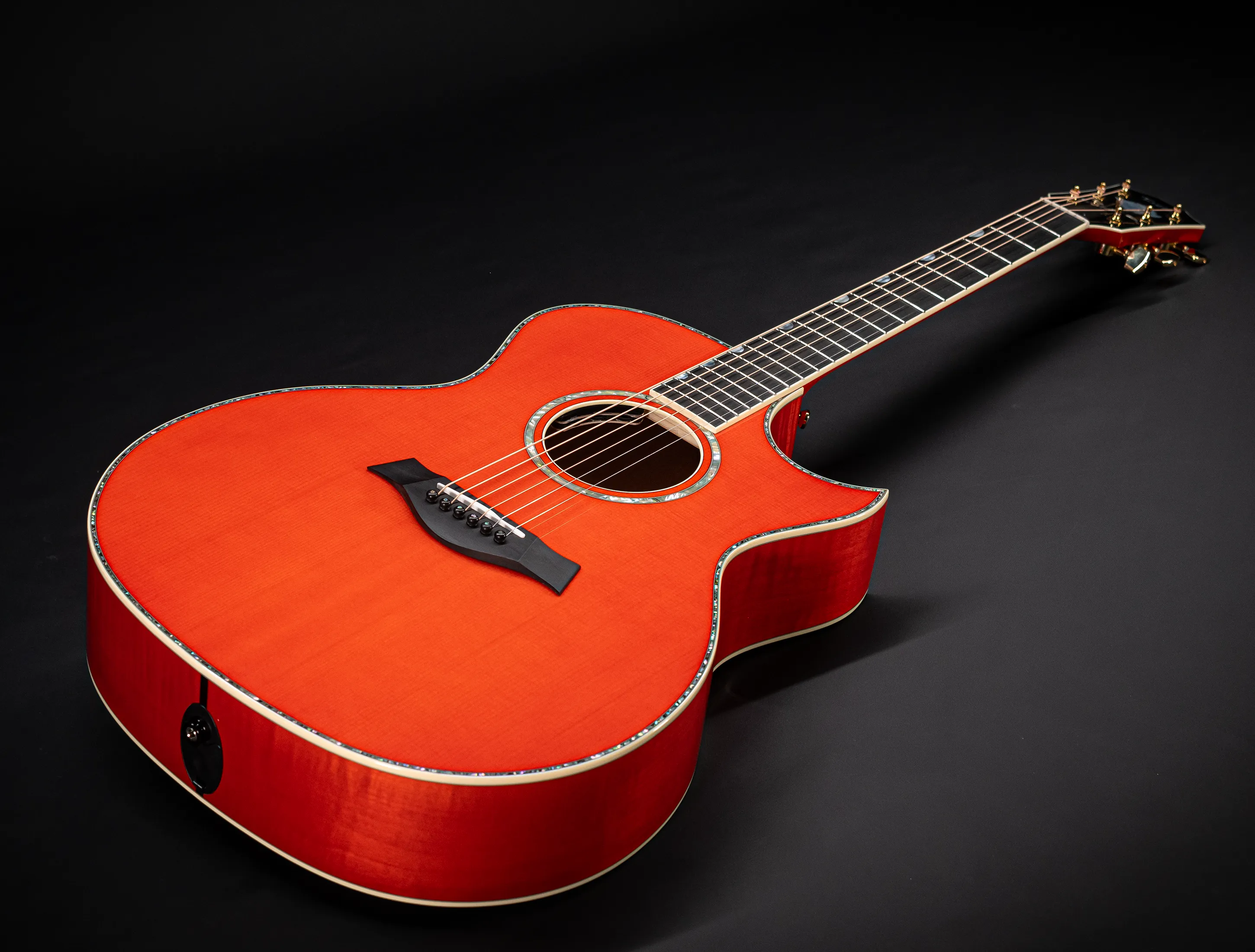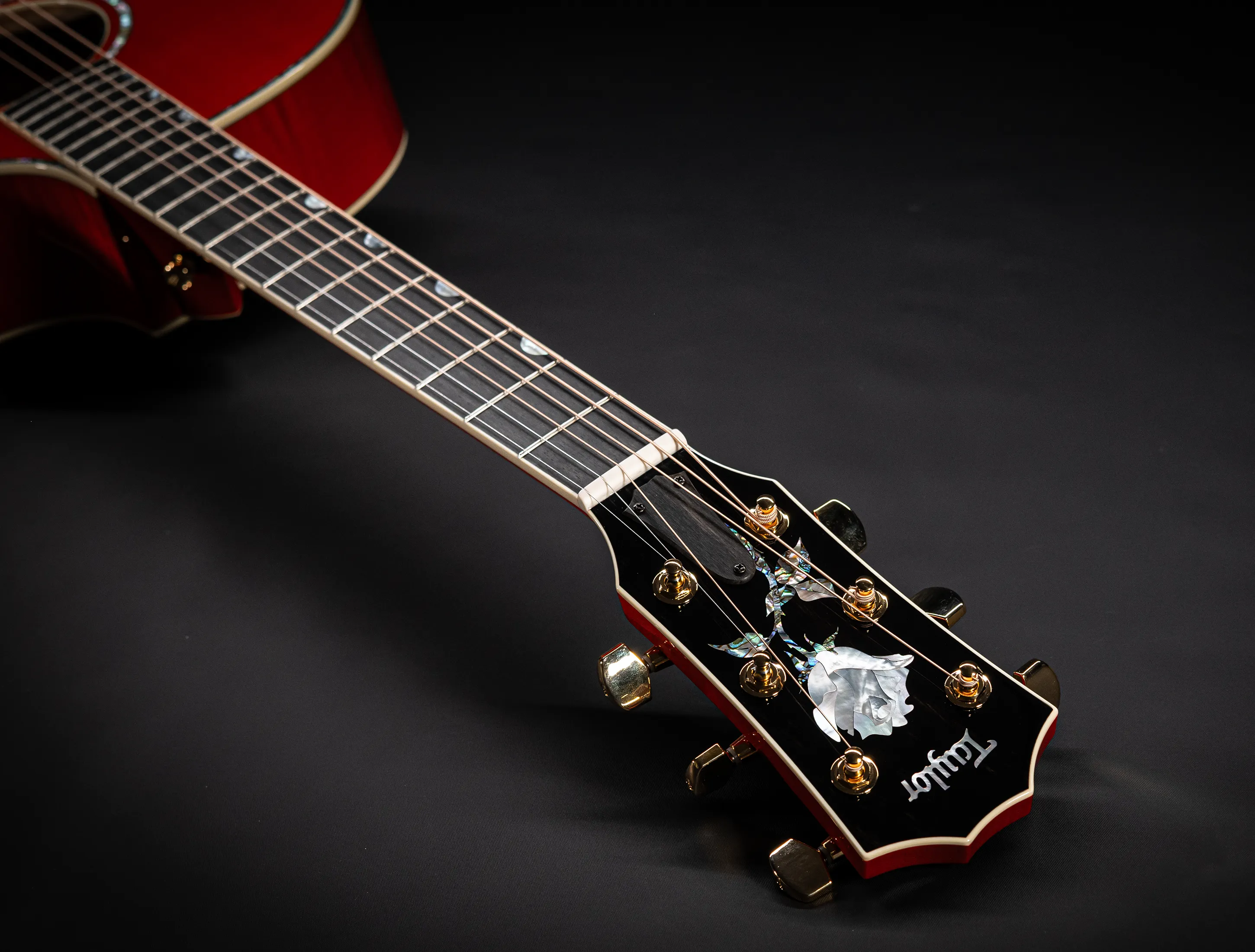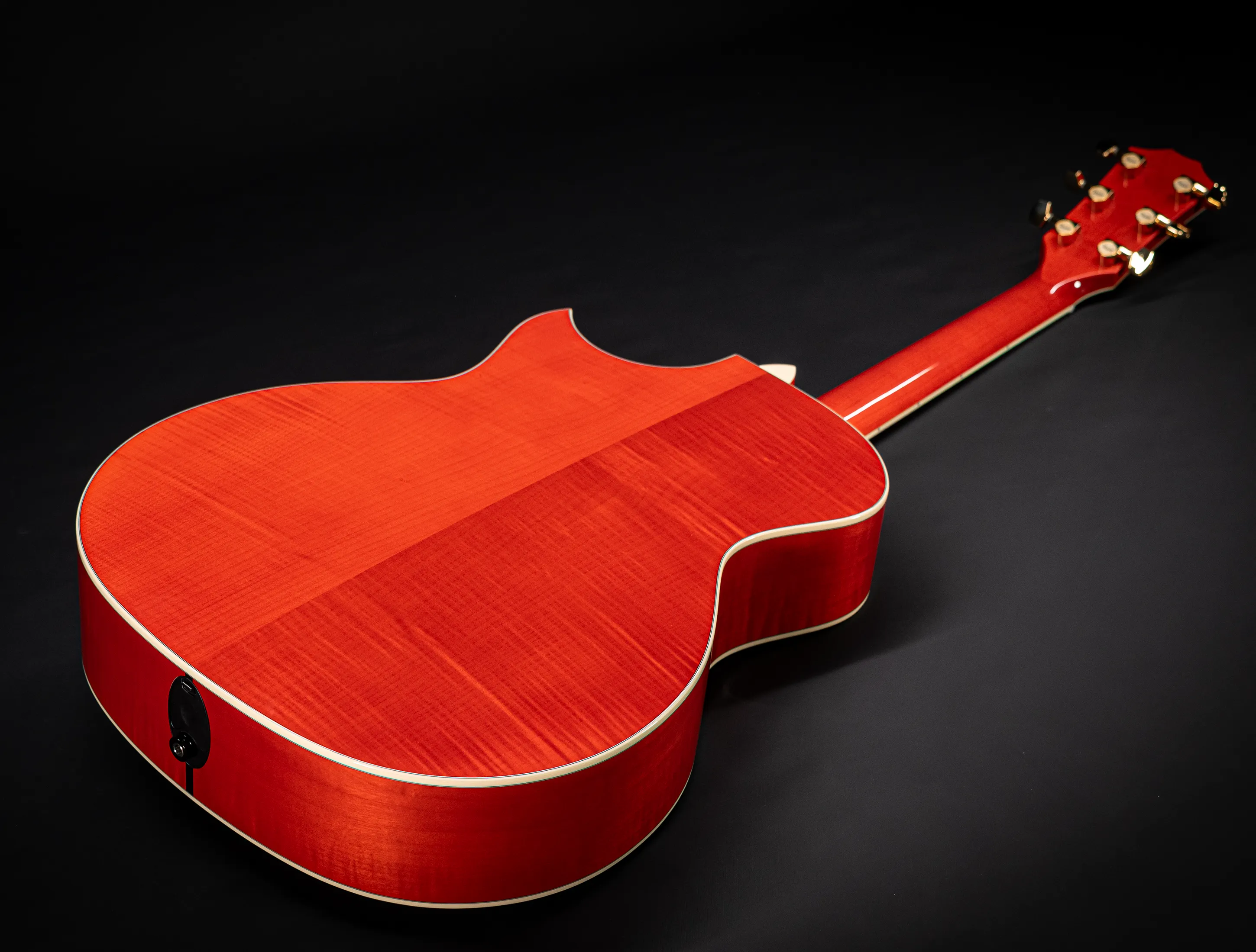 Der schlanke Grand Auditorium-Korpus (schmäler als eine herkömmliche Grand Auditorium) mit Florentin Cutaway und verkürzter Mensur, sorgt für hohen Spielkomfort und beste Erreichbarkeit aller Lagen. Hochwertige Tonhölzer wie gemaserter Ahorn und eine Sitka-Fichtendecke verleihen dem Instrument einen brillanten, ausgewogenen Klang, während der angenehm spielbare Hals selbst anspruchsvolle Fingerstyle-Techniken mühelos unterstützt.