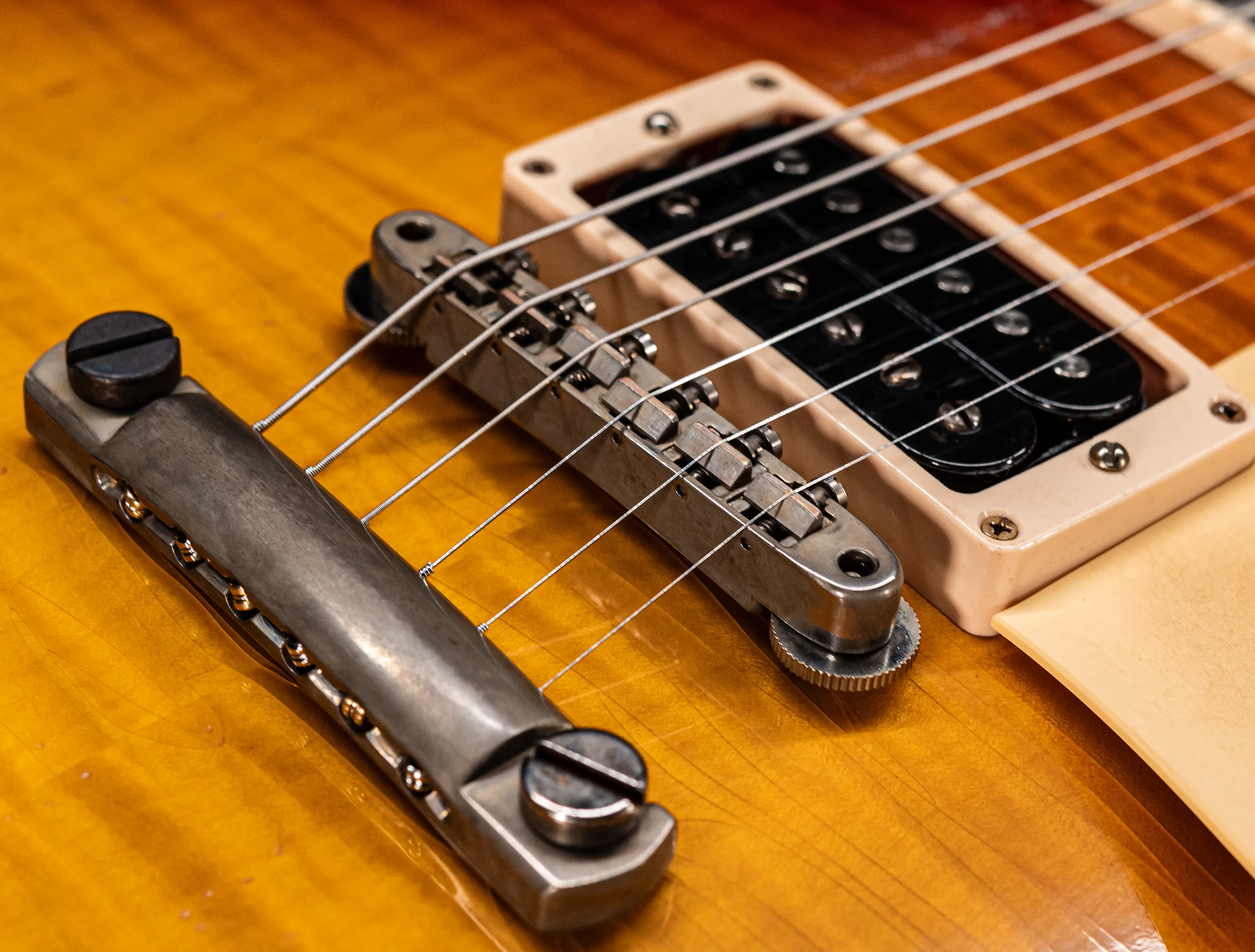 Bereits ohne Verstärker angespielt spürt man sofort den trockenen, holzigen Charakter einer sehr guten, lange gespielten Vintage-Gitarre. Schnelle Ansprache, großartige Resonanz, fantastisches Sustain - knurrige Bässe, drahtige Mitten, strahlende Höhen. Am Verstärker zeigt sich das wahre Potenzial der Gitarre – die Pickups sind alten PAFs nachempfunden und bilden die Komplexität der Originale perfekt ab! Sehr transparent, klar und leicht nasal bei reduziertem Output. Der Custombucker am Steg, klingt ohne Kappe noch etwas offener, klarer und durchsichtiger.