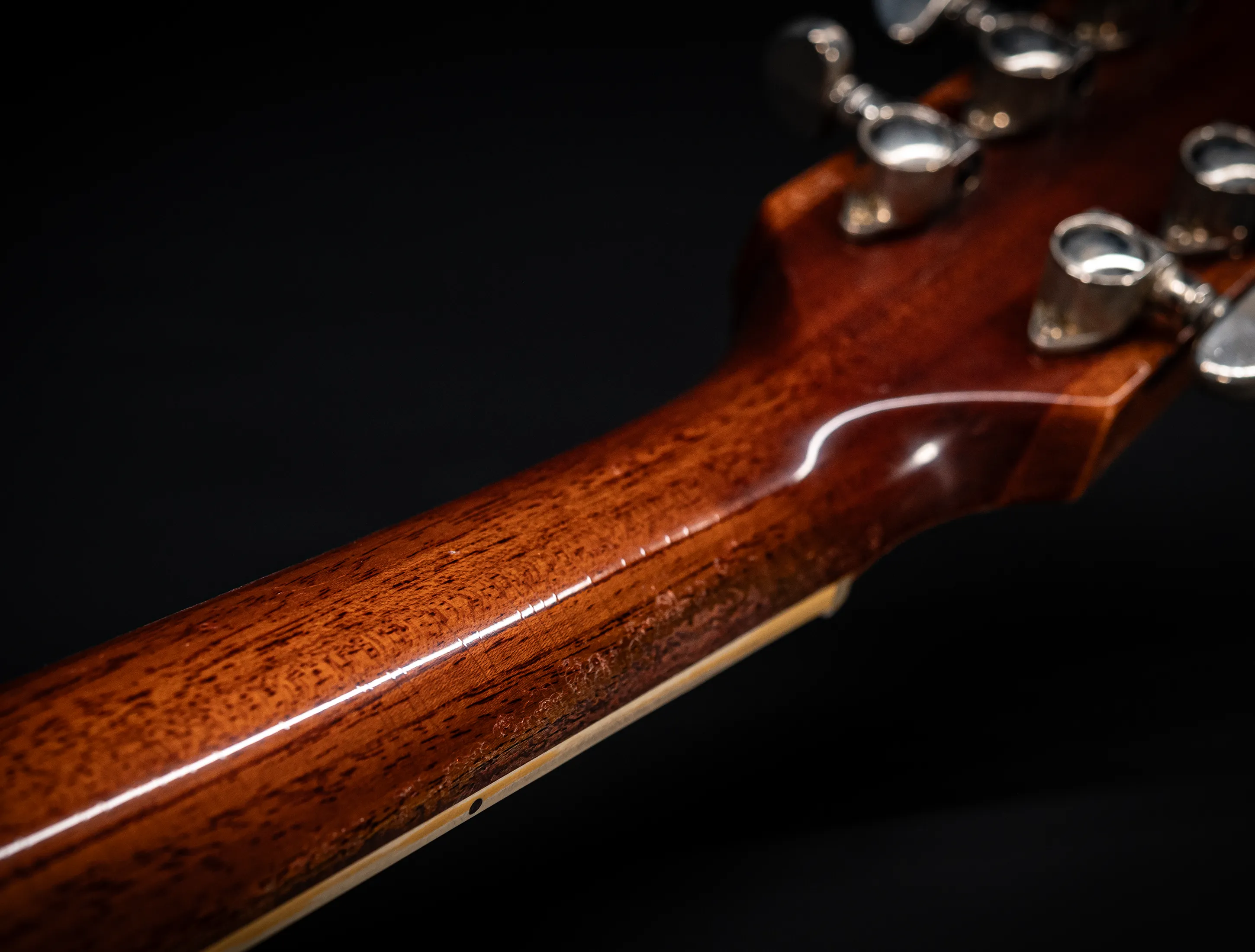 - Korpus: handselektierter, ultra-leichter, massiver Mahagoni (personal Selektion im USA Werk auf Gewicht und Schwingung)