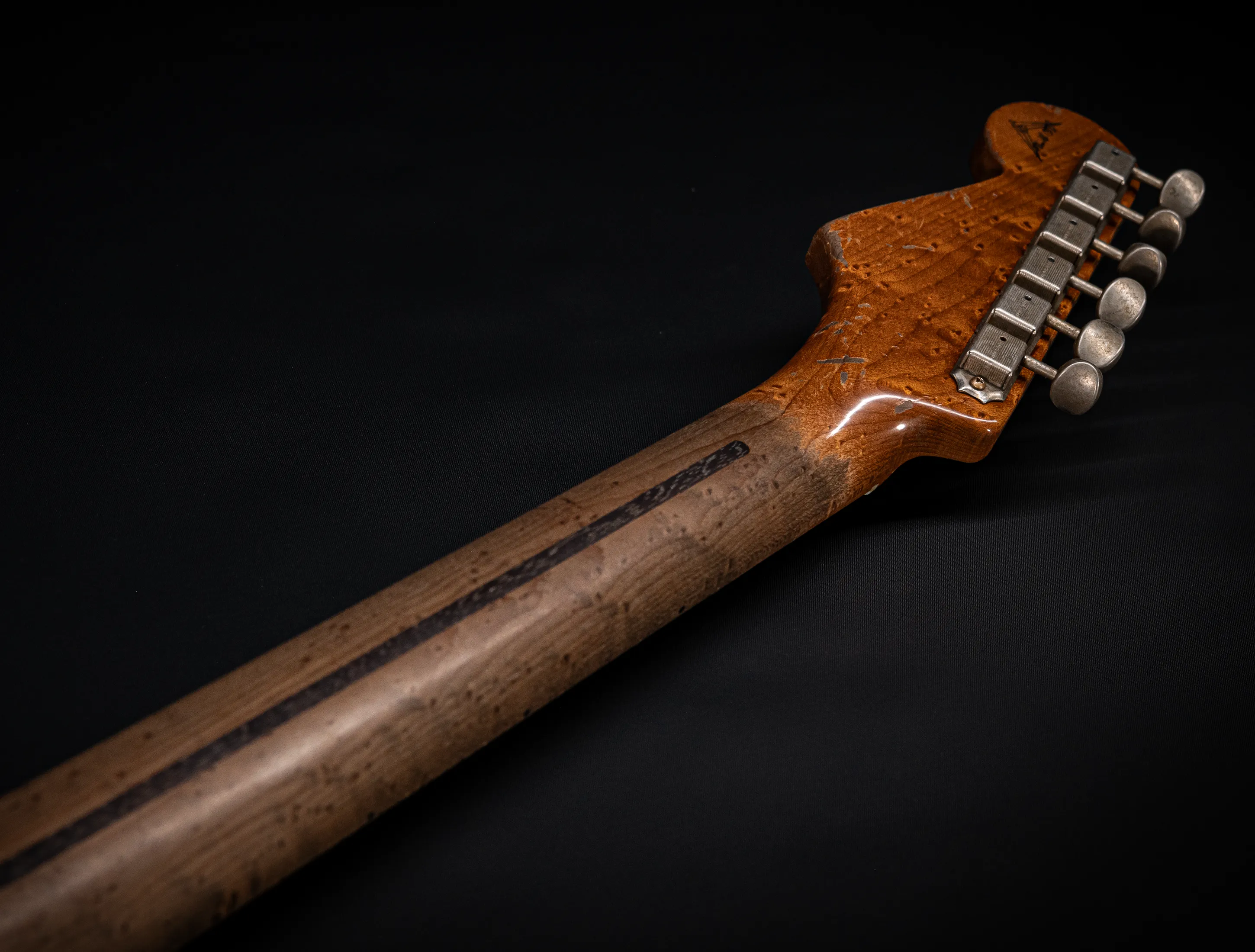 Ein von Austin MacNutt selektierter, 1tlg. leichter premium Roasted ASH Body aus einem Stück für beste Resonanz, ein 12" Radius sowie ein edler AAA roasted Birdseye Ahornhals ebenso aus einem Stück. Drei von Josefina persönlich handgewickelten FAT 50`S Singlecoils sind mit den wichtigsten Features. Aber achten Sie auch auf das von Austin verwendete Roasted Esche Holz aus einem Stück für den Korpus, ist das nicht alleine bereits eine Ansage!