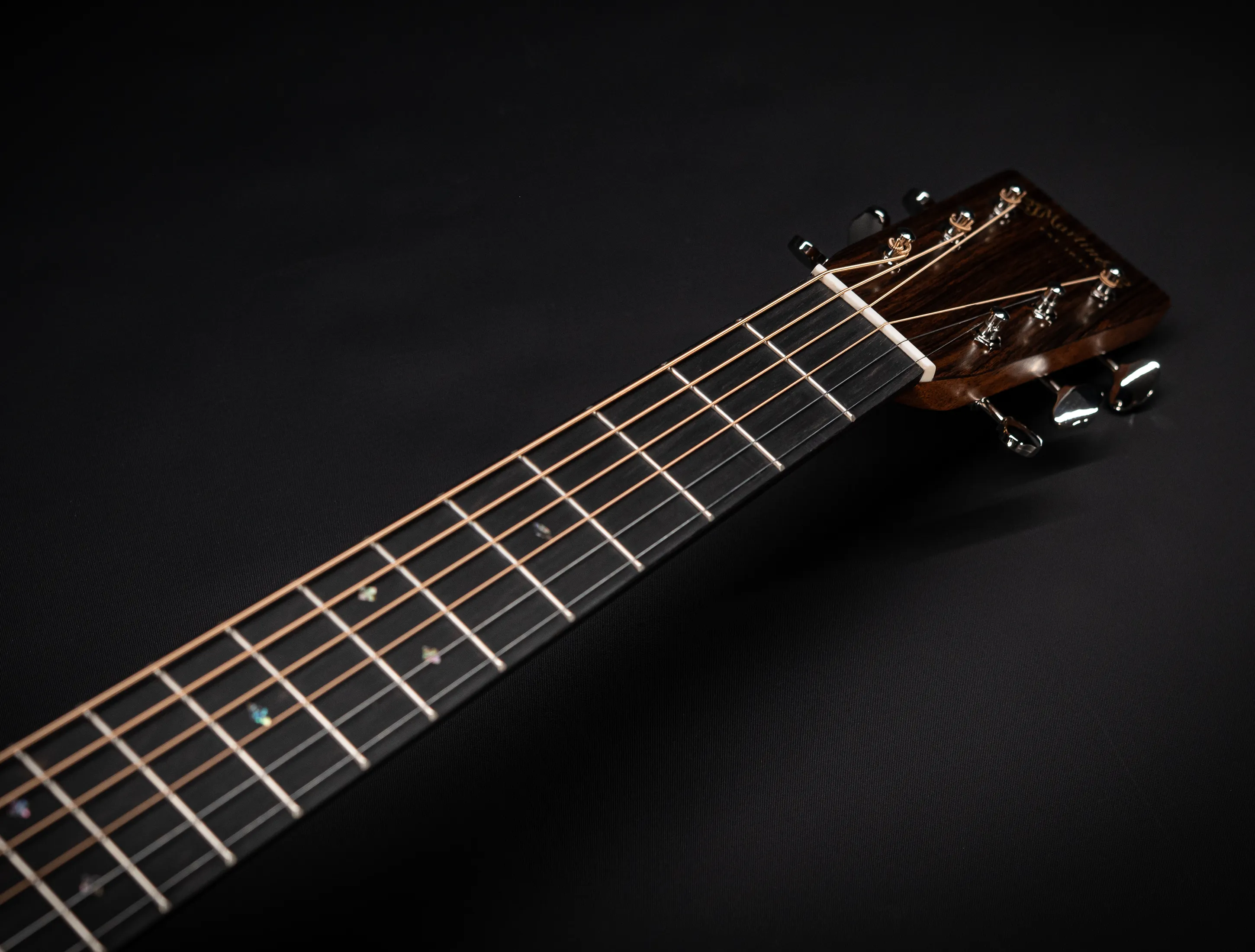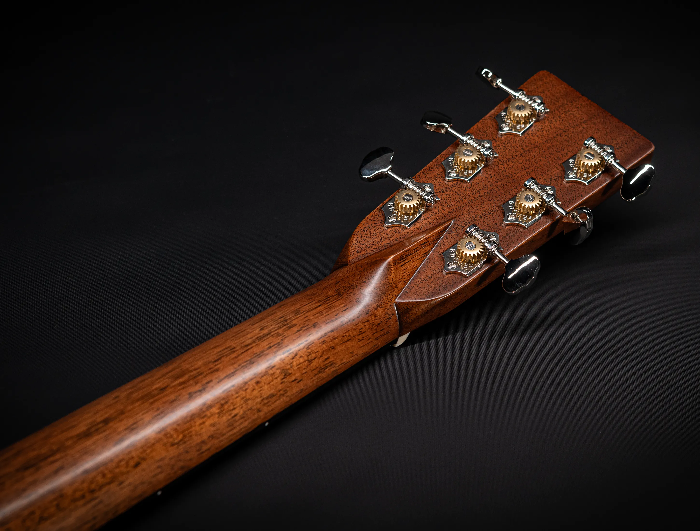 Das modifizierte niedrige ovale GE-Halsprofil (Modified Low -Oval) - welches sich zum beliebtesten Halsprofil bei Martin entwickelt hat - behält die Form bei, ist aber für den Vintage-Look optimiert, ohne die Gesamtmasse zu erhöhen. Hinzu kommen Verbesserungen der Bespielbarkeit wie ein dünneres Ebenholz-Griffbrett mit einer sanft abgeschrägten Komfortkante und ein verfeinerter Saitenabstand (Spacing) am Sattel, während die neue GE Modernbelly-Brücke glattere, komfortablere Ecken aufweist.
