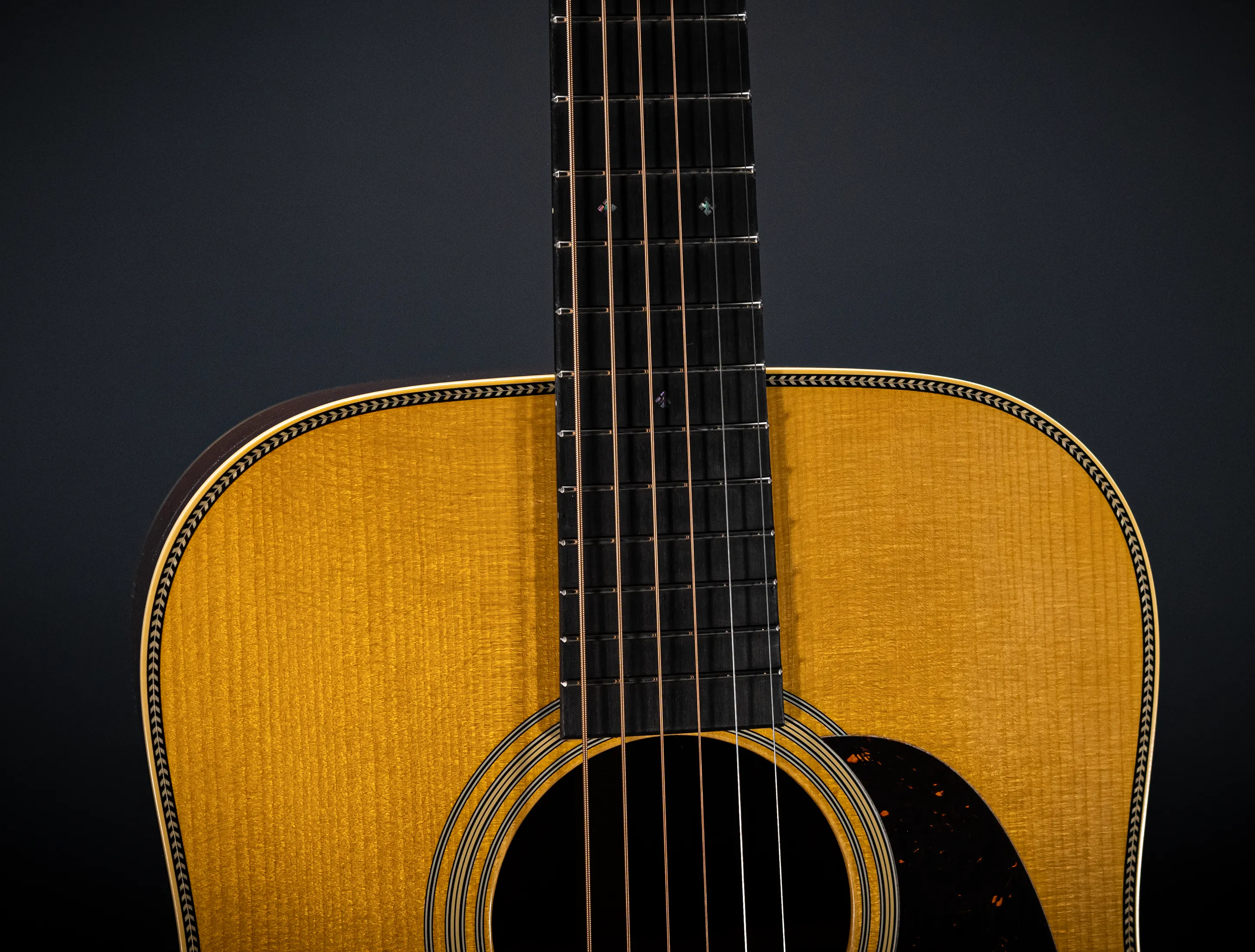 Wir dürfen ihnen stolzt die Custom Shop D-28 1937 Vintage Low Gloss Akustikgitarre in der Stage 1 Aging Version präsentieren.