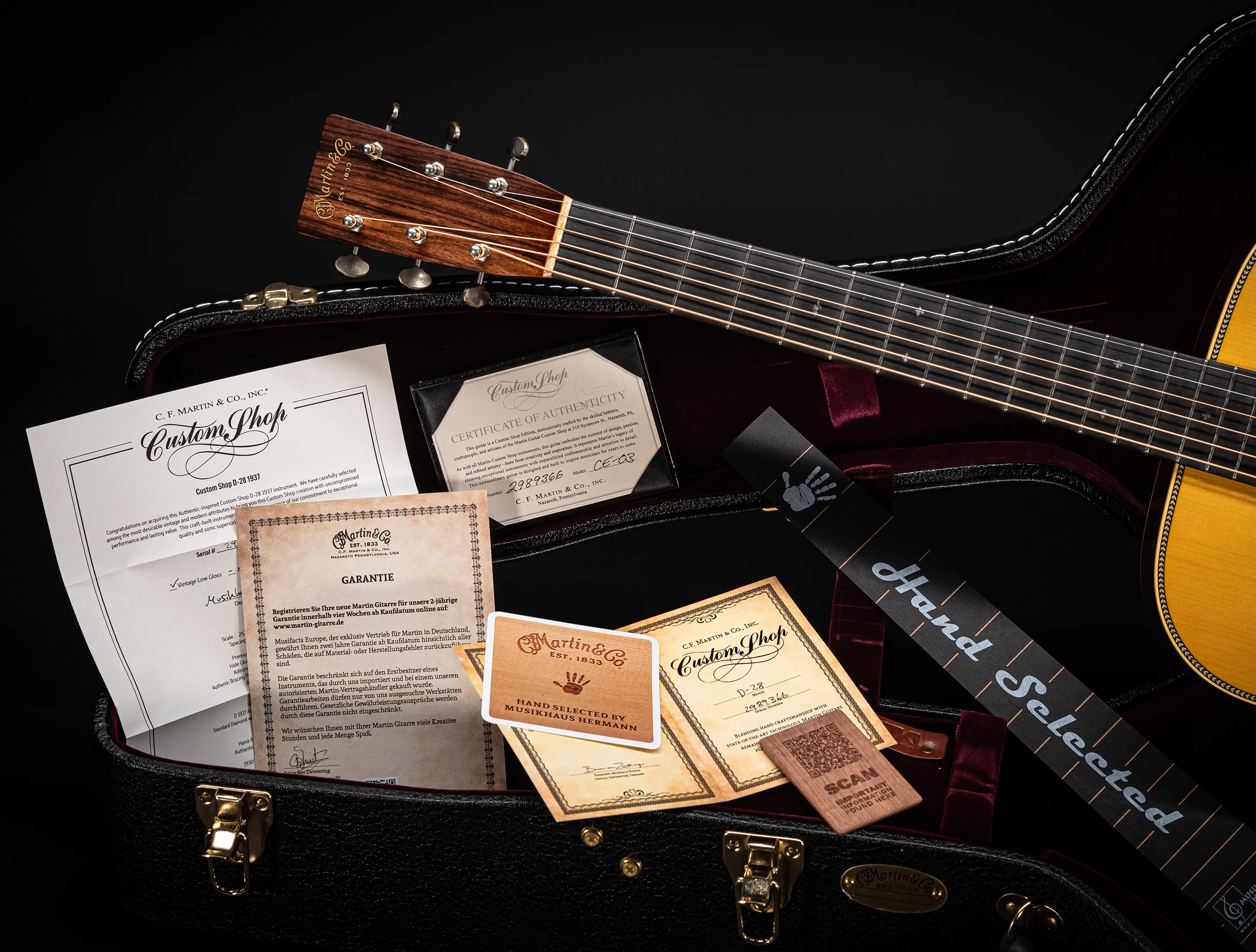 Sie sehen also nur an den wichtigsten Eckpunkten, die Custom Shop D-28 1937 in Vintage Low Gloss und der Stage 1 Aging Behandlung ist die D-28 aus dem Jahre 1937 mit genau diesem Herz und dieser Seele (sowie der Optik) welche so bewundert wird. Und selbstverständlich gehört ein ordentlicher Koffer zum Standardlieferumfang des Instrumentes, welches es gut schützt - vor allem auch vor klimatischen Einflüssen!