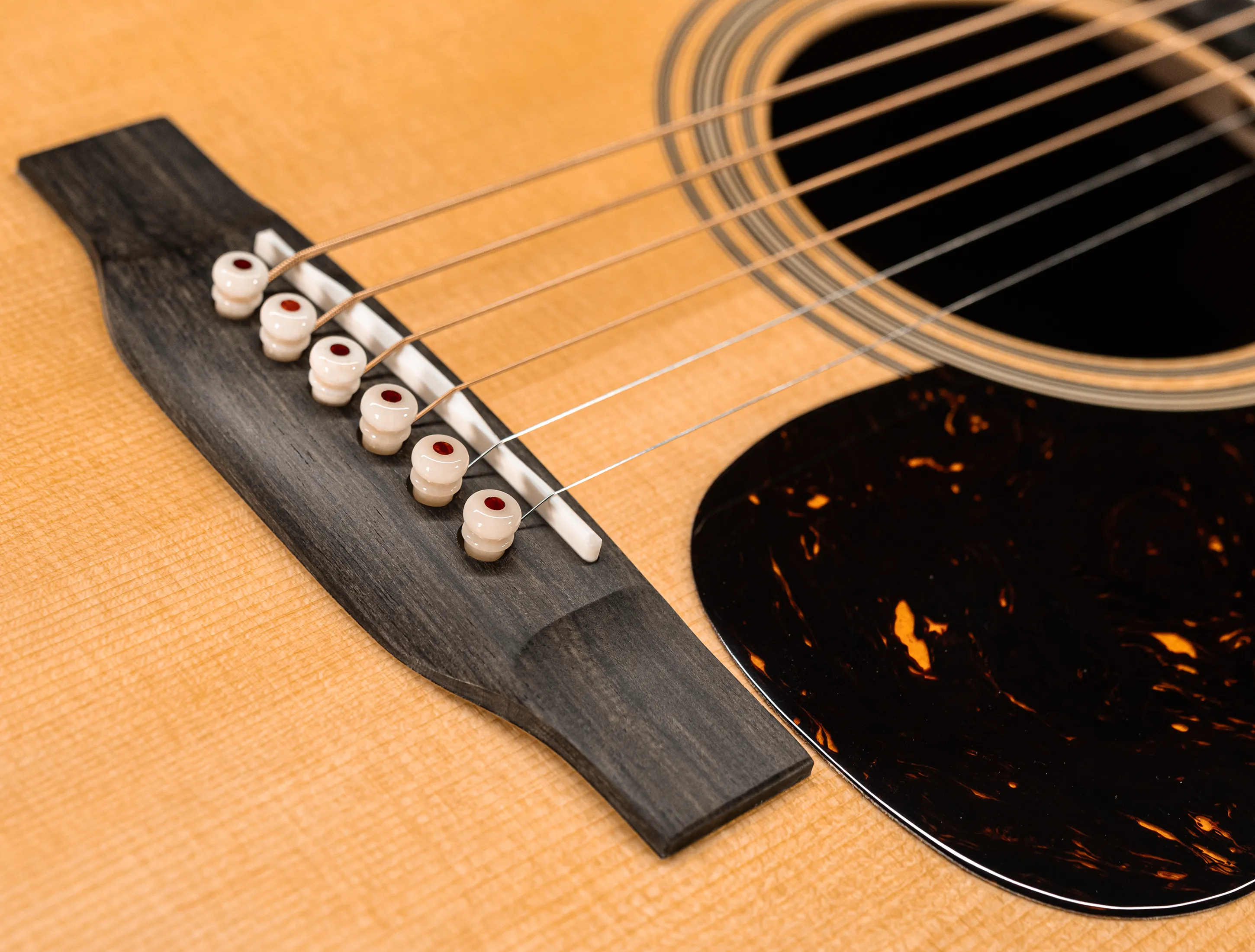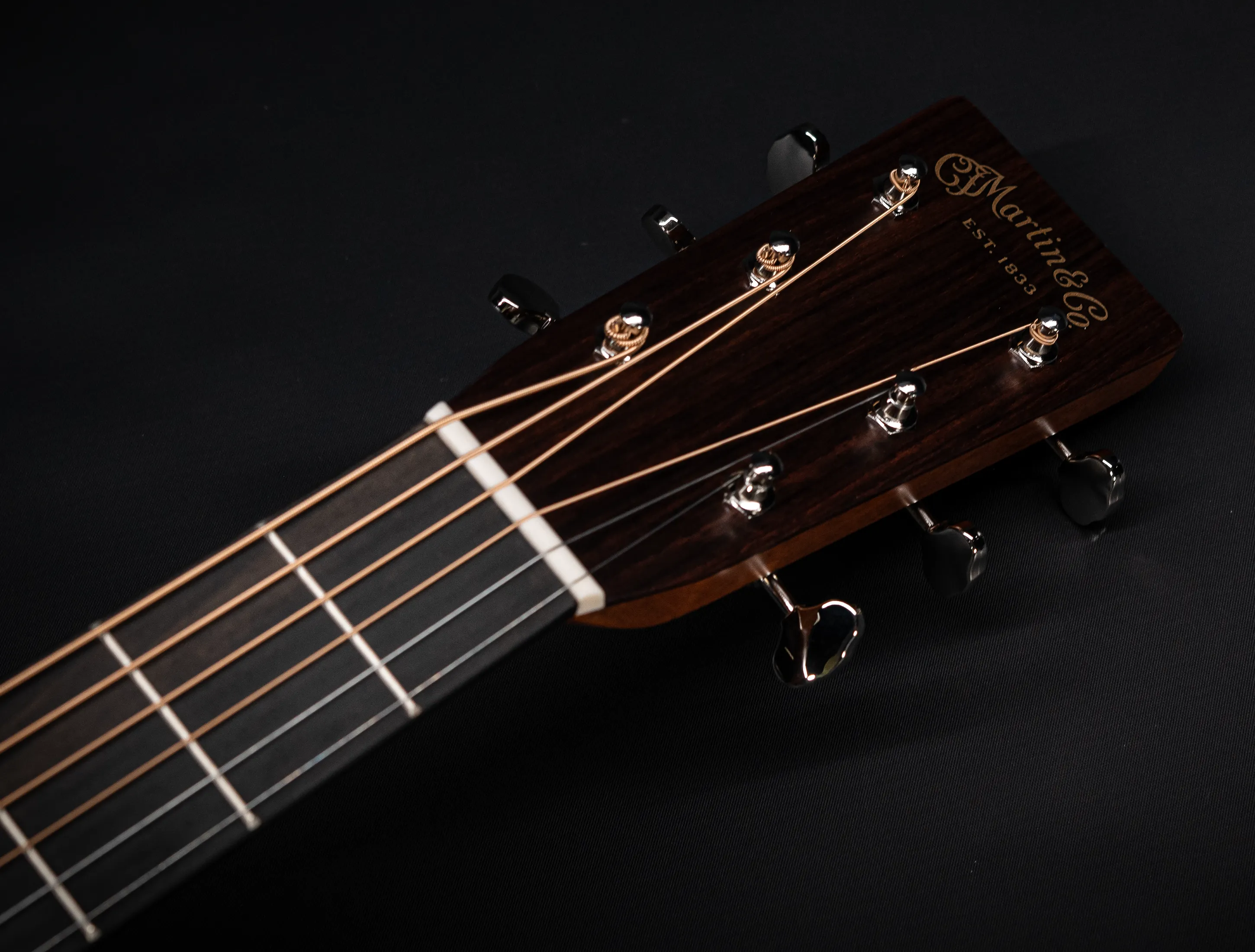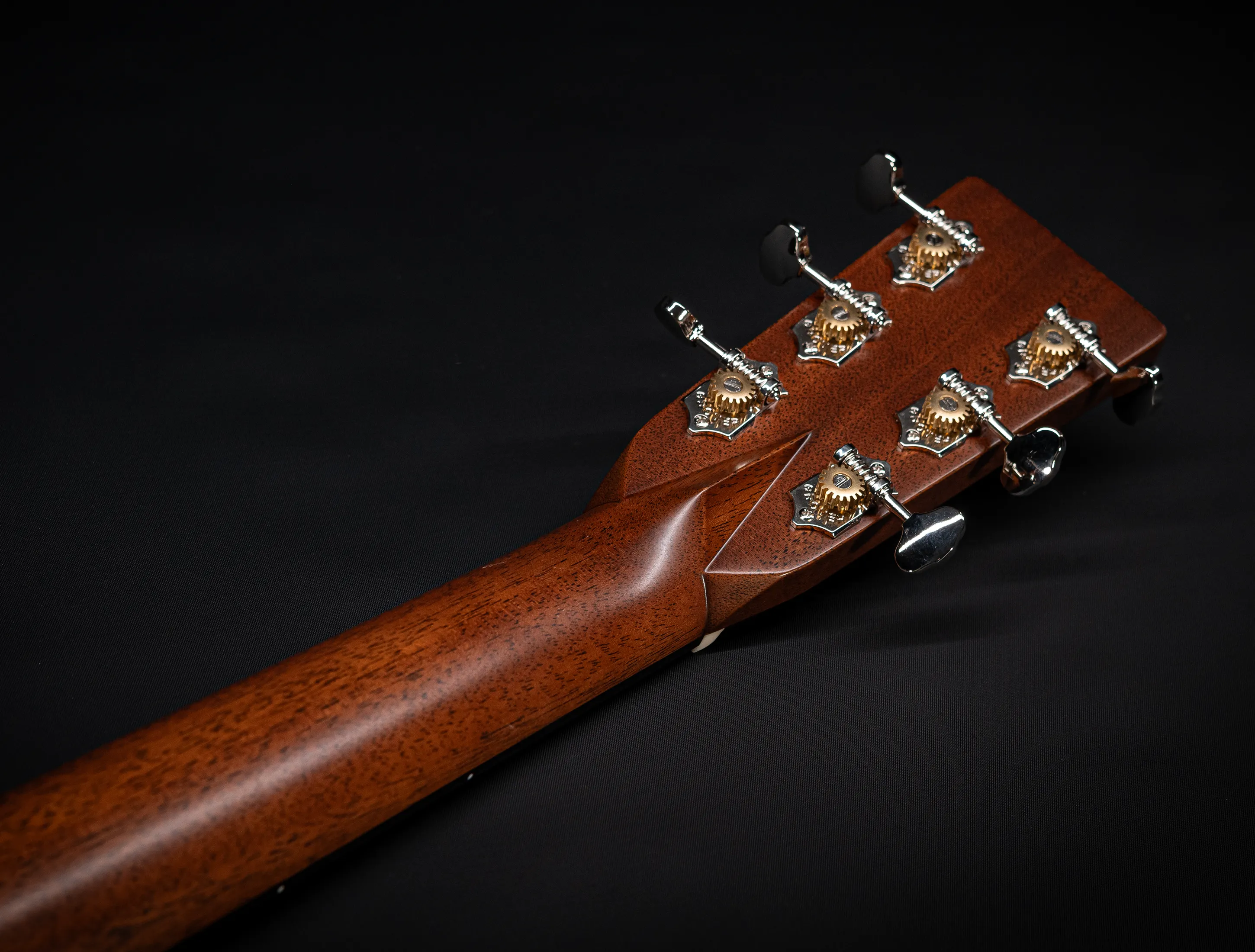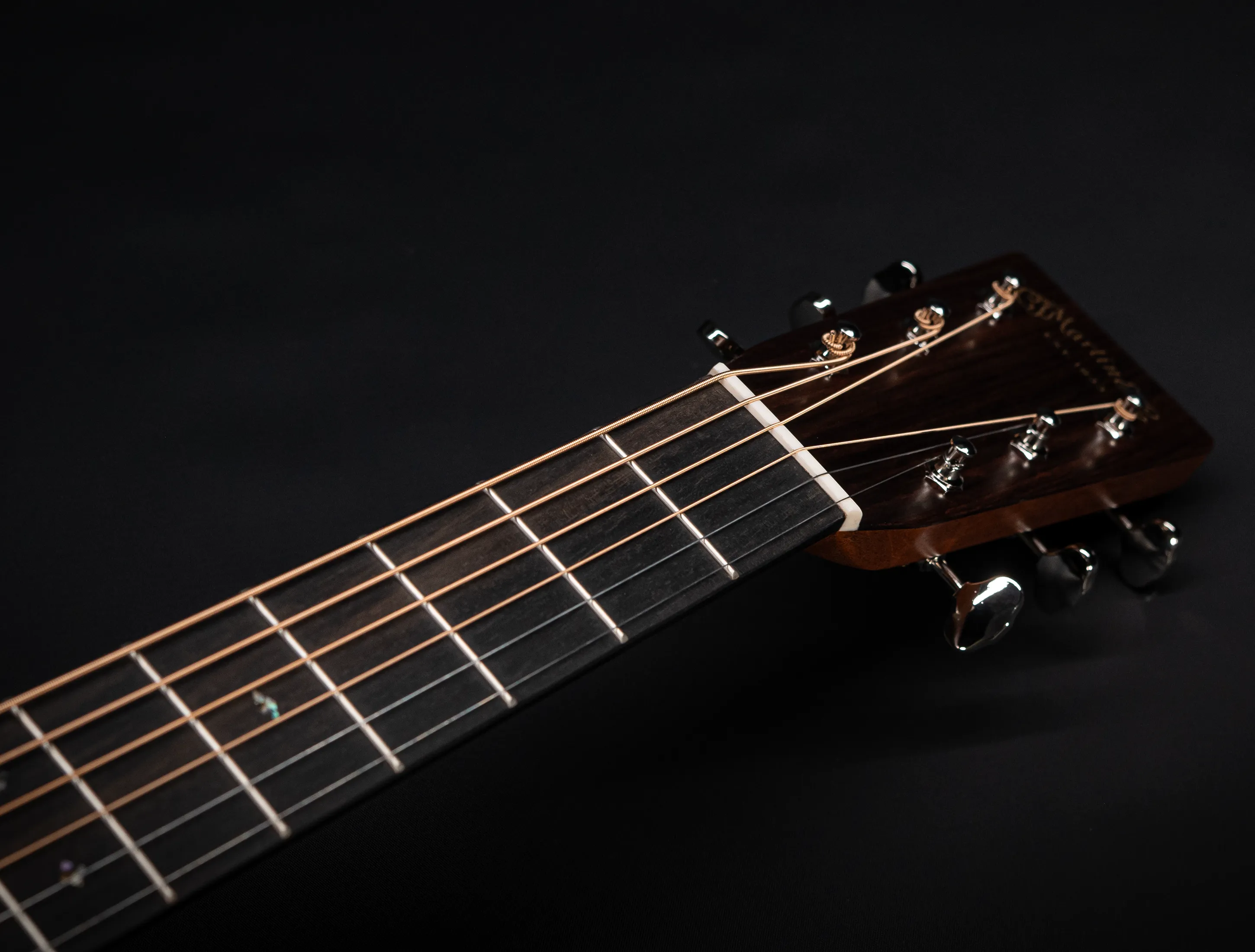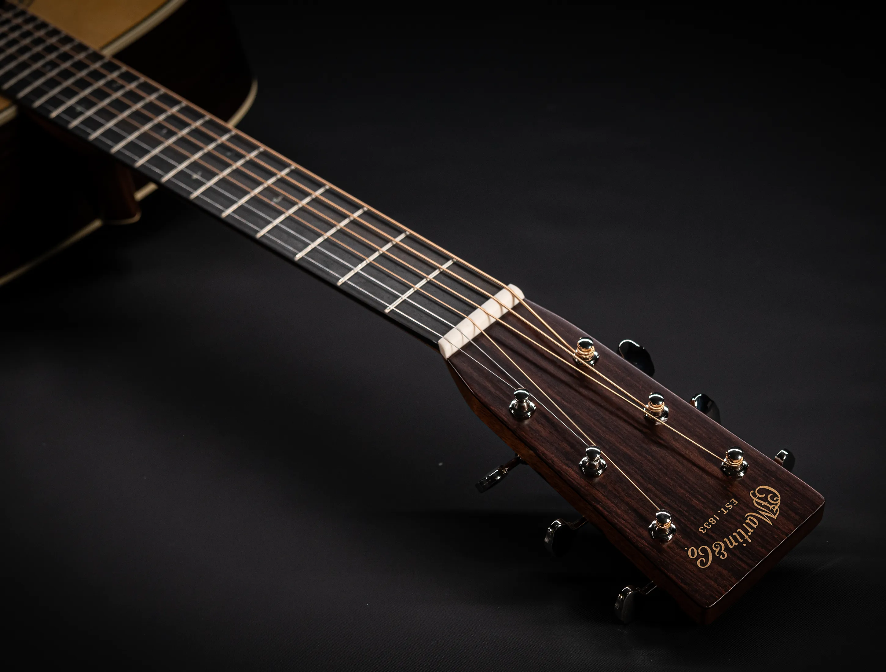 Das modifizierte niedrige ovale GE-Halsprofil (Modified Low -Oval) - welches sich zum beliebtesten Halsprofil bei Martin entwickelt hat - behält die Form bei, ist aber für den Vintage-Look optimiert, ohne die Gesamtmasse zu erhöhen. Hinzu kommen Verbesserungen der Bespielbarkeit wie ein dünneres Ebenholz-Griffbrett mit einer sanft abgeschrägten Komfortkante und ein verfeinerter Saitenabstand (Spacing) am Sattel, während die neue GE Modernbelly-Brücke glattere, komfortablere Ecken aufweist.